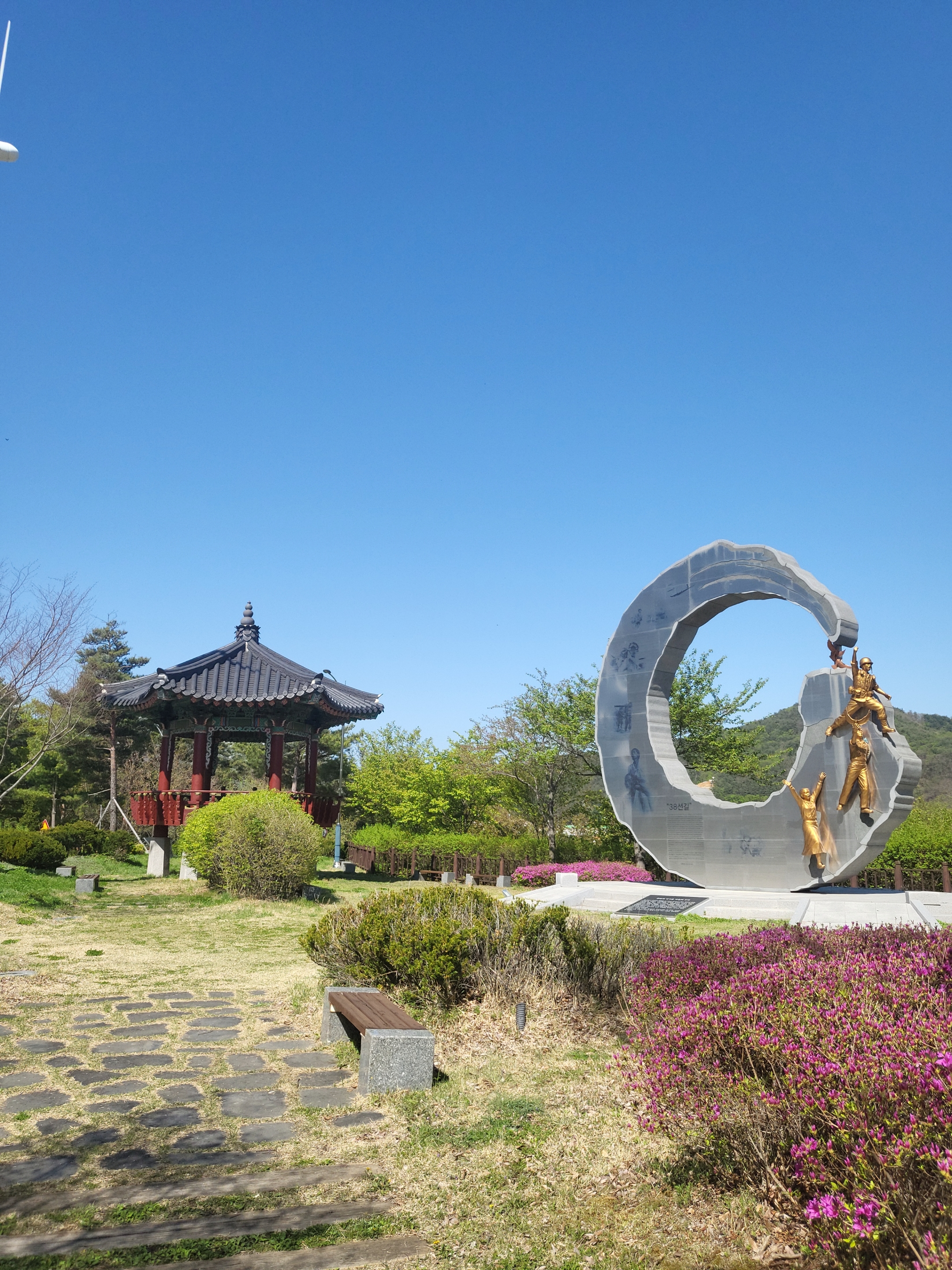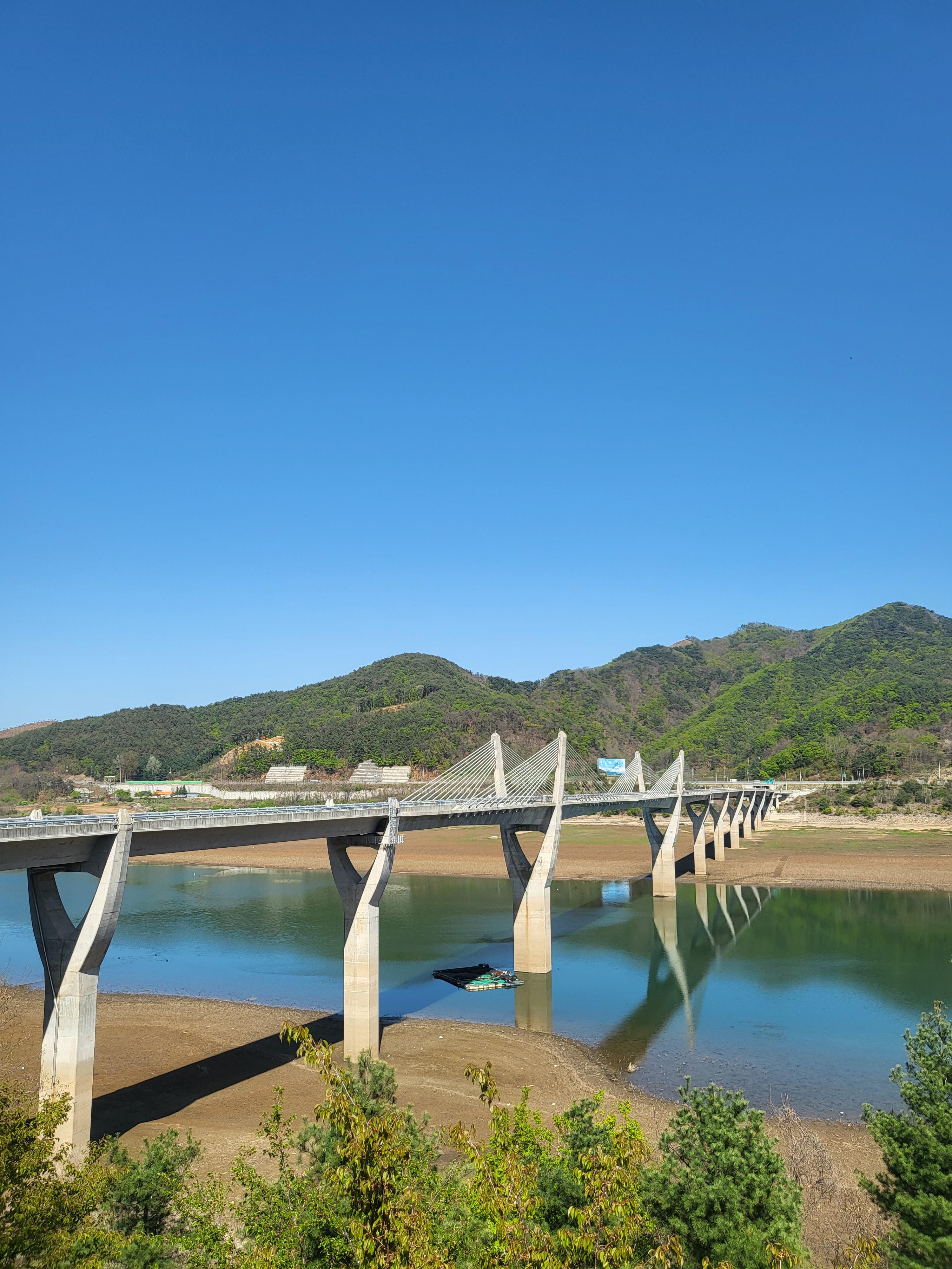 식사 후에는 38대교를 네비게이션에 치고 이동하면 쉴 수 있는 예쁜 38공원을 찾아가 보았습니다. 소양강댐으로 수몰되기 전에는 육군본부와 비행장이 있던 곳인데 지금은 차량 통행도 거의 없어 피크닉도 가능한 전망이 아주 좋은 곳이었습니다.