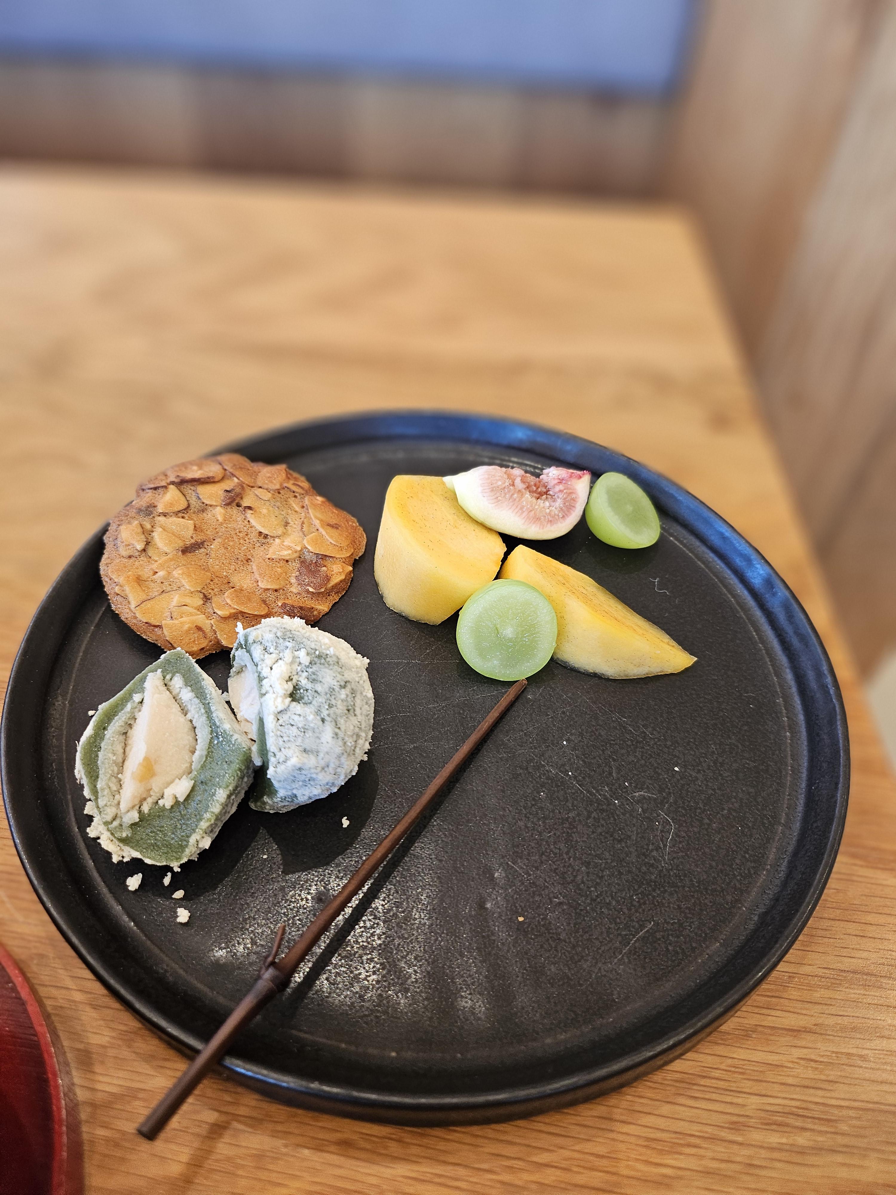 명원박물관에서는 여러 문화행사가 있는 듯해요. 외국인도 많네요. 한옥 같은데 세련된 분위기, 처음 맛보는 진한 말차, 그리고 먹기 아까운 다과세트까지~