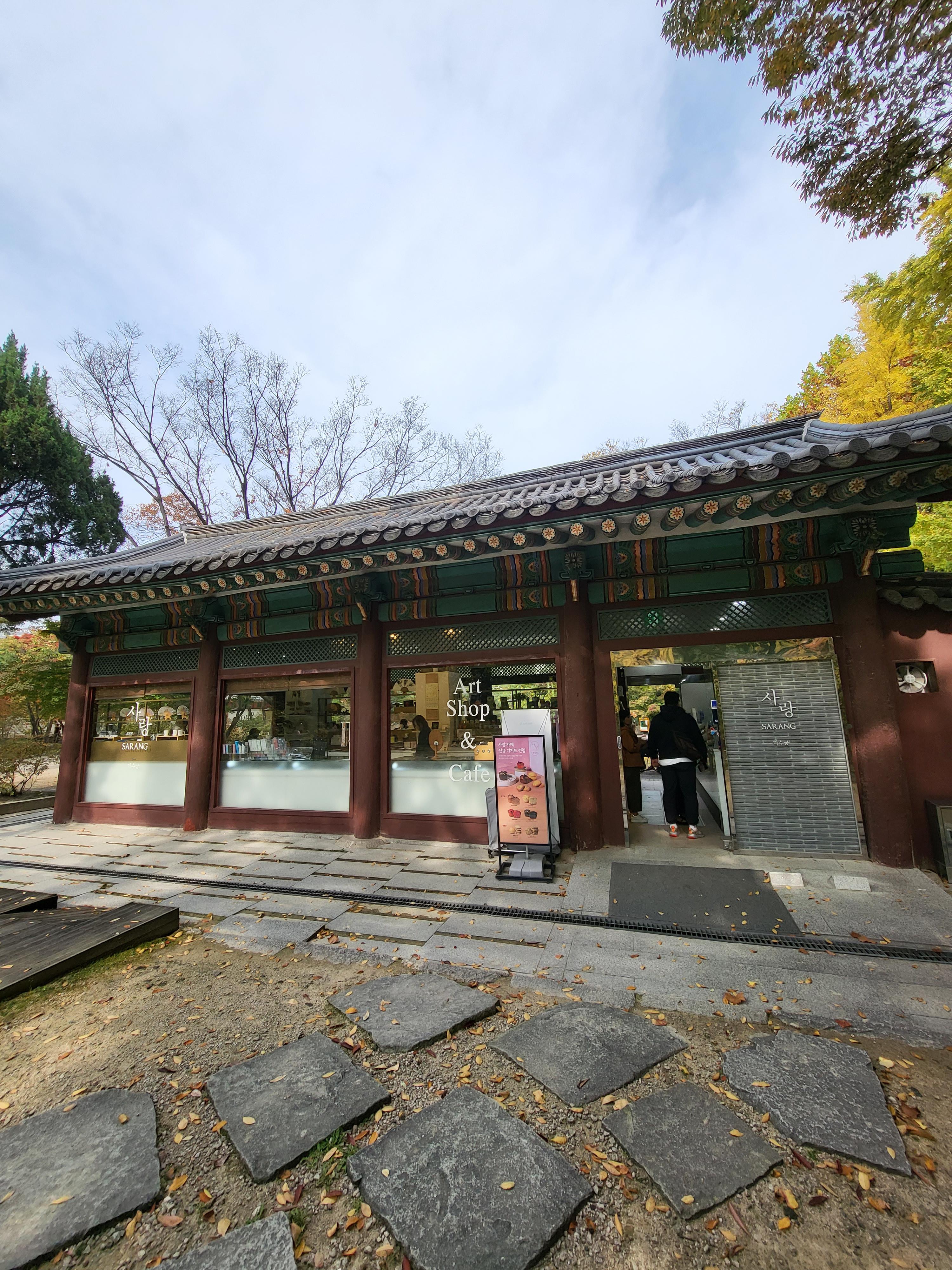 가을단풍놀이로 서울시청 한복판에 다녀왔어요. 입장료 1000원을 내고 덕수궁입장하니 많은 인파들이 예쁜 고궁의 정원을 느끼고 계시네요. 입장 후 바로 오른쪽으로 들어가면 아트샵 및 카페인 사랑카페가 있어요. 카페의자는 몇석 안되지만 연못주변에 앉을만한 큰 바위들이 많아 가을을 느끼기 좋더군요.