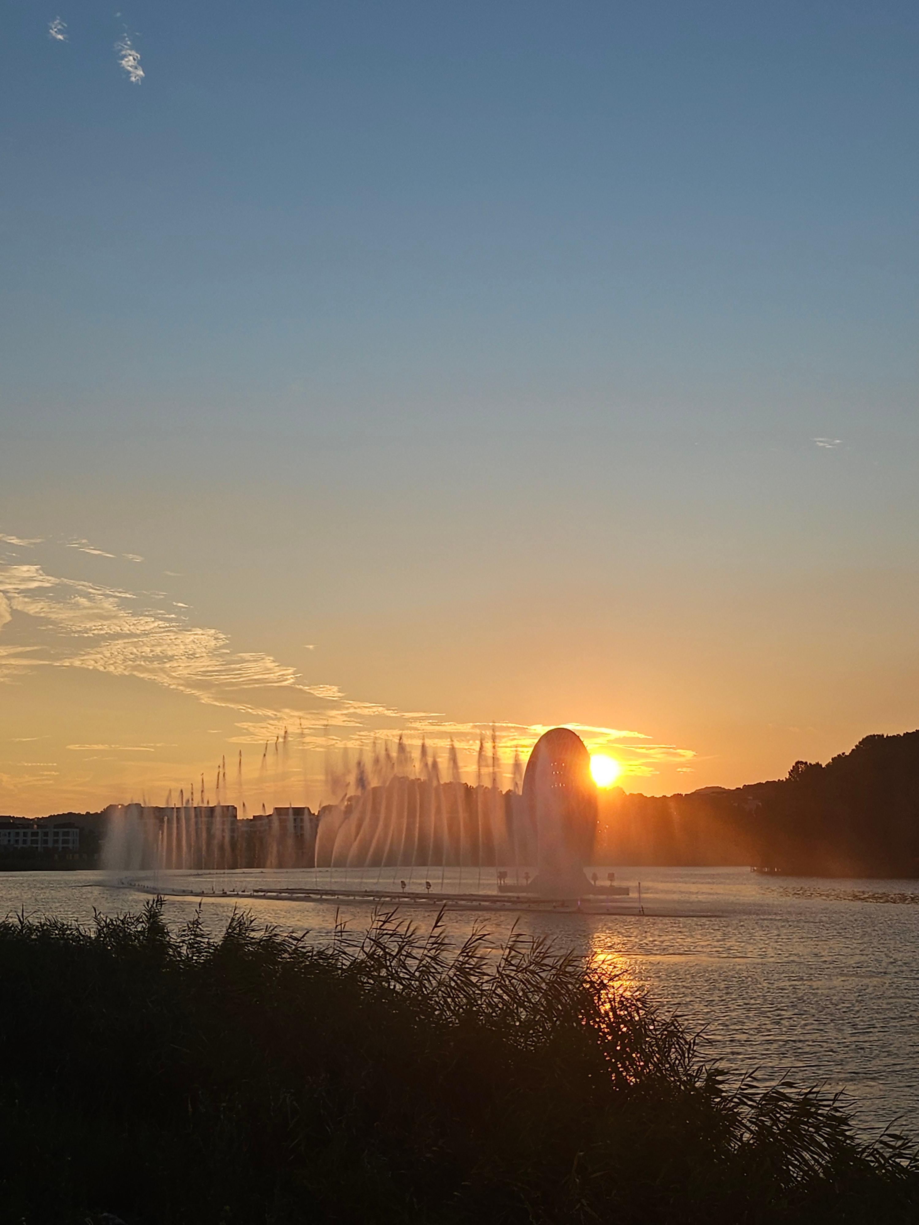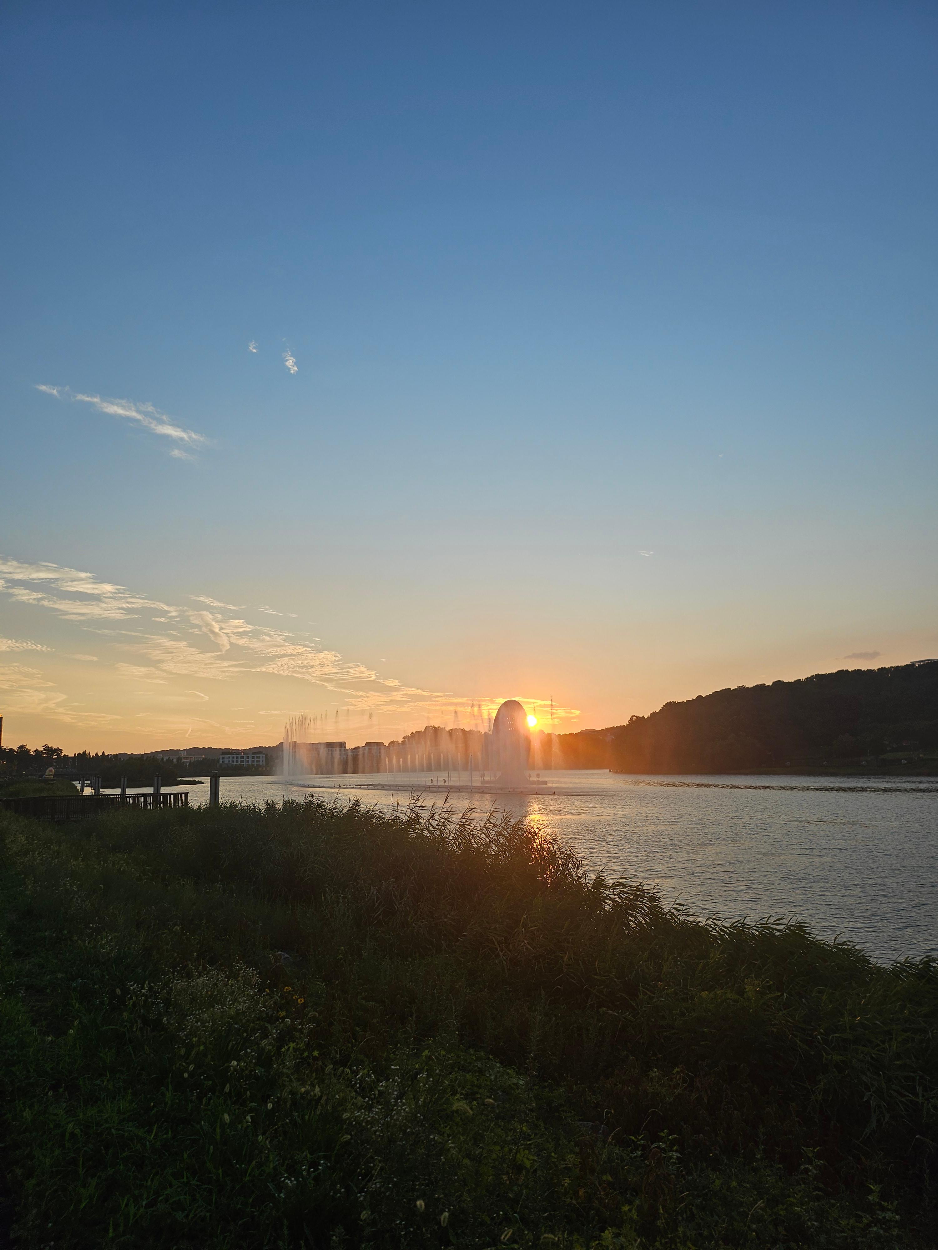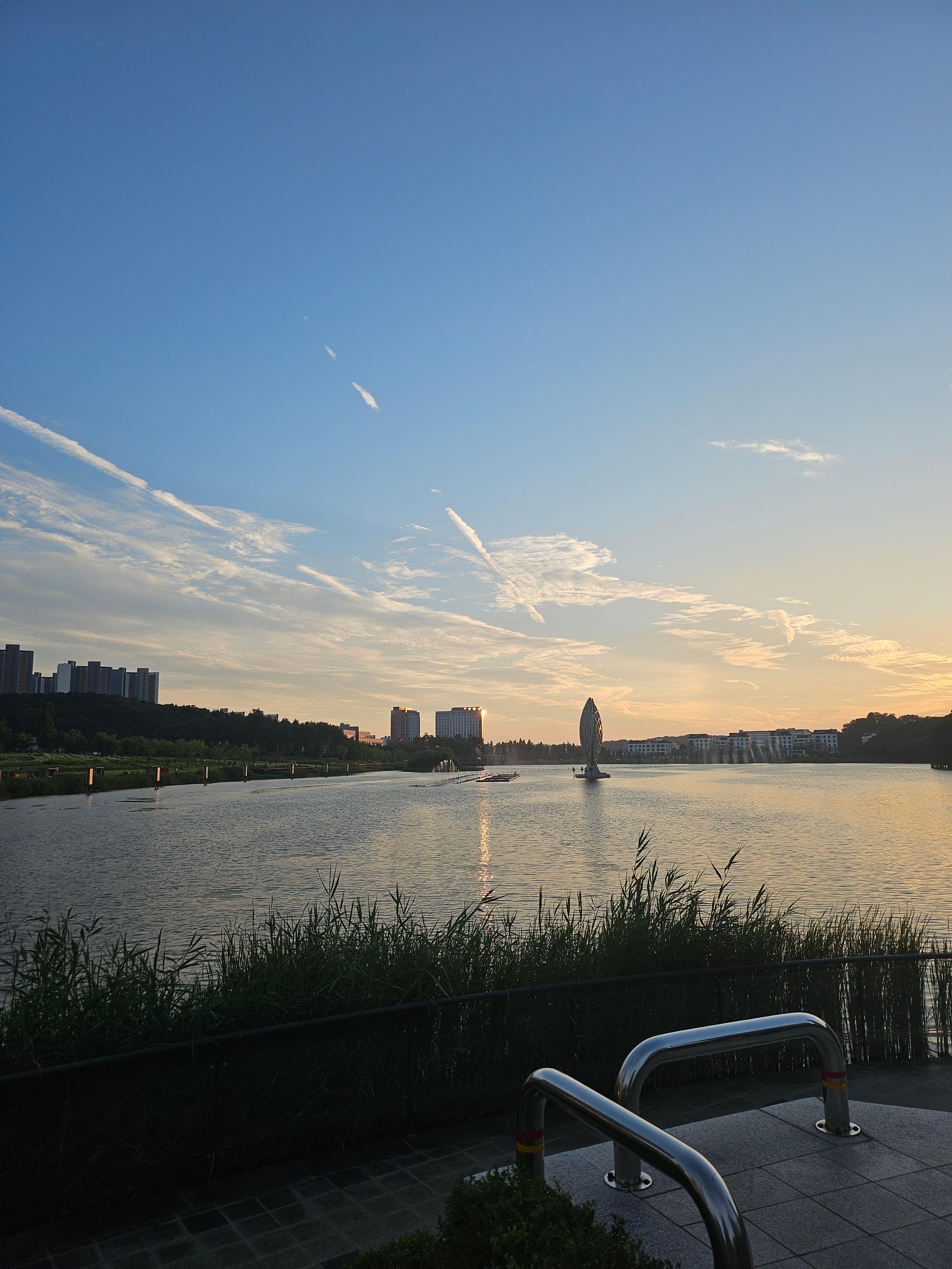 더위에 호수공원을 방문할 생각을 못하다가... 입추가 지나고 나니 해 질 녘에는 시원한 바람이 부는 날이 있어 동탄호수공원으로 드라이브갔어요. 지하공영주차장이 잘 되어 있어 부담없이 방문하곤 합니다. 오늘 포스팅한 사진은 석양과 분수의 조화입니다. 해가 넘어가는 붉은빛과 분수가 조화를 이루는 모습이 좋네요. 앉을 곳도 많고 돗자리를 깔고 앉게 해주는 것이 동탄의 특징입니다. 차에 돗자리가 있는 분들은 편안히 앉아서 아이들이 뛰어노는 모습을 보시는 것도 추천드립니다.
