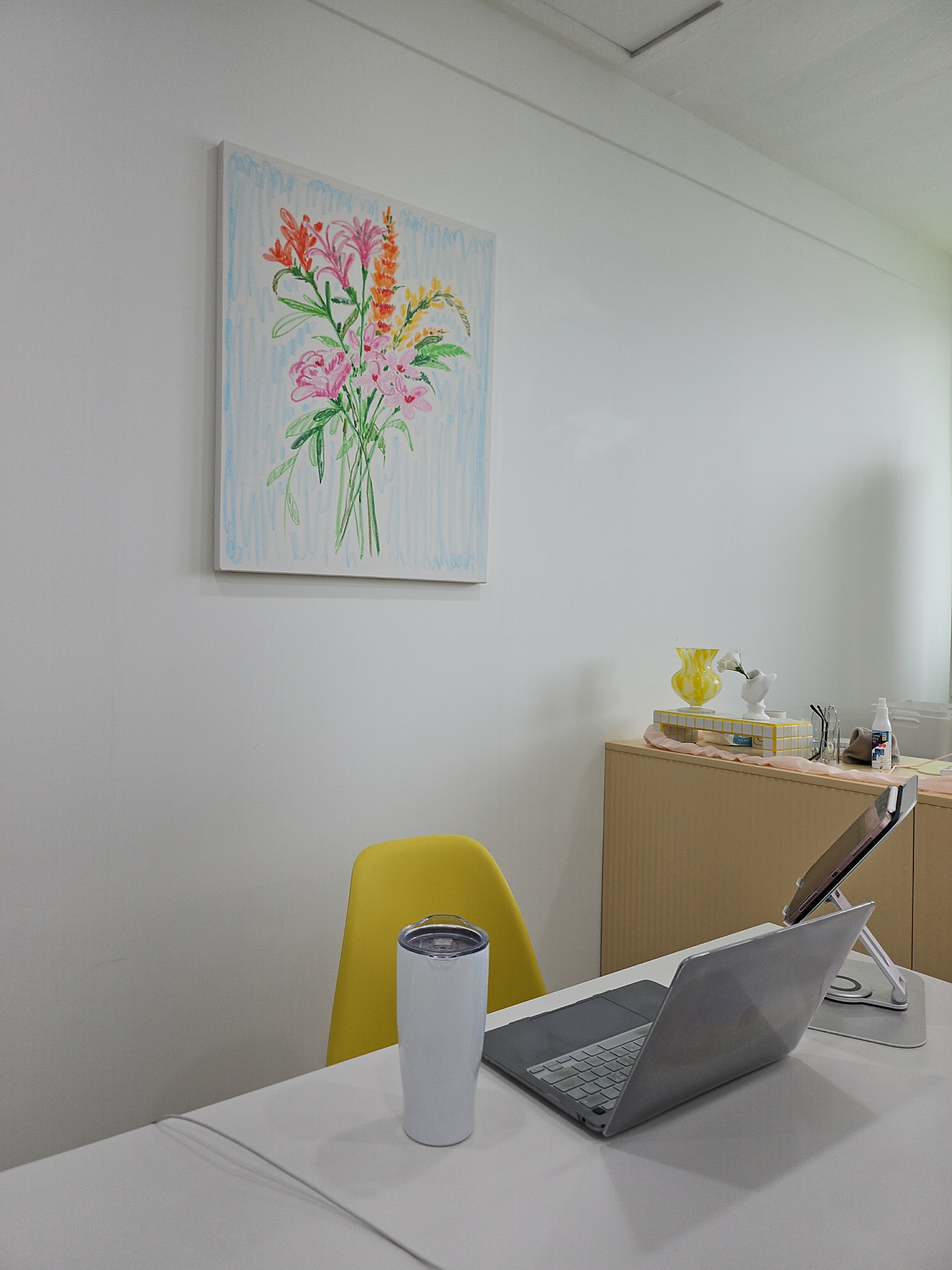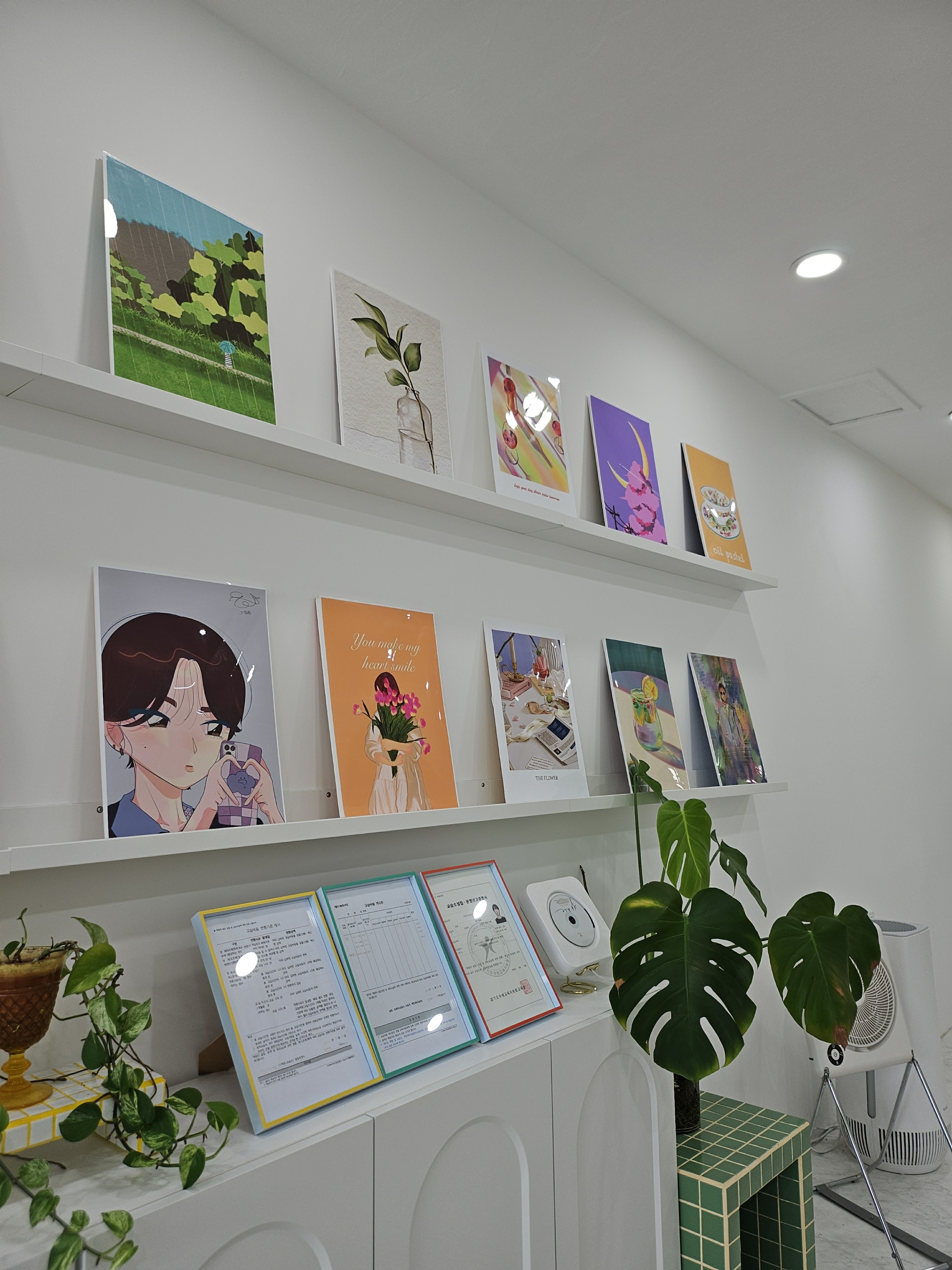 선생님의 인테리어 센스가 돋보이는 교습소가 너무 멋있어요. 디지털파일로 그림을 그리니 참 재미있고, 나중에 제 그림으로 굿즈를 만들고 싶네요. 그날까지 열심히 해보려고 합니다~