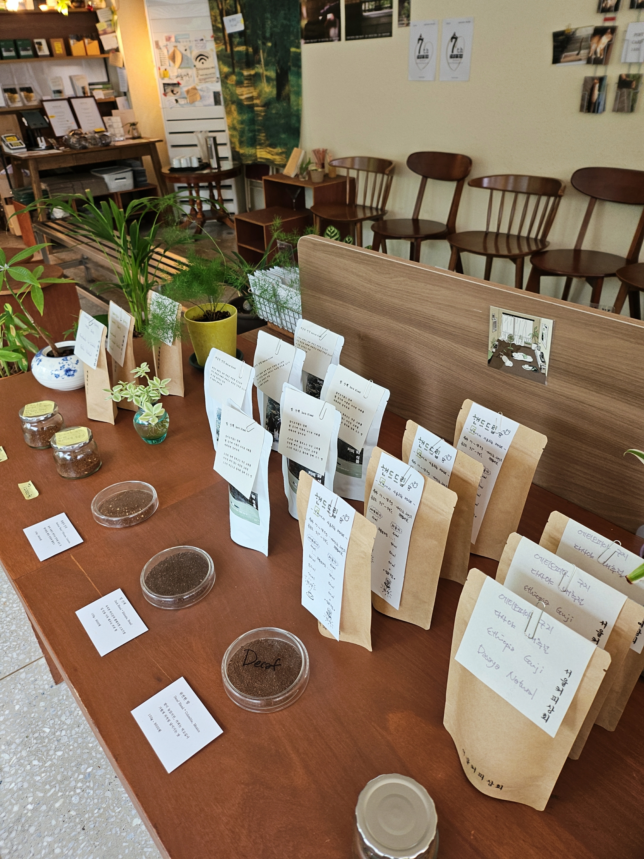 오랫만에 오랜시간 머물고 싶은 카페를 찾았네요. 보신각이 보이는 카페 서울커피상회입니다. 우리은행본점에서 내려 조금 걸으면 청계천광교를 지납니다. 바로 보신각이 나오고 바로 옆 골목으로 들어가면 미니 건물의 3층에 위치하고 있어요. 화려한 인테리어 없구요.  고사리류로 가득한 초록초록 크고 작은 화분들, 무심한 듯한 커피원두 판매대, 무심한 듯한 판매용 책자...무심한 듯한 응대...그냥 자연스러움이 가득한 카페에요. 커피값은 비싸지만 향이 훌륭하고 자리에 가져다주시네요. 서울상회라 치면 동대문의 조그마한 슈퍼마트로 가실 수 있으니 서울커피상회로 치고 찾아가세요. 오늘은 버스로 다녀왔어요. 차는 도로변 공영주차장 이용가능하세요~