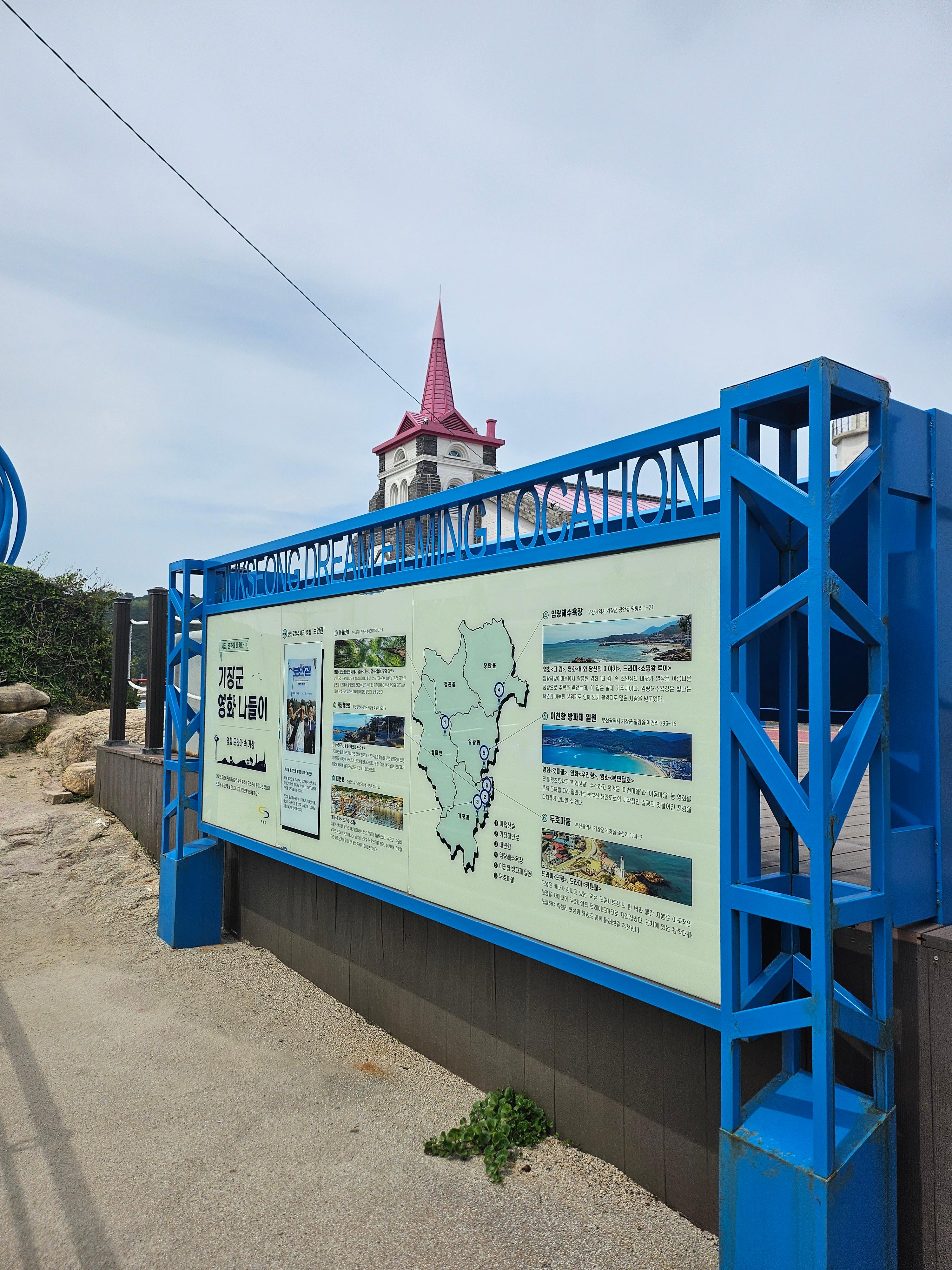 기장군 죽성항에는 가짜 성당이 있는데요, 우리가 흔히 죽성성당이라고 부르는 곳은 진짜 성당이 아니라 죽성드림세트장입니다. 2009년 드라마 "드림"을 촬영하기 위해 만들어진 세트장이고, 이후 드라마가 히트작이 되면서 외국인 관광객들에게 유명세를 타면서 기장군 죽성리의 대표적인 관광명소가 되었답니다. 미니 성당이지만 기장군의 푸른 바다와 잘 어울리는 아름다운 성당이네요. 죽성항에 위치하고 있어요.