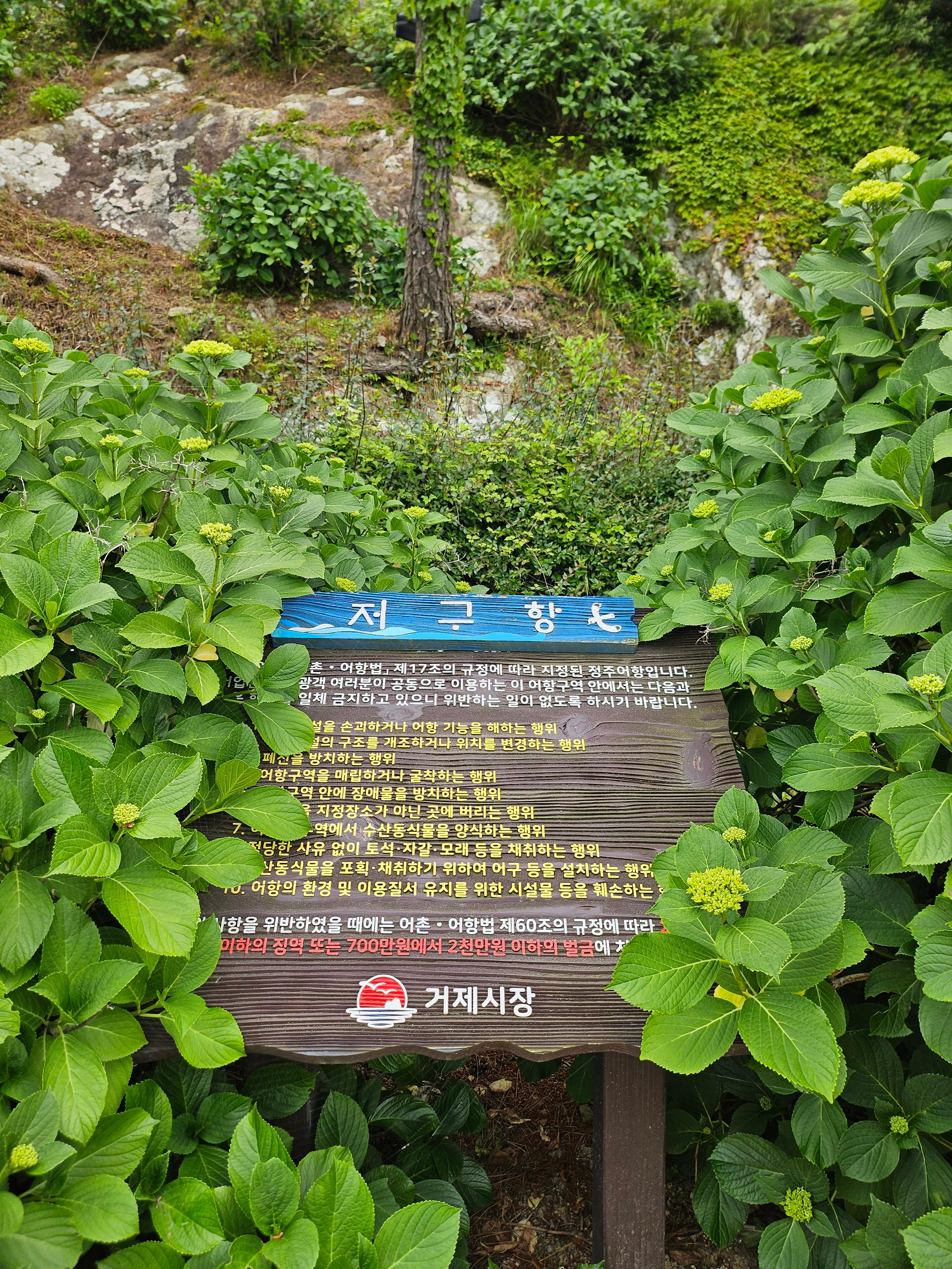 저구항은 수국명소로 유명하다고 하여 방문하였는데, 아쉽게도 아직 수국이 피지 않았네요. 보통 6월말에 만개한다고 하네요. 제주도를 생각했는데, 제주도와는 개화시기가 차이가 나네요. 거제시 남부면 저구리에 위치하고 있고, 이곳은 매물도로 가는 여객선이 운항하는 곳이고, 자연산 수국이 아니라 시에서 저구리를 알리기 위해 계획적으로 아름답게 조성한 곳이라고 합니다. 진짜 정성을 들인 수국동산이라는 것이 느껴졌어요. 거제도 가시면 방문하시기를 추천합니다.