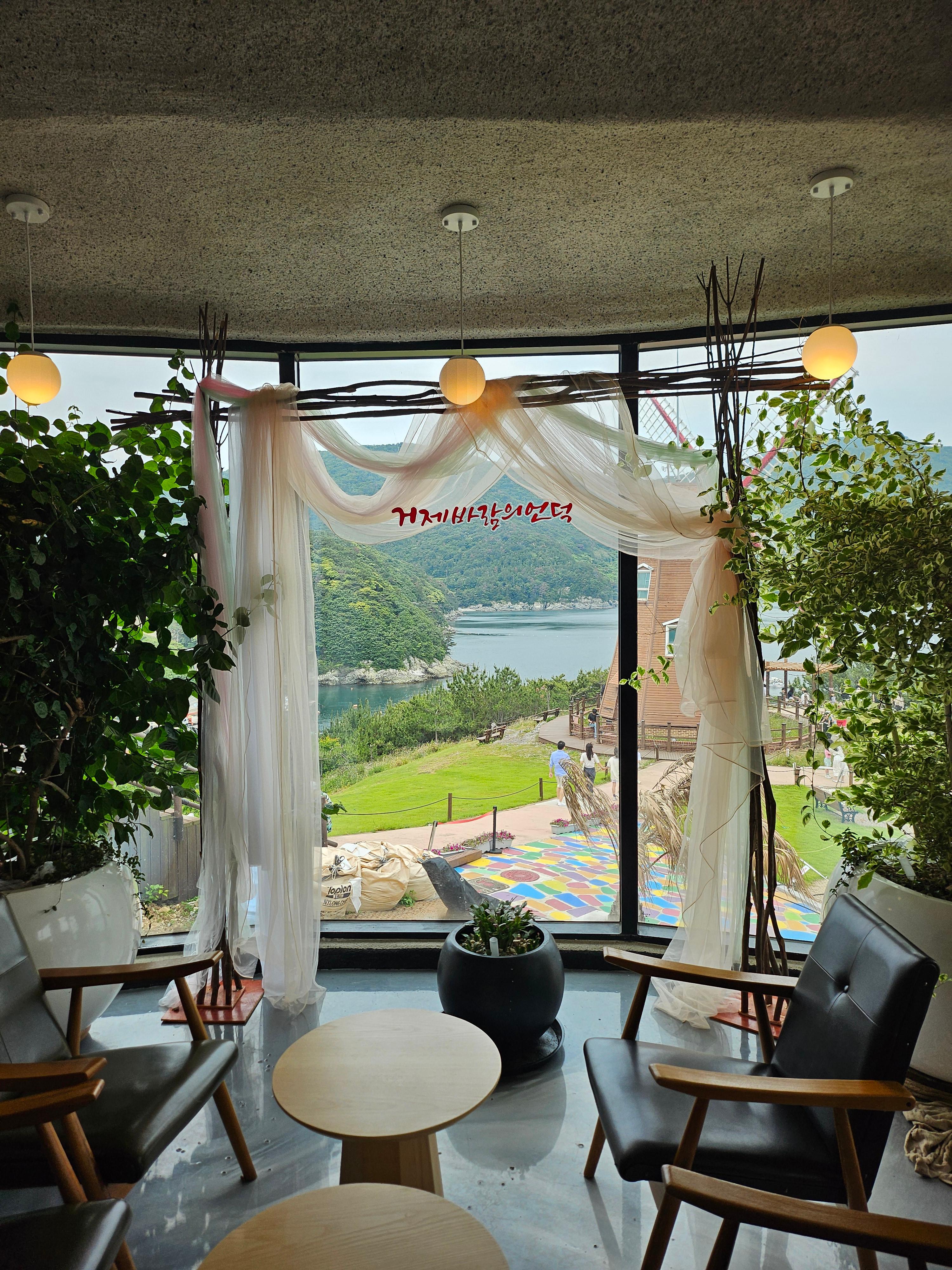 "거제바람의 언덕"이라는 카페가 풍차 옆에 있어서 시원한 바람과 시원한 커피를 마시면서 쉴 수 있었어요.