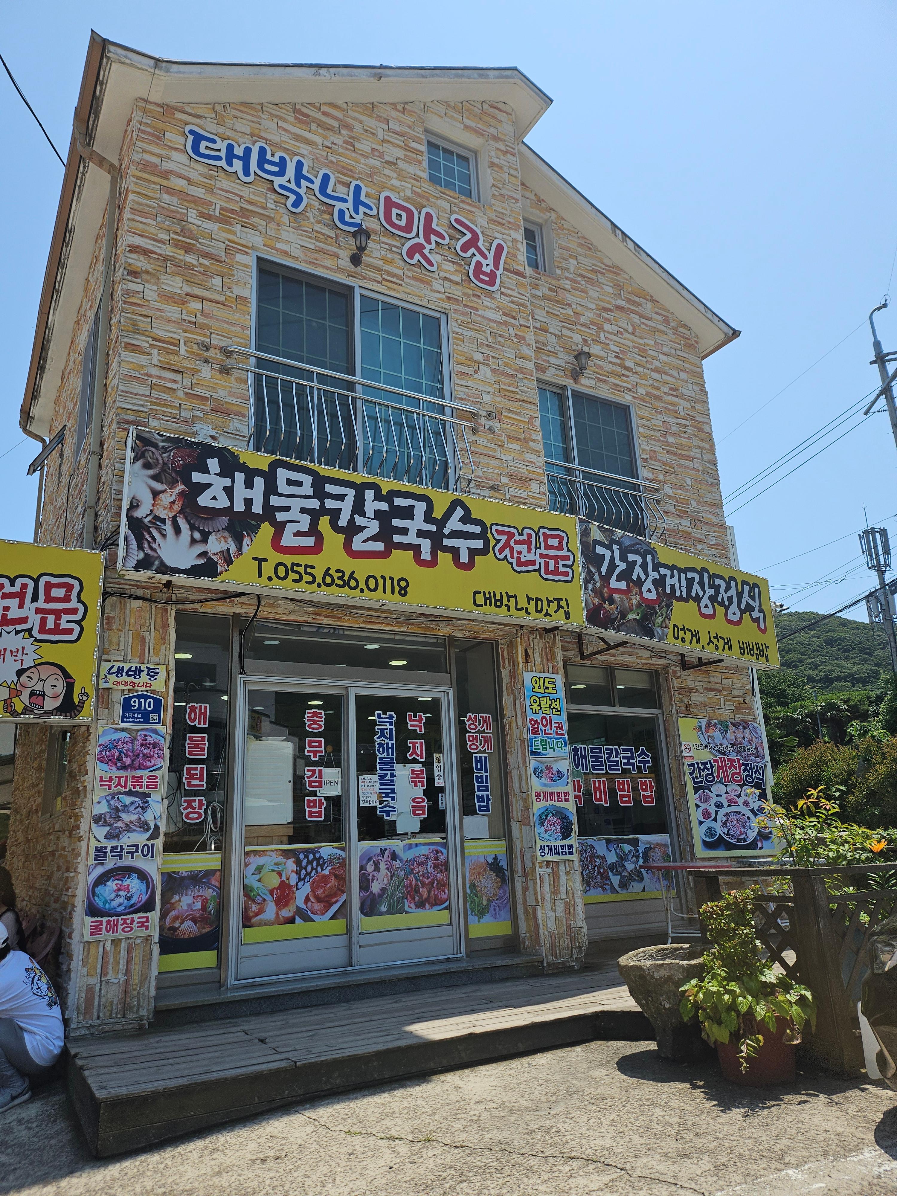 근포땅굴을 구경한 후 식사장소를 찾았어요. 거제케이블카 타는 장소 근처의 맛집으로 찾았답니다. 대박난맛집 거제학동점입니다.거제학동몽돌해수욕장에 있는데, 소문난 맛집인지 평일 점심에도 손님이 많았어요. 주차장 넓구요, 음식맛도 좋고 가격도 합리적이었어요.