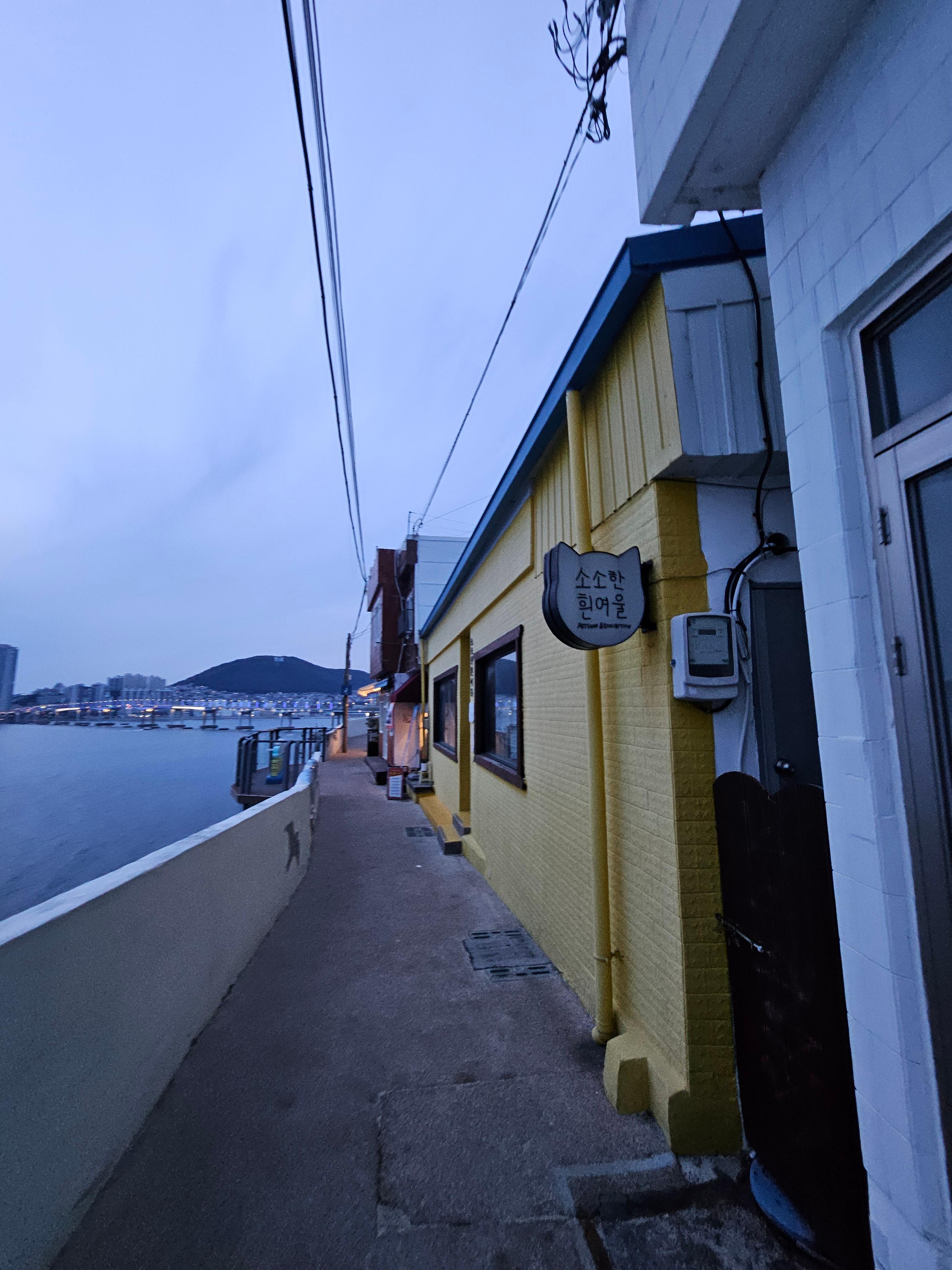 영도는 흰여울마을로 유명하지요~ 오늘은 흰여울마을을 구경하고 드라이브 갈 만한 야경명소 소개합니다. 예전에는 신기산업이라는 카페였는데, 지금은 미피카페로 변신했어요. 1987년 방울공장으로 시작하여 무민의 정식라이선스를 가지고 있는 캐릭터공장입니다. 선물용품, 캐릭터용품, 문구류를 수출하고 있고 철제나 실리콘플라스틱까지 영업분야를 확대하고 있다고 합니다. 이전 방문 시에는 하얀색 건물이었으나 지금은 유명한 미피를 테마로 한 카페로 변신하면서 오렌지색으로 리모델링했어요. 한 가지 변함이 없는 점은 최고의 야경명소라는 점이에요.