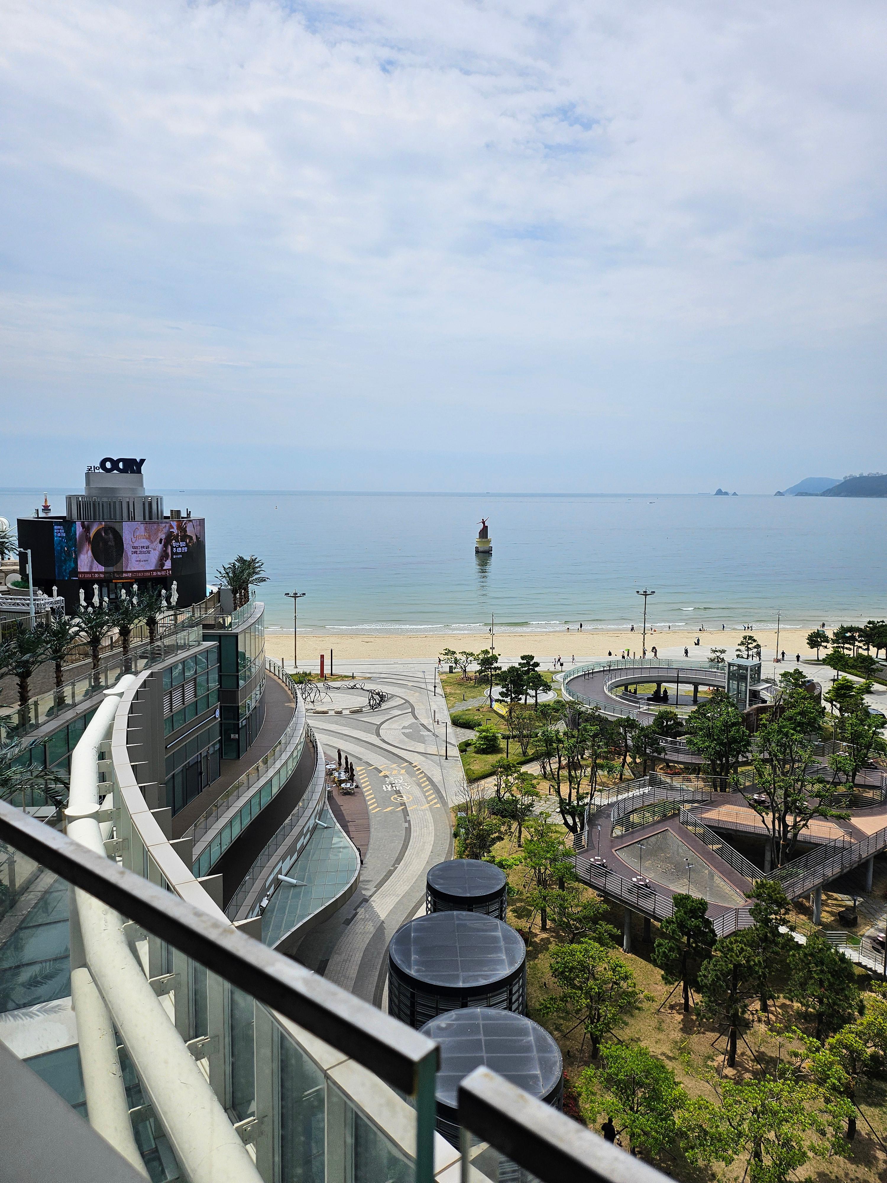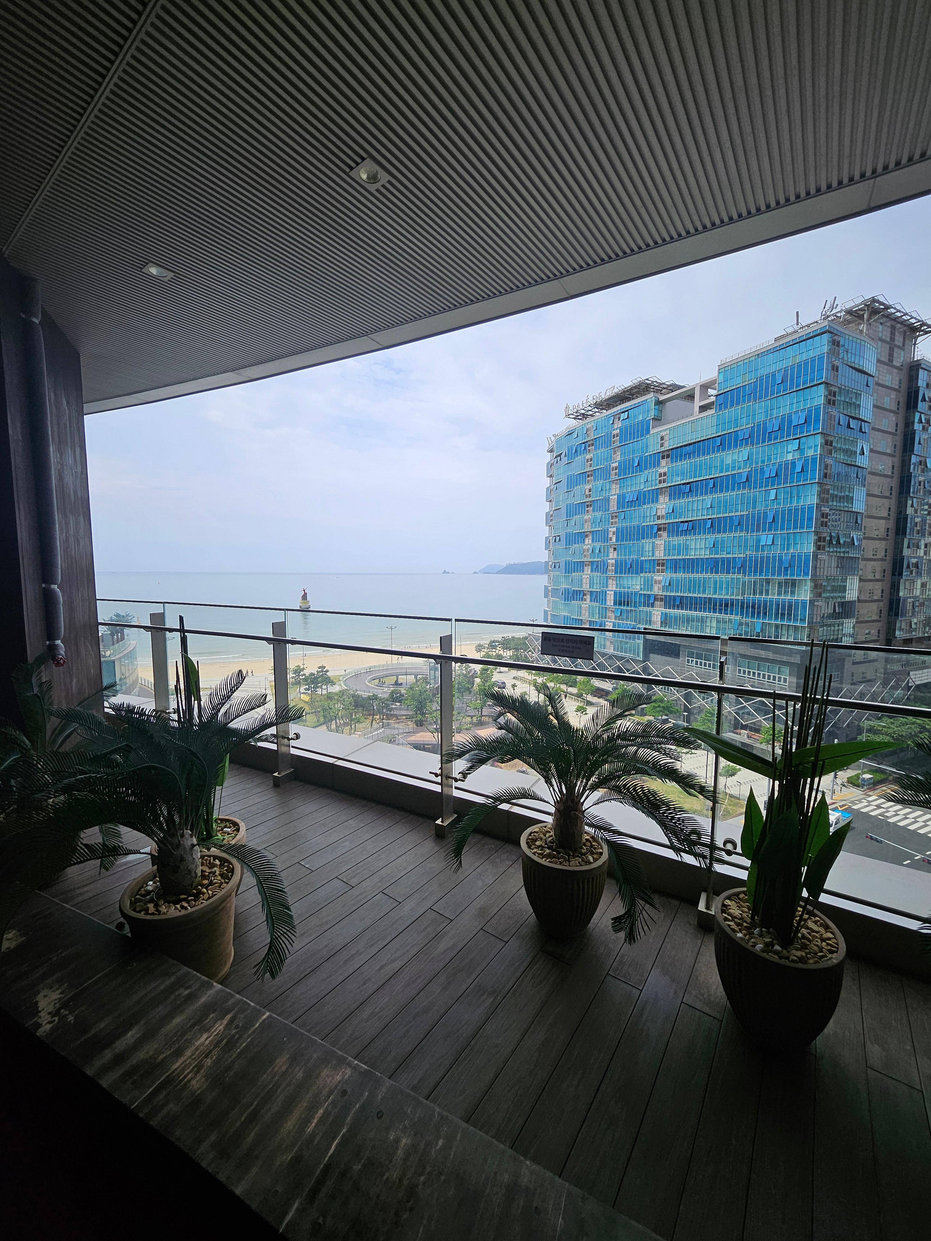 바로 앞에 해운대 해수욕장이 보이고요, 옆  건물은 팔레드시즈, 역시 유명한 숙소이자 상가건물입니다.