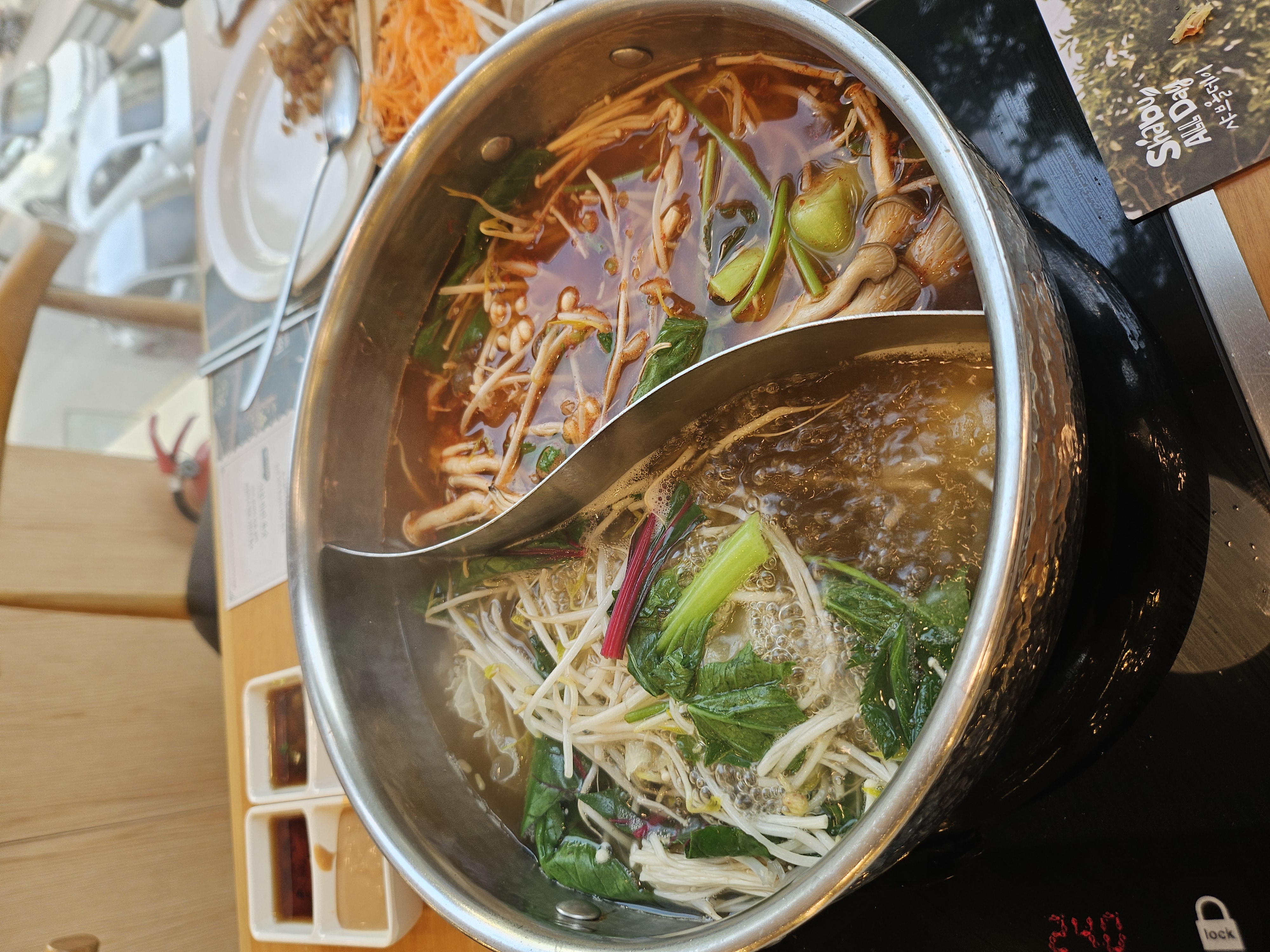 수원 정자동에 위치한 샤브올데이 소개합니다. 수원 화서역이 걸어서 10분거리입니다. 수원 화서역에는 별마당도서관으로 유명한 스타필드가 있어요. 스타필드 안에도 맛집이 많지만 무한리필의 고기제공과 샐러드바가 충분한 샤브올데이를 가고 싶으시다면 강력추천합니다. 과거 삼성전자 서비스센터 건물을 리모델링하여 넓고 쾌적합니다. 주차장은 넓지만 손님도 많아서 주차요원들이 발렛파킹해주십니다.