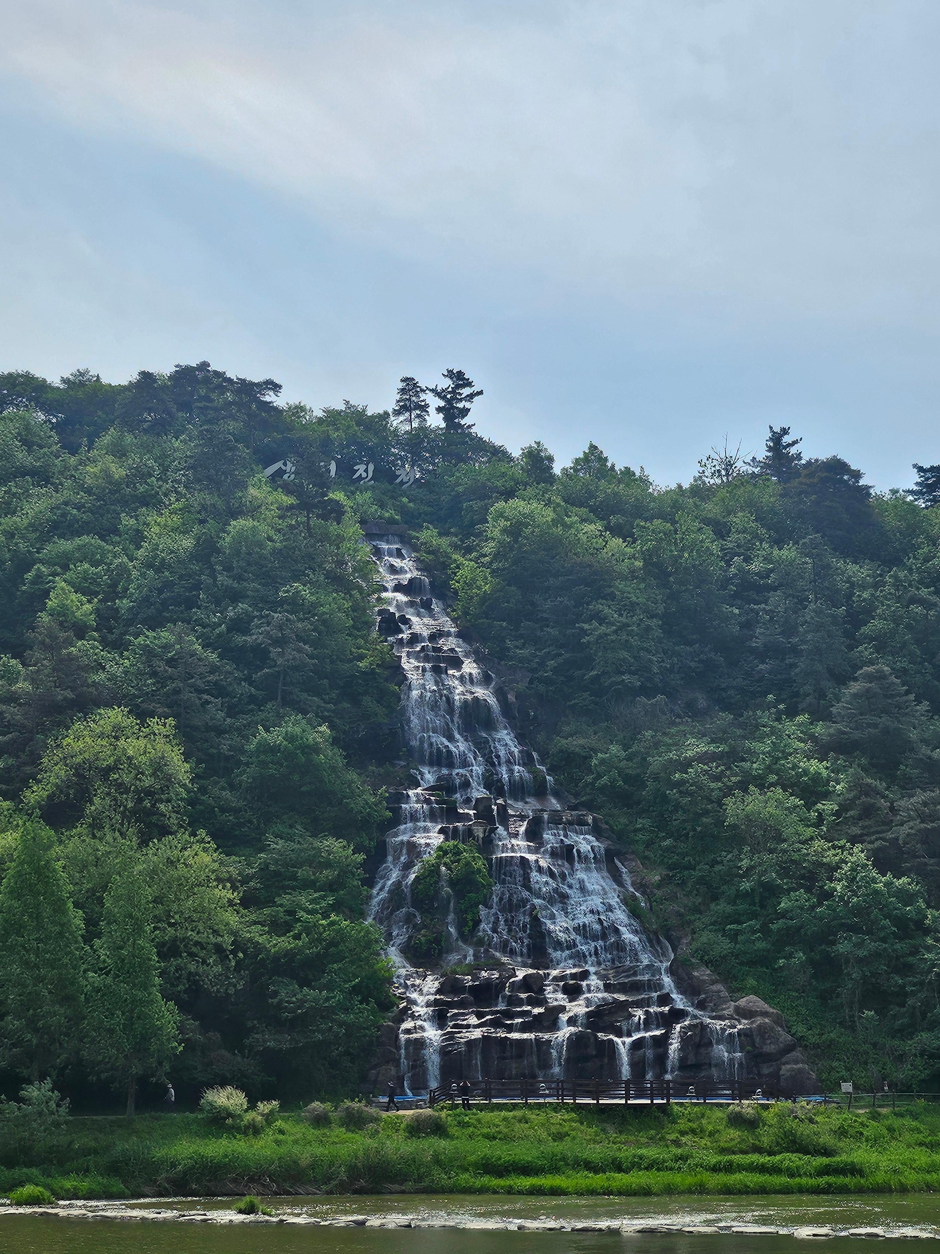 주차장에서 내리면 건너편에 인공폭포가 보여요~
