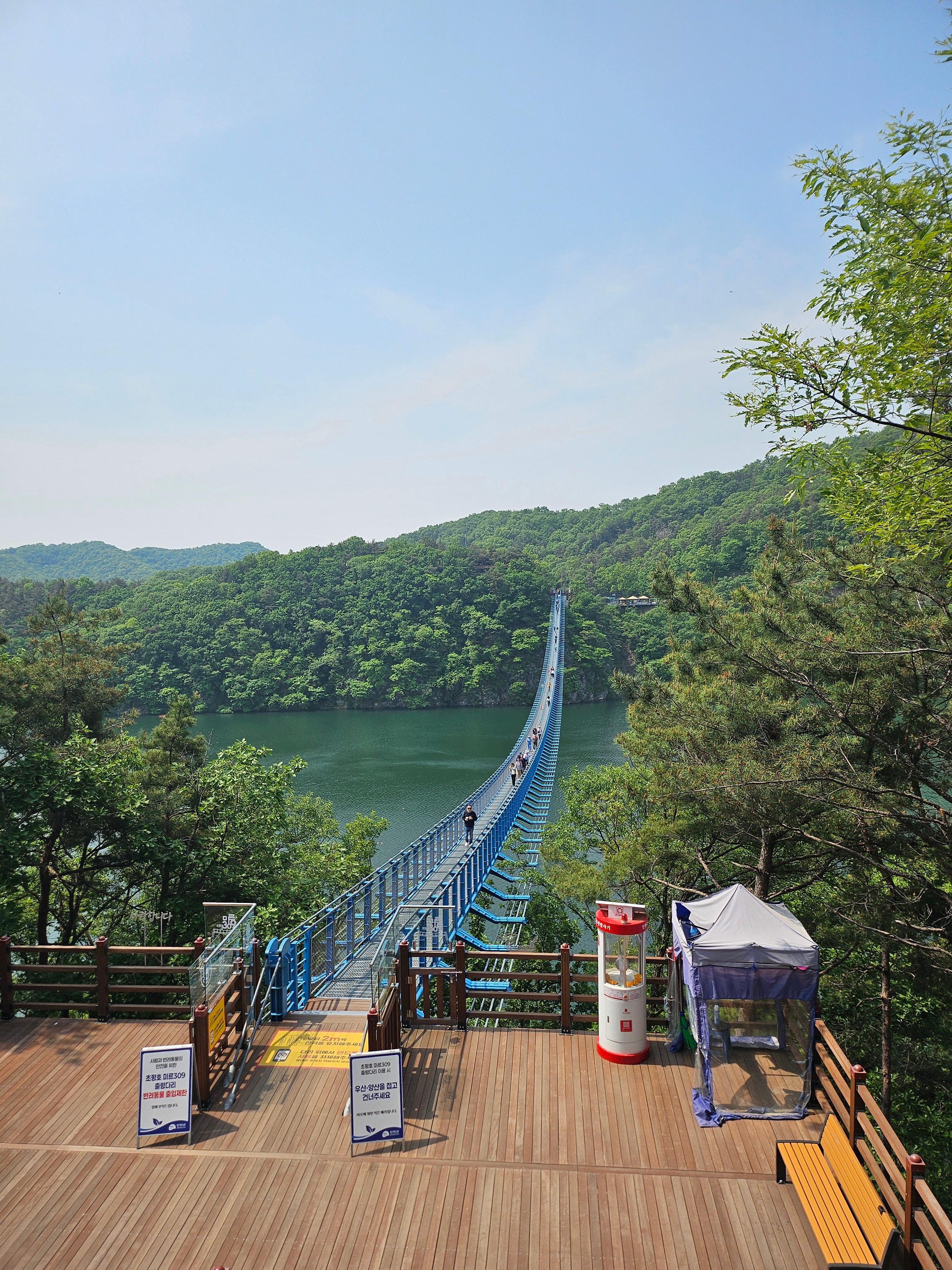 출렁다리가 연결된 곳을 초평호수라고 하는데, 마치 그 모습이 용과 같다 하여 미르 309 출렁다리라고 합니다