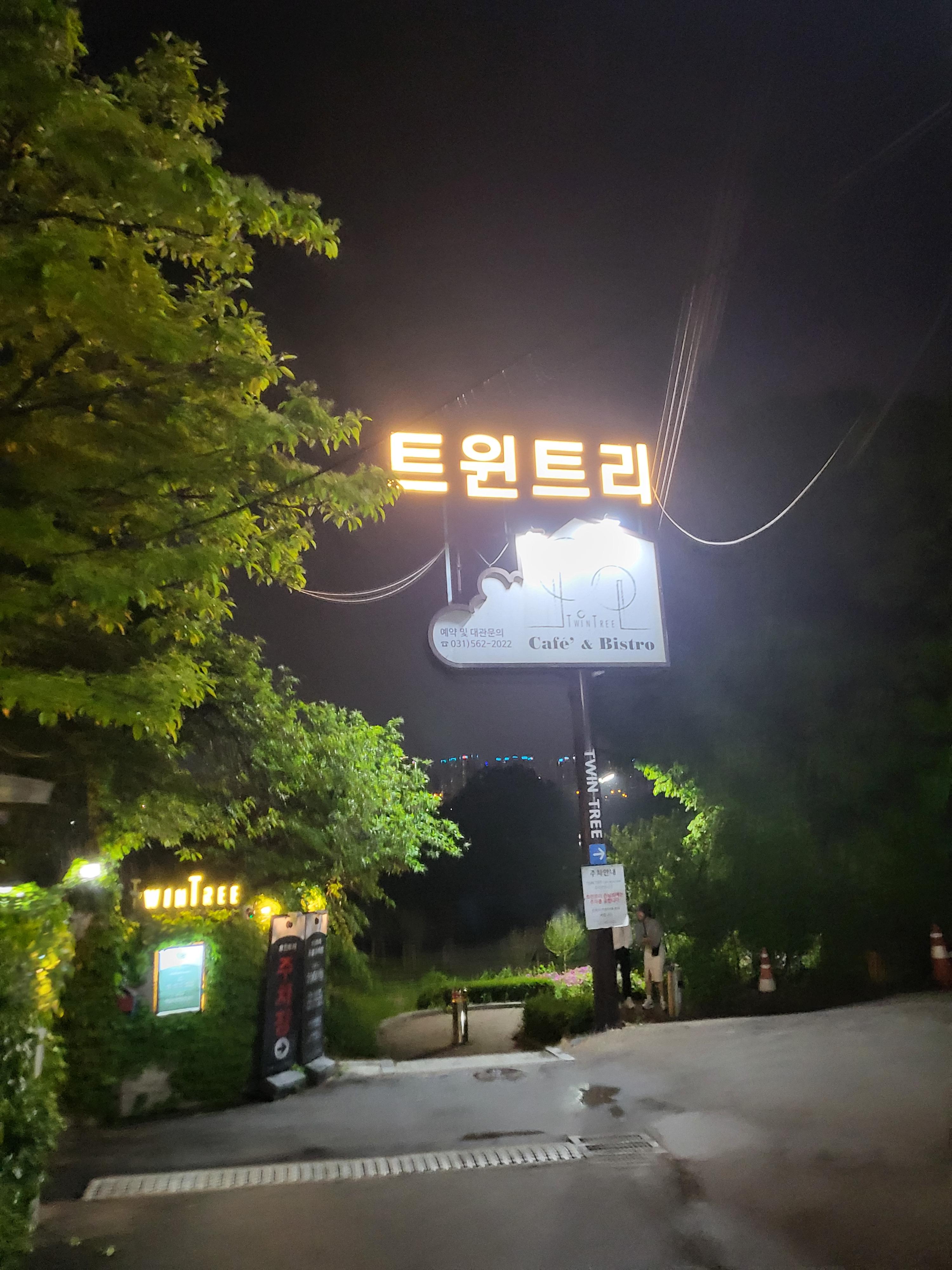 날씨가 좋아서... 날씨가 안좋아서 심야 드라이브를 가볍게 하고 싶은 날! 가볍게 드라이브 할 수 있는 심야카페를 소개합니다. 남양주 다산 신도시에 위치한 트윈트리입니다. 진짜 오래된 두 그루의 나무가 아름답고 청량하게 반겨주는 한강 변 카페입니다. 12시에 방문했는데 꽉찬 손님들에게 놀라고 아름다운 한강의 야경에 놀라고 또 친절한 응대에 세번 놀랐습니다. 주차장도 3개로 분산되어 평일 야간에 주차하기에는 부족함이 없었고 낮에 다시 오고 싶다는 의욕이 생기는 아름다운 카페입니다. 주말보다는 평일 밤 한산하게 드라이브하기에 좋은 곳입니다.