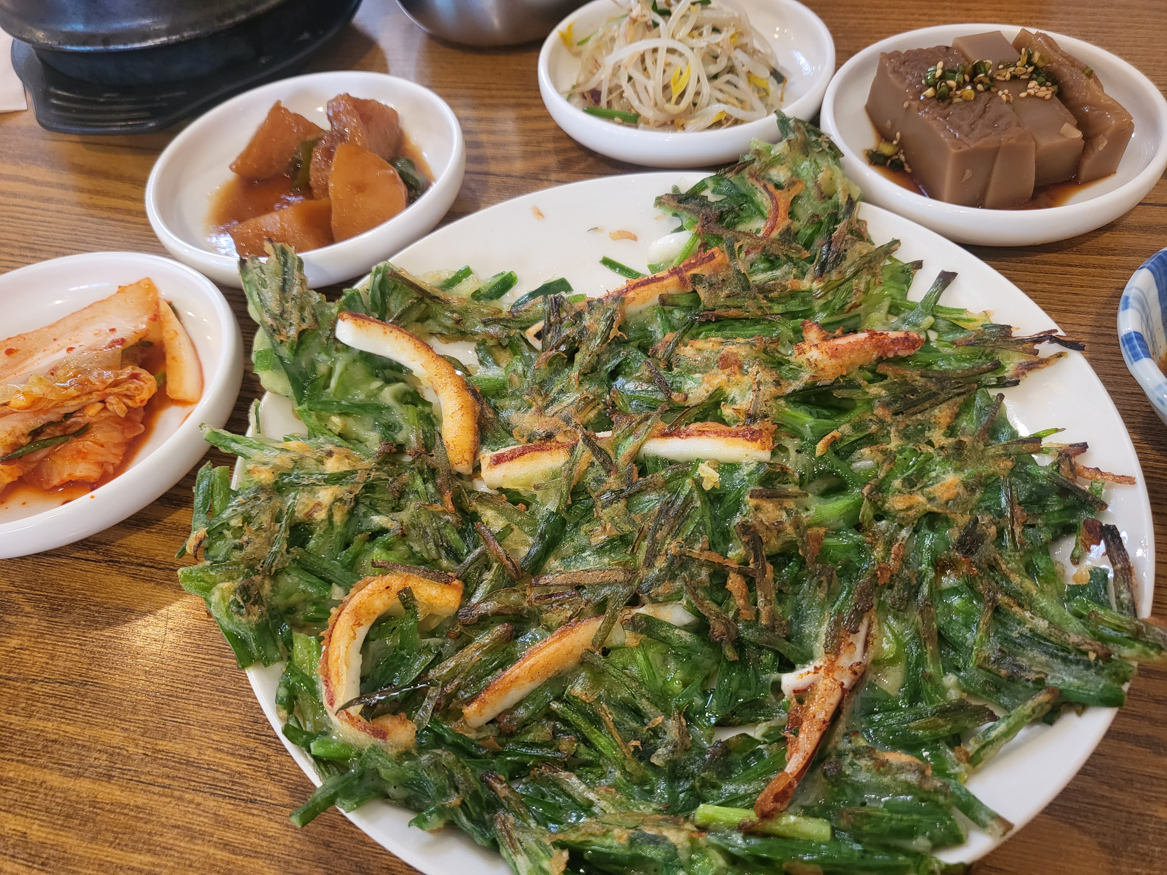 오늘의 백반...된장찌개와 부추전 맛있어요.