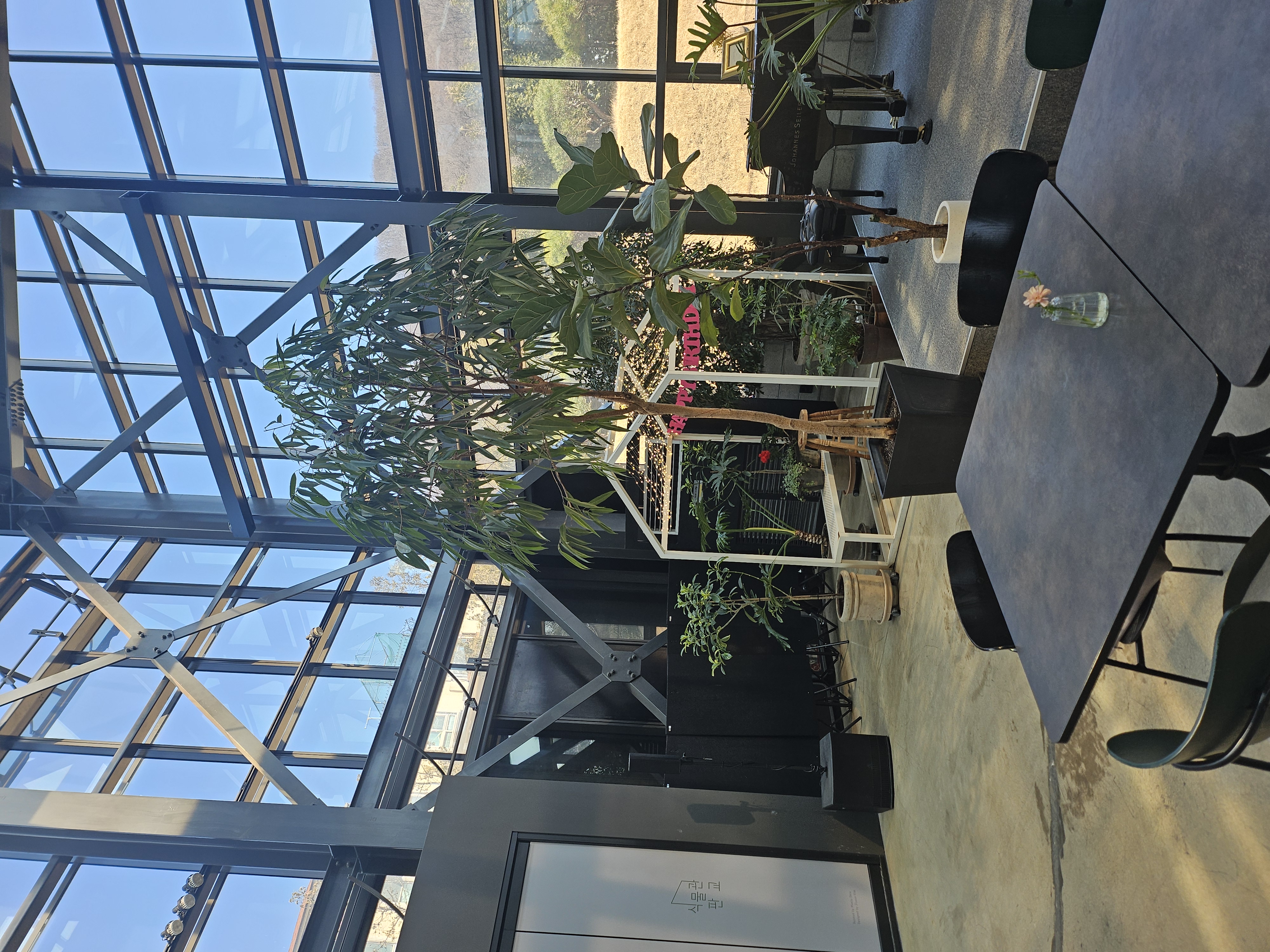 레스토랑 옆에 있는 온실 식물관에서는 자유롭게 대화를 나눌 수 있어요. 커피 판매자는 없어서 레스토랑이나 카페에서 테이크아웃해서 오시면 되어요~