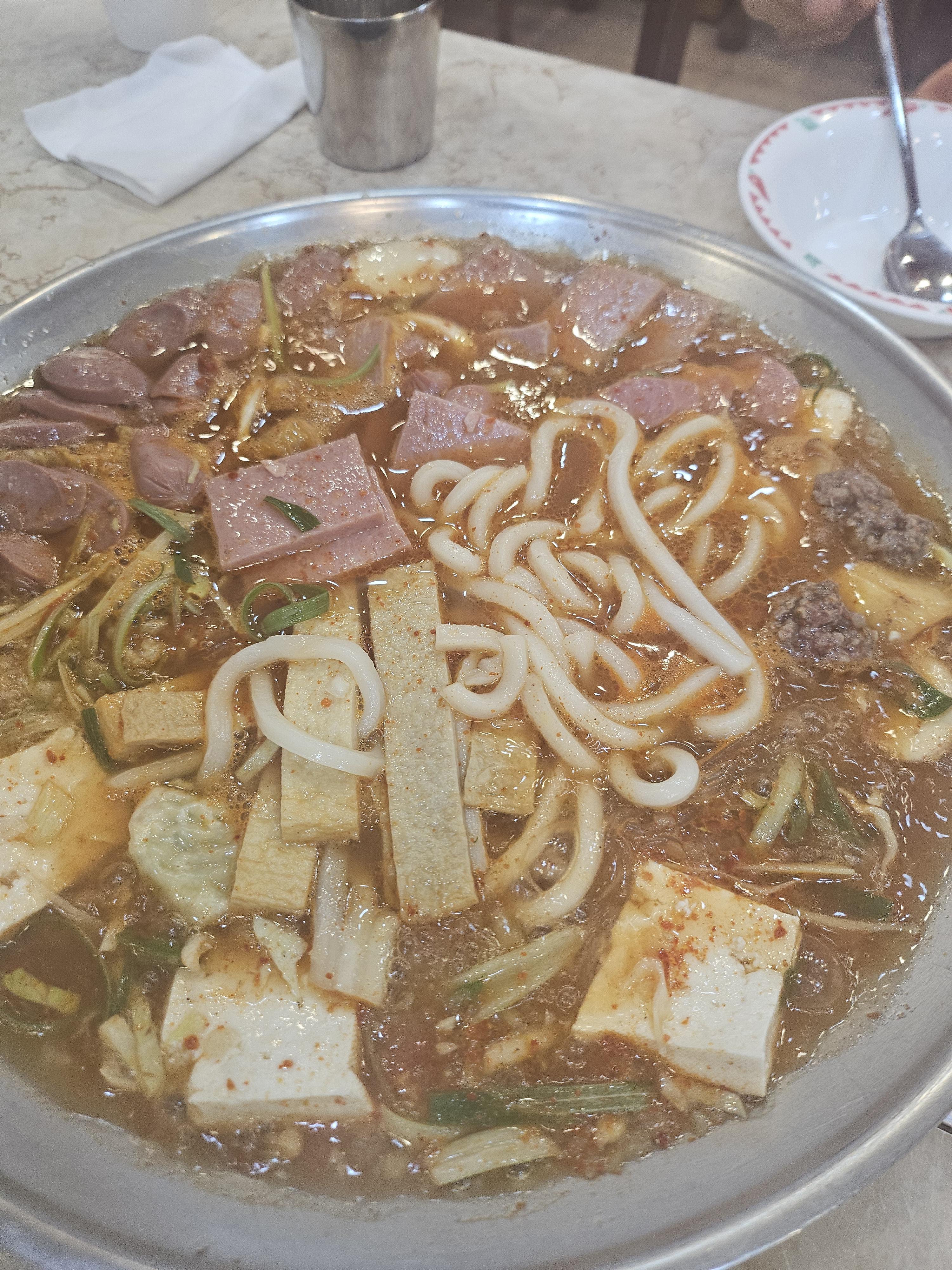 수원역 근처 100년 넘은 매산초등학교가 있어요. 바로 앞에 부대찌개 맛집이 있답니다. 마늘과 김치가 많이 들어가 국물맛이 시원합니다. 송탄이나 의정부 부대찌개와 차별화 된 맛~이 맛으로 건물도 지으셨어요. 그래서인지 인심 후하고 착한 가격 훌륭합니다.