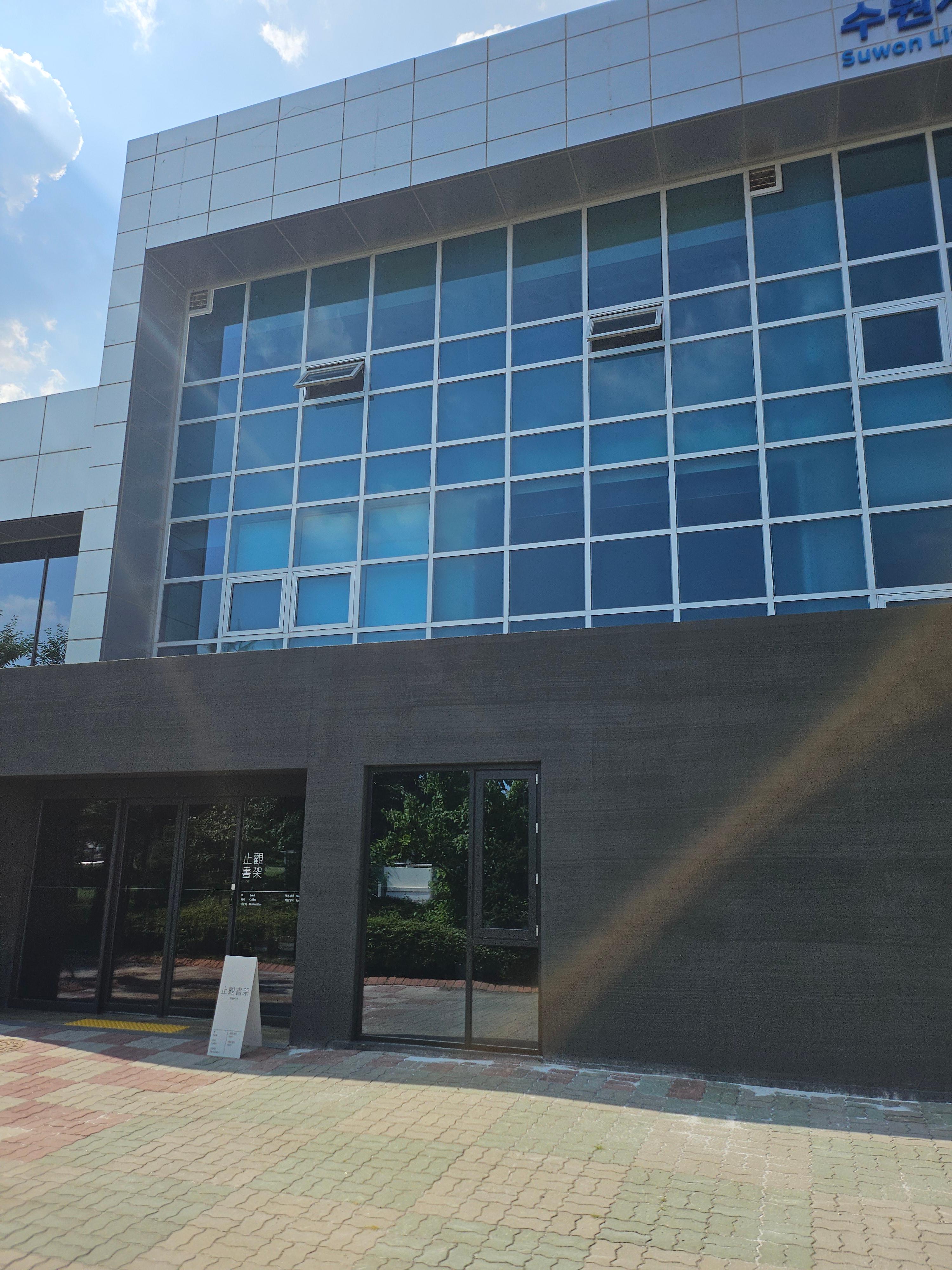 오늘은 멋있는 북카페 소개합니다. 동수원 IC 근처, 수원화성의 동문인 창룡문 근처의 옛 연무중학교 자리의 북카페 지관서가입니다. 연무중학교는 1980년에 개교한 중학교인데, 2008년에 임시휴교를 하고, 2012년에 광교신도시에 자시 재개교를 하였답니다. 지금은 광교신도시의 중심학교로 자리 잡았어요. 옛 연무중학교는 평생학습관 등으로 활용하고 있는데, 최근에 지관서가라는 멋있는 북카페가 되어서 방문하였답니다.