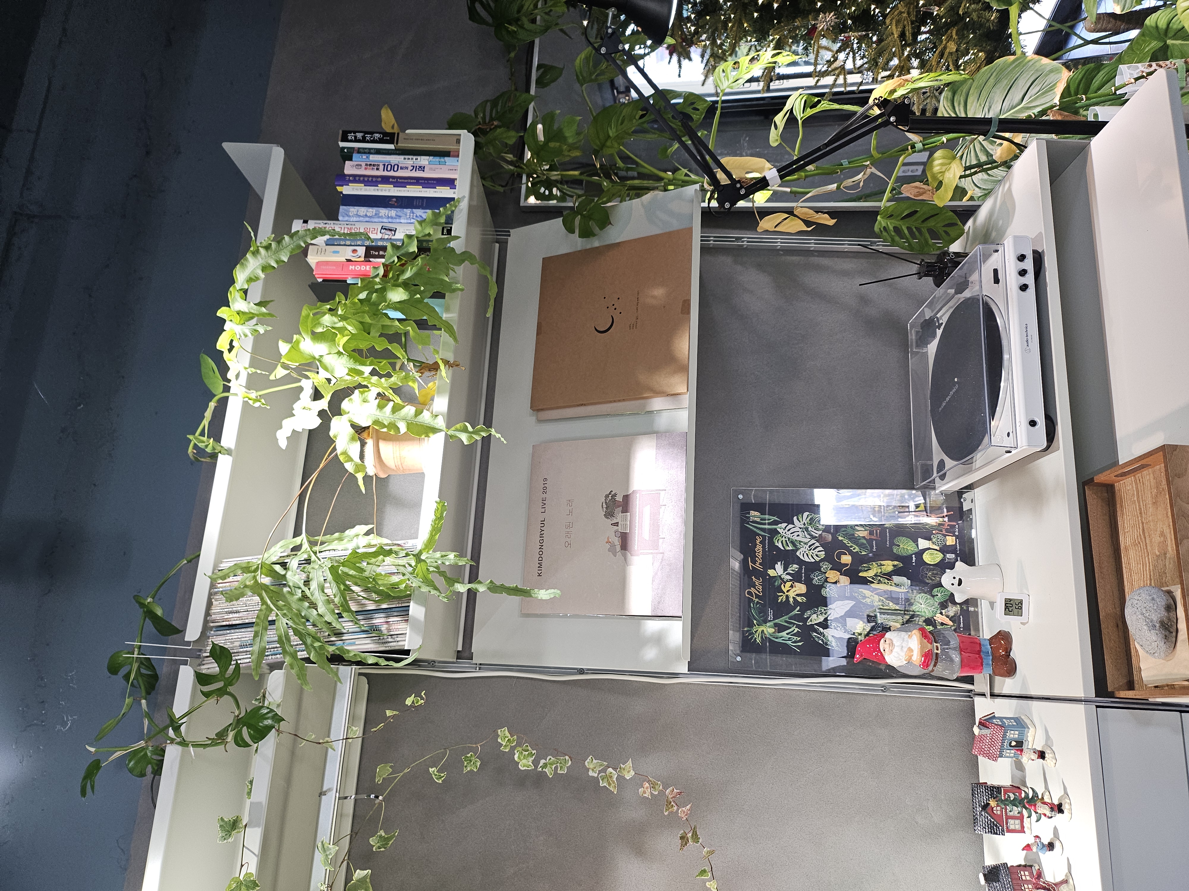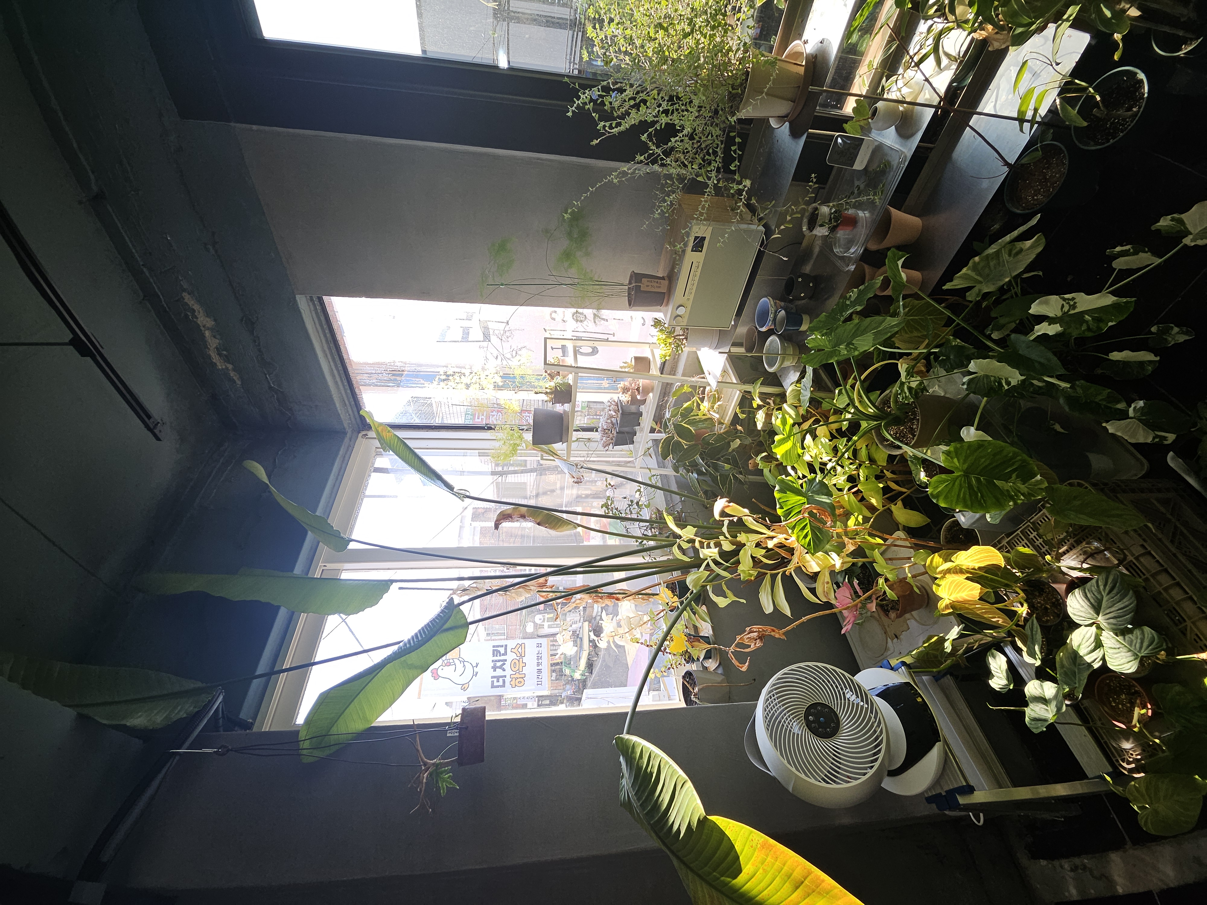 저는 고사리과의 양치식물을 참 좋아하는데요. 수분공급에 늘 실패하여 집에서 키우는 것에 늘 실패하고 있어요. 오늘 가보니 고사리가 참 많았어요. 특히 아디안텀 고사리 (Maidenhair Fern, 학명: Adiantum spp.)를 좋아하는데요, 가볍고 섬세한 잎 모양과 검은색의 가는 줄기가 특징인 매우 아름다운 관엽식물입니다. 하지만 아름다운 만큼 까다로운 관리로도 유명하며, 특히 습도가 매우 중요합니다. 얇고 섬세한 부채꼴 모양의 작은 잎들이 촘촘하게 달리고, 가늘고 검은색 또는 짙은 갈색의 광택 있는 줄기(엽병)가 대조를 이룹니다. 아디안텀은 습도 관리가 생명입니다. 건조한 환경에 노출되면 잎이 즉시 바삭하게 마르기 시작합니다. 물 주기는 겉흙이 마르지 않게 촉촉하게 유지하고, 습도는 매우 높은 습도를 유지해야 합니다. 제가 늘 실패하는 가장 큰 이유인 듯합니다. 오늘 카페에 방문해 보니 온실처럼 습도가 높았어요. 햇빛도 밝은 간접광이나 반그늘이 좋고 너무 어두우면 성장이 부진하다고 합니다. 온도는 18-24도씨가 적당하고, 화분 선택은 토분보다는 플라스틱이나 유약 처리된 화분을 사용하는 것이 수분 유지에 더 유리할 수 있습니다.공기 순환은 습도 유지가 중요하지만, 너무 밀폐되면 곰팡이가 생길 수 있으므로 적절한 공기 순환도 필요합니다. 잎이 마르기 시작했다면, 화분째 물에 담가 뿌리에 물을 충분히 공급한 뒤, 마른 잎을 모두 잘라내고 습도가 아주 높은 곳에 두어 새순이 나오기를 기다려야 합니다. 아디안텀 고사리는 섬세한 관리가 필요하네요~