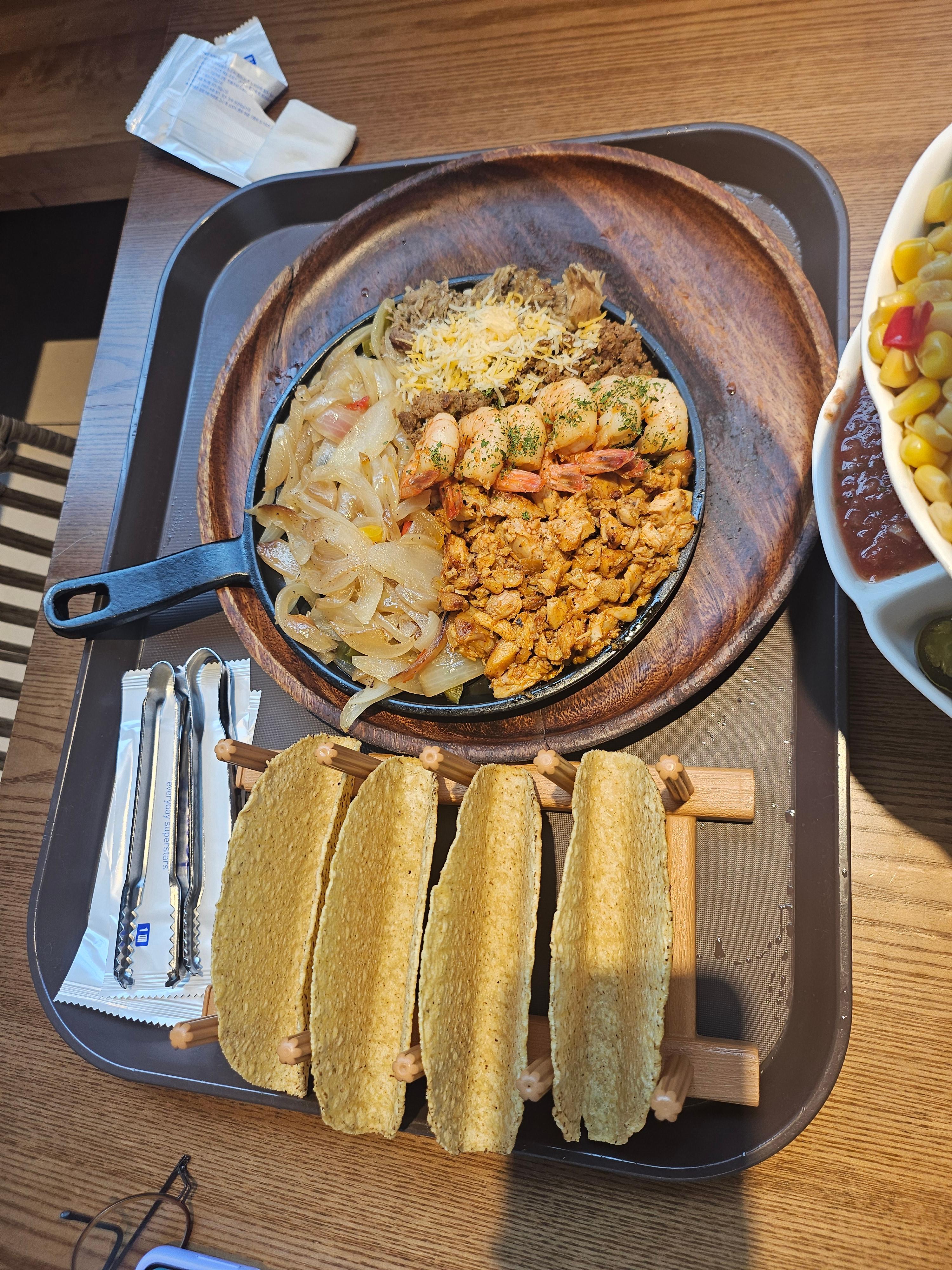 수원 구 롯데몰이 타임빌라스로 변신하고, 3층의 푸드코트를 엄청나게 크게 리모델링하였습니다. 음식점이 엄청 많아지고 밖이 보이는 시식좌석도 많고, 격리된 음식점으로 아늑하게 영업하는 가게들도 많아요. 자리를 옮긴 낙원타코에 다시 방문했어요. 맛도 좋고 가격도 합리적이어서 좋았답니다. 의왕 타임빌라스에서는 이터스, 수원 타임빌라스에서는 낙원타코에서 타코요리를 먹어요.