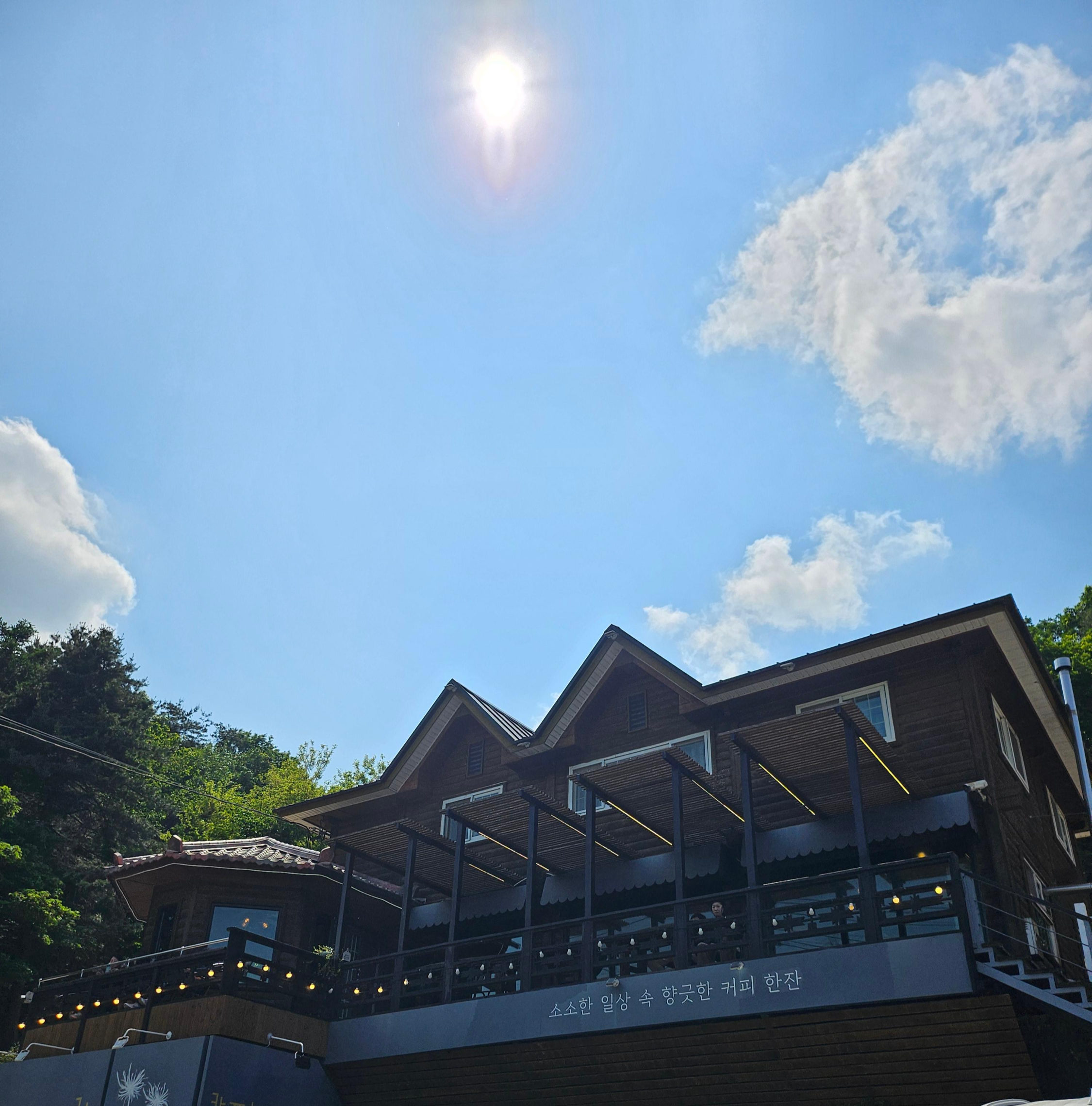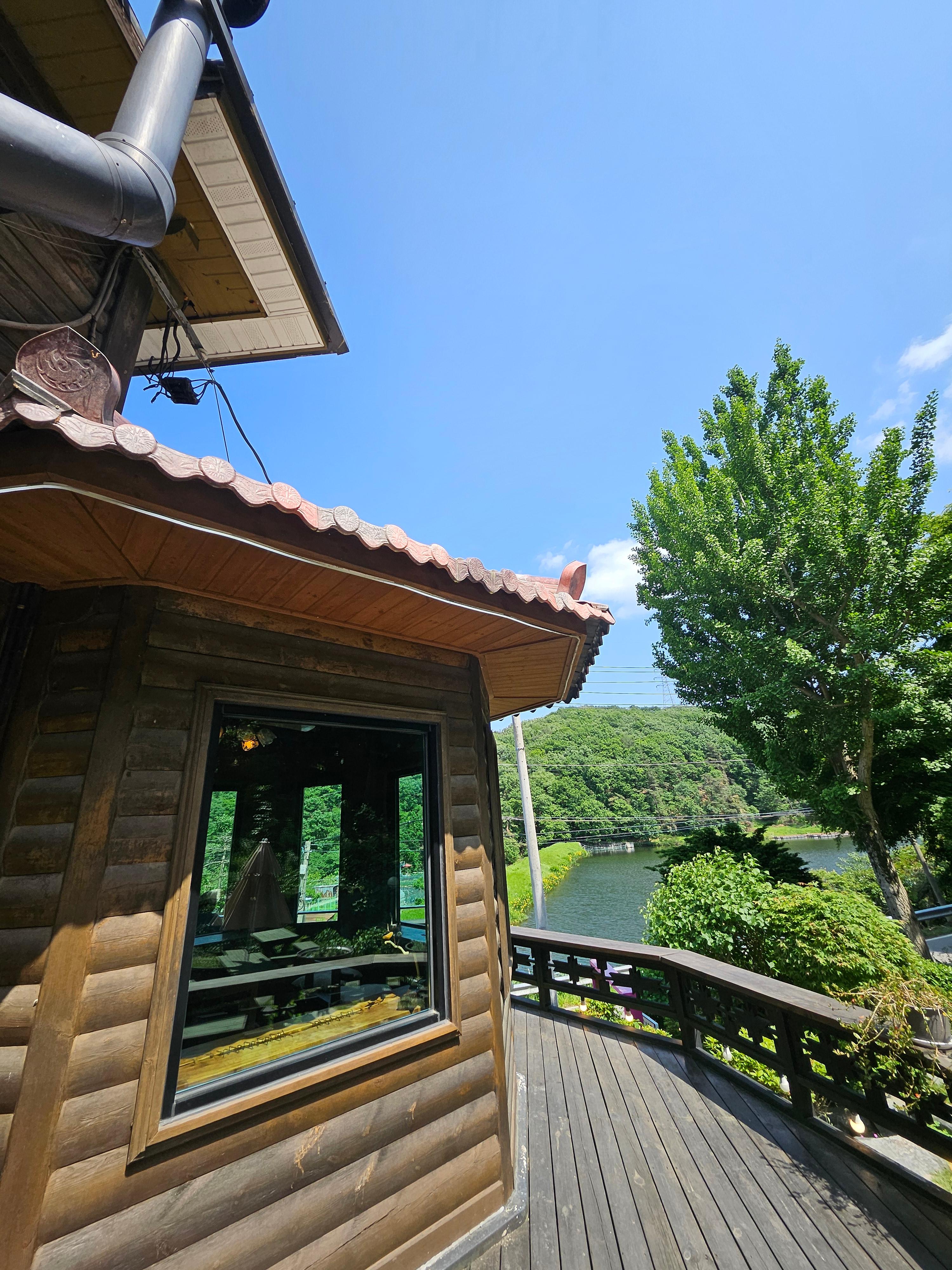 아쉬운 점은 전봇대가 너무 많아서 전망을 가린다는 것이에요. 아마 시골의 자그마한 저수지라 제방도 일반인은 접근할 수 없고, 전봇대도 옛날식으로 연결되어 좀 아쉽네요. 물론 사진에는 아쉽지만 차를 마시면서 좋은 공기를 마시기에는 충분한 아름다운 뷰를 가진 카페입니다. 주변에 맛집도 많아서 다시 방문할 예정입니다. 드라이브하기에도 좋네요~