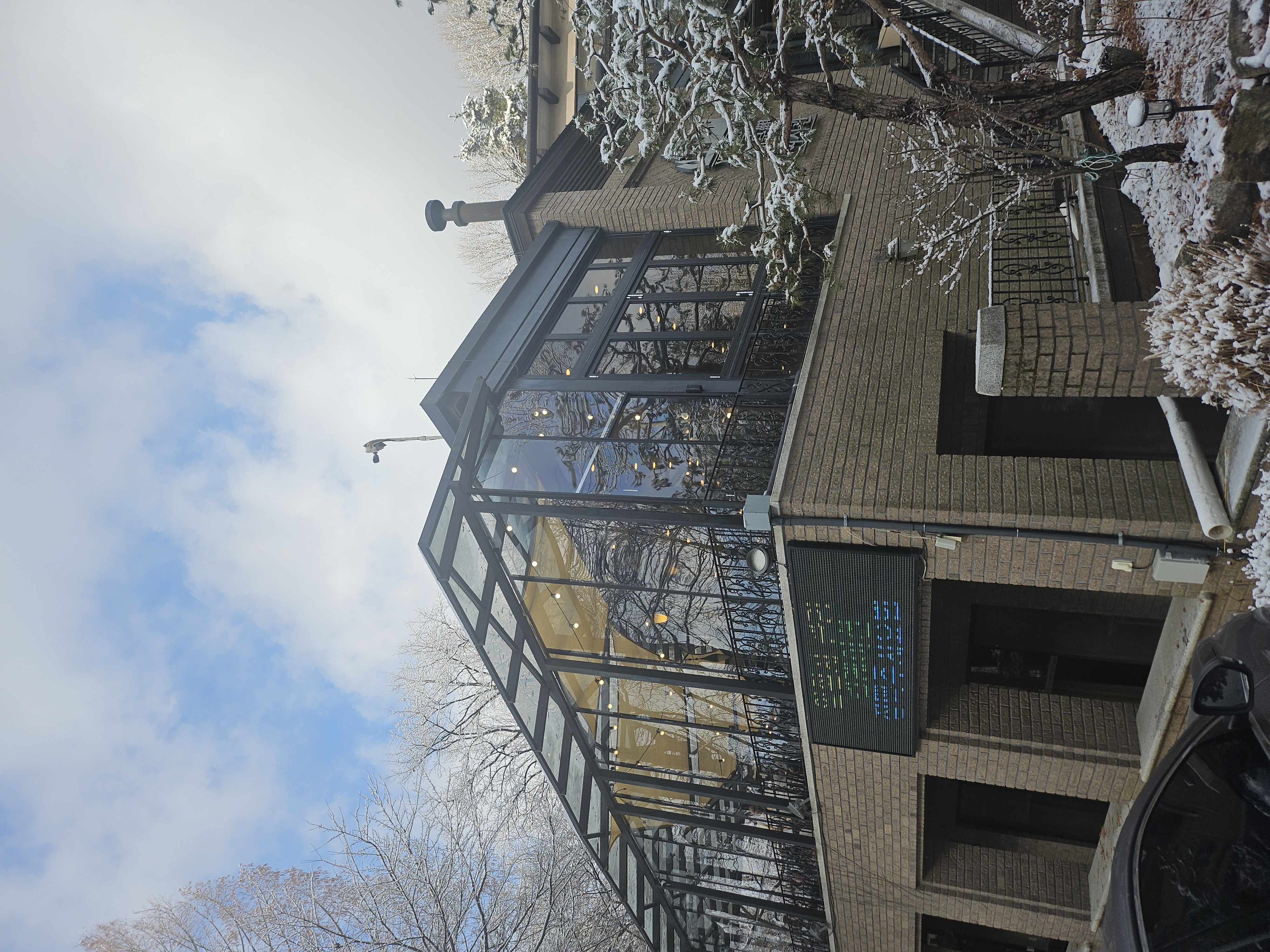 용인시 마북면의 숲 속 산장 같은 카페 "카페 플로우" 소개합니다. 눈이 예쁘게 쌓인 날 방문해서인지 동화 속 산장으로 잠시 여행하는 기분이었어요. 방문객들에게 편안함과 여유를 선사하는 **‘카페플로우(Cafe Flow)’**는 일상의 모든 순간이 부드럽게 흐르는 곳, 바쁜 일상 속에서 잠시 멈춤이 필요한 순간에 찾아가고픈 장소입니다. ‘플로우’라는 이름처럼, 당신의 시간이 가장 편안하고 자연스럽게 흐를 수 있는 분위기입니다. 정성스럽게 내린 스페셜티 커피의 깊은 향과 매일 아침 구워내는 달콤한 디저트가 있는 공간. 혼자만의 사색도, 소중한 사람과의 대화도 기분 좋은 흐름이 되는듯합니다. 엄선된 원두를 사용하여 본연의 풍미를 살린 깔끔한 뒷맛의 커피를 제공하고, 건강하고 좋은 재료로 매일 직접 만드는 수제 디저트가 가득했어요. 진짜 나무를 태우는 난로가 있어, 앉아있는 손님들의 뺨이 붉게 달아오르는 모습이 어릴 적 추억과 오버랩되는 신기한 체험을 하였답니다. 카페플로우는 법화산 자락 좁은 산길을 따라 올라가다 보면 나타나는 붉은 벽돌 건물입니다. 주변이 온통 숲으로 둘러싸여 있어 사계절의 변화를 고스란히 느낄 수 있습니다. 내부는 수많은 책으로 꾸며진 북카페 스타일로, 아늑하고 차분한 분위기입니다. 층고가 높고 창이 커서 창밖으로 보이는 숲 뷰가 일품입니다. 야외 테라스와 산책로가 있으며 건물 앞에는 작은 연못이 있고, 주변에 가벼운 산책로가 조성되어 있어 식후나 커피 한 잔 후 걷기에 매우 좋습니다. 위치: 경기 용인시 기흥구 마북로247번길 28 (마북동 10-1)