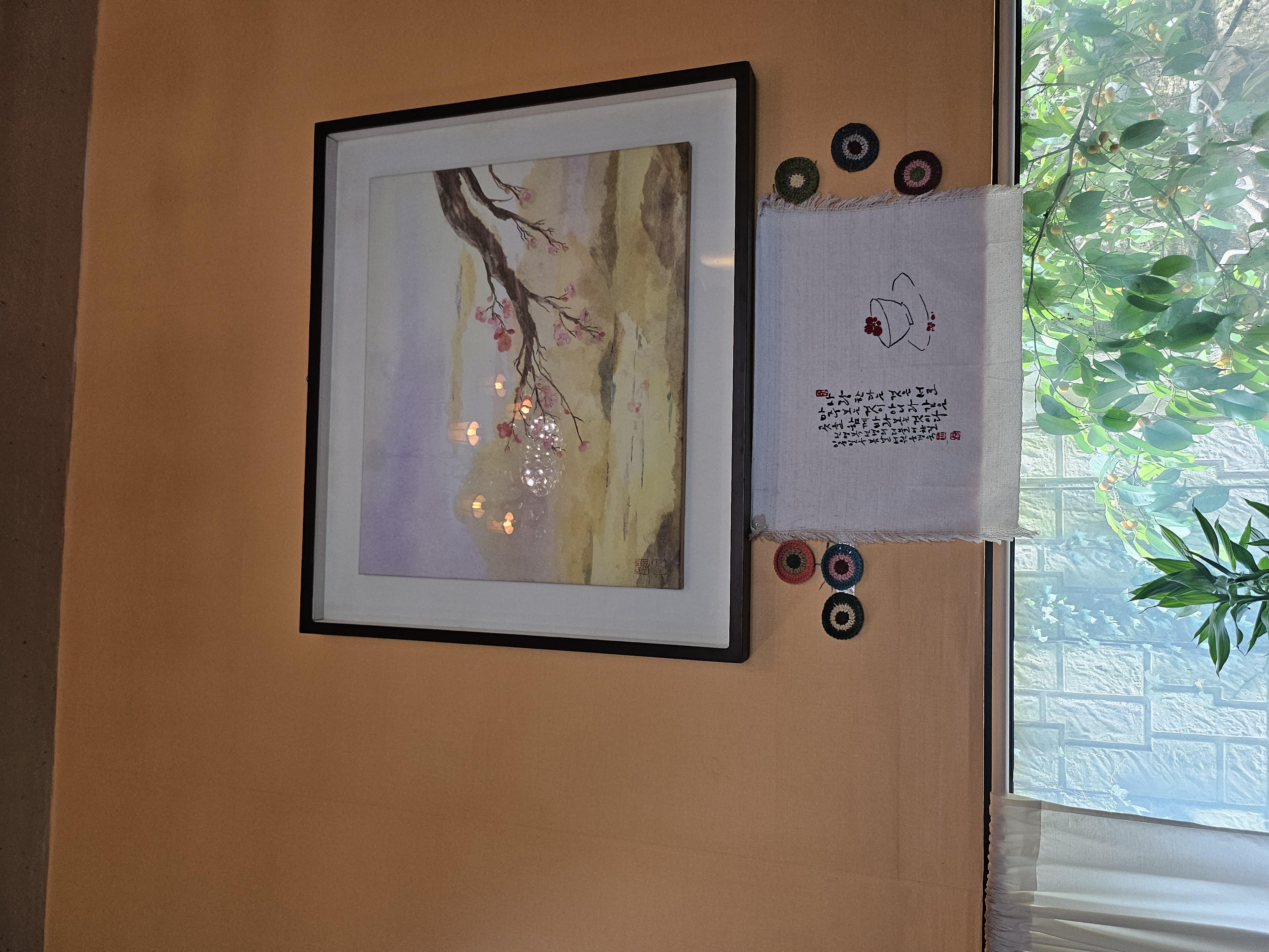 한터계곡을 지나 곤지암 가는 길에는 한터초등학교가 있어요. 이 길을 따라 맛집들이 많이 있답니다. 오늘은 계곡 끝으로 올라가니 아늑한 한방찻집이 있어 소개합니다. 꽃그대한방카페입니다. 12시에 오픈하시고 주인장께서 직접 만드신 각종 한방차가 손님들을 기다리고 있어요. 저만 몰랐던 카페인가 봐요. 깊은 산속인데도 손님들이 많이 찾으십니다. 주인님의 글씨 솜씨도 구경할 수 있고, 정원이 아름다워 여성 고객님들이 많이 좋아하실듯합니다.