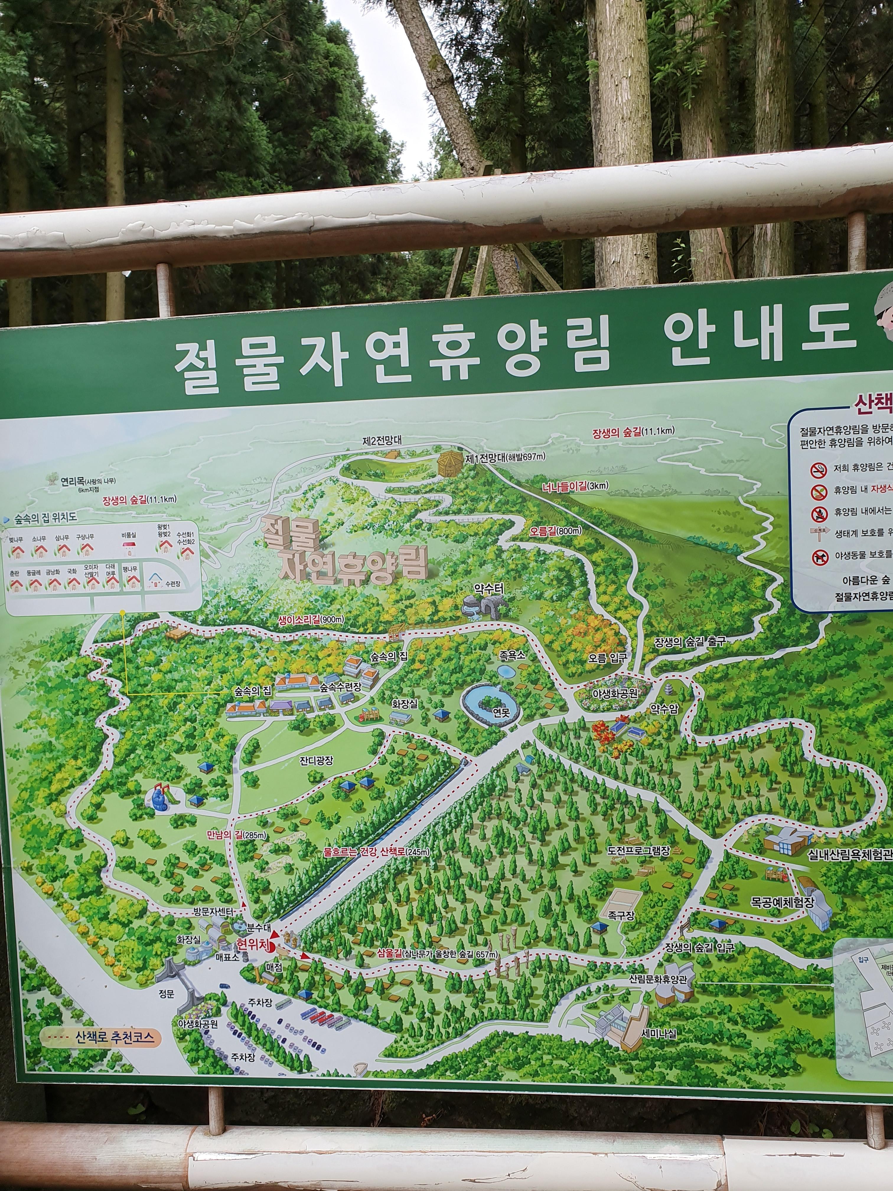 비 오는 날 걷기 좋은 절물자연휴양림... 비가 와도 걱정 없어요. 포장된 길과 나무데크가 잘 되어 있어요.
