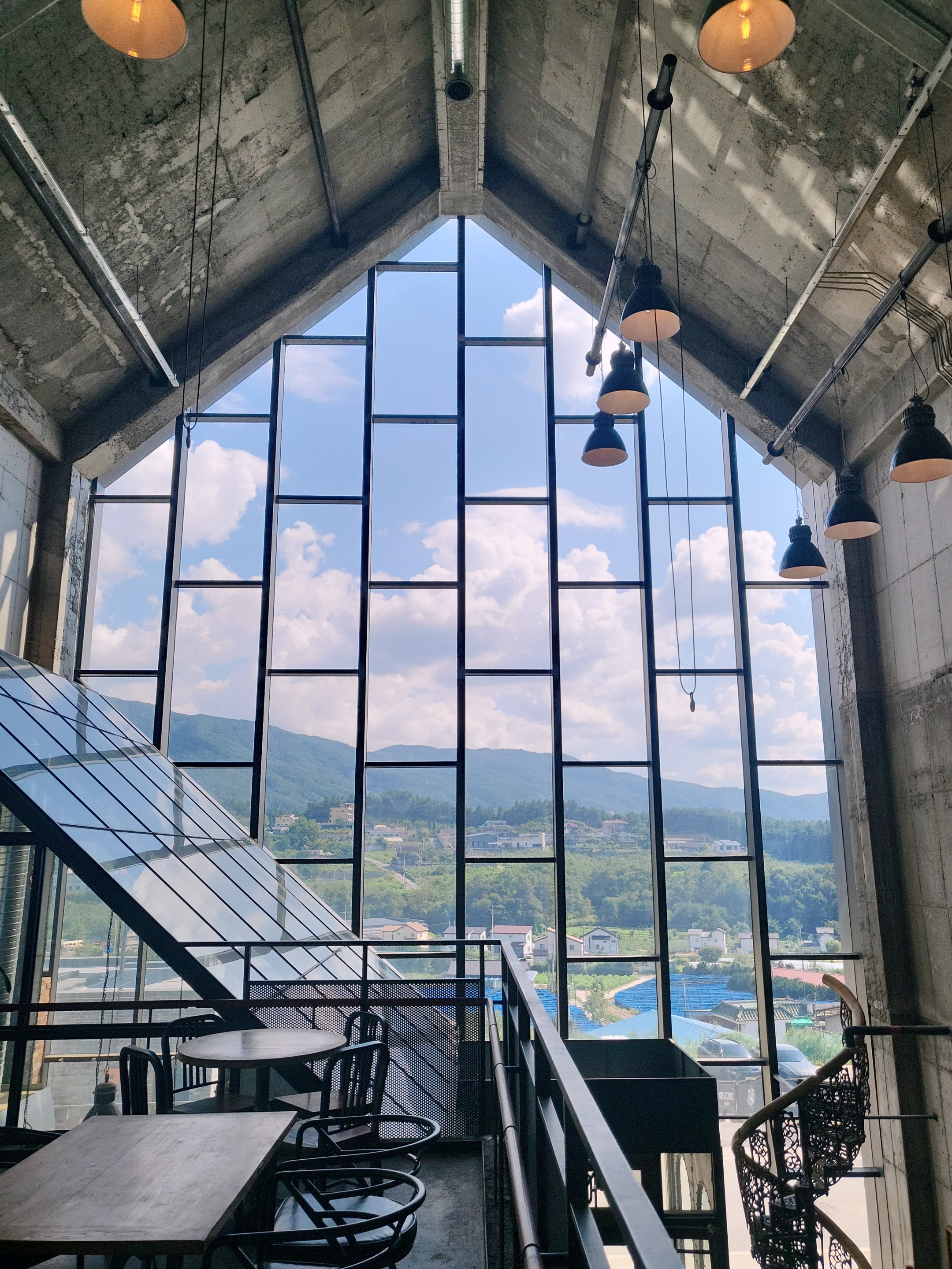 오늘은 춘천의 힙한 카페를 소개합니다. 춘천시 동내면에 있구요. 카페거리로 유명한 구봉산 카페촌에서 차로 약 10분거리에 있는 조용한 타운하우스마을에 있어요. 탁 트인 시야와 조용함이 근처로 이주하고 싶은 마음이 절로 생깁니다.
