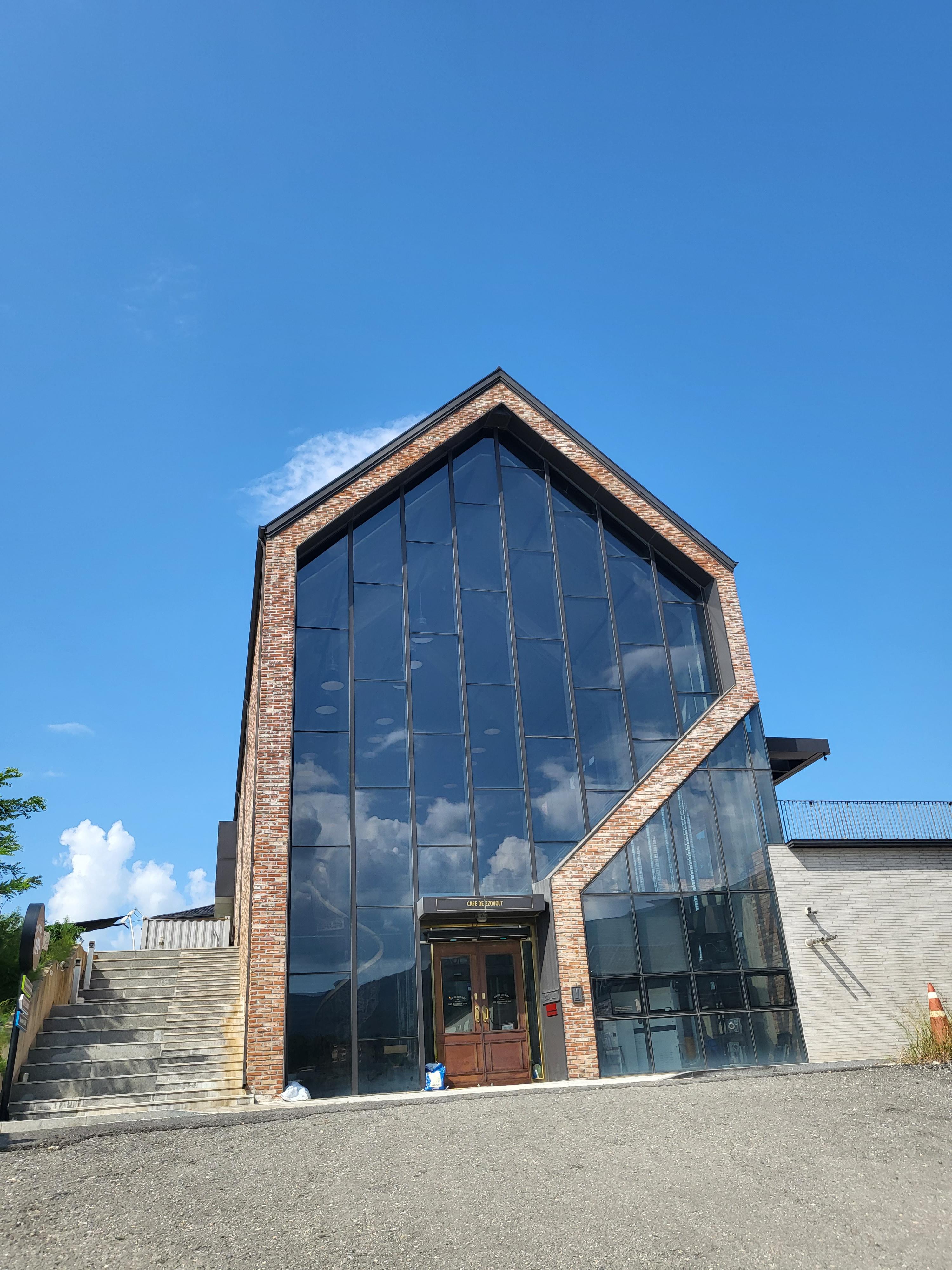 오늘은 춘천의 힙한 카페를 소개합니다. 춘천시 동내면에 있구요. 카페거리로 유명한 구봉산 카페촌에서 차로 약 10분거리에 있는 조용한 타운하우스마을에 있어요. 탁 트인 시야와 조용함이 근처로 이주하고 싶은 마음이 절로 생깁니다.