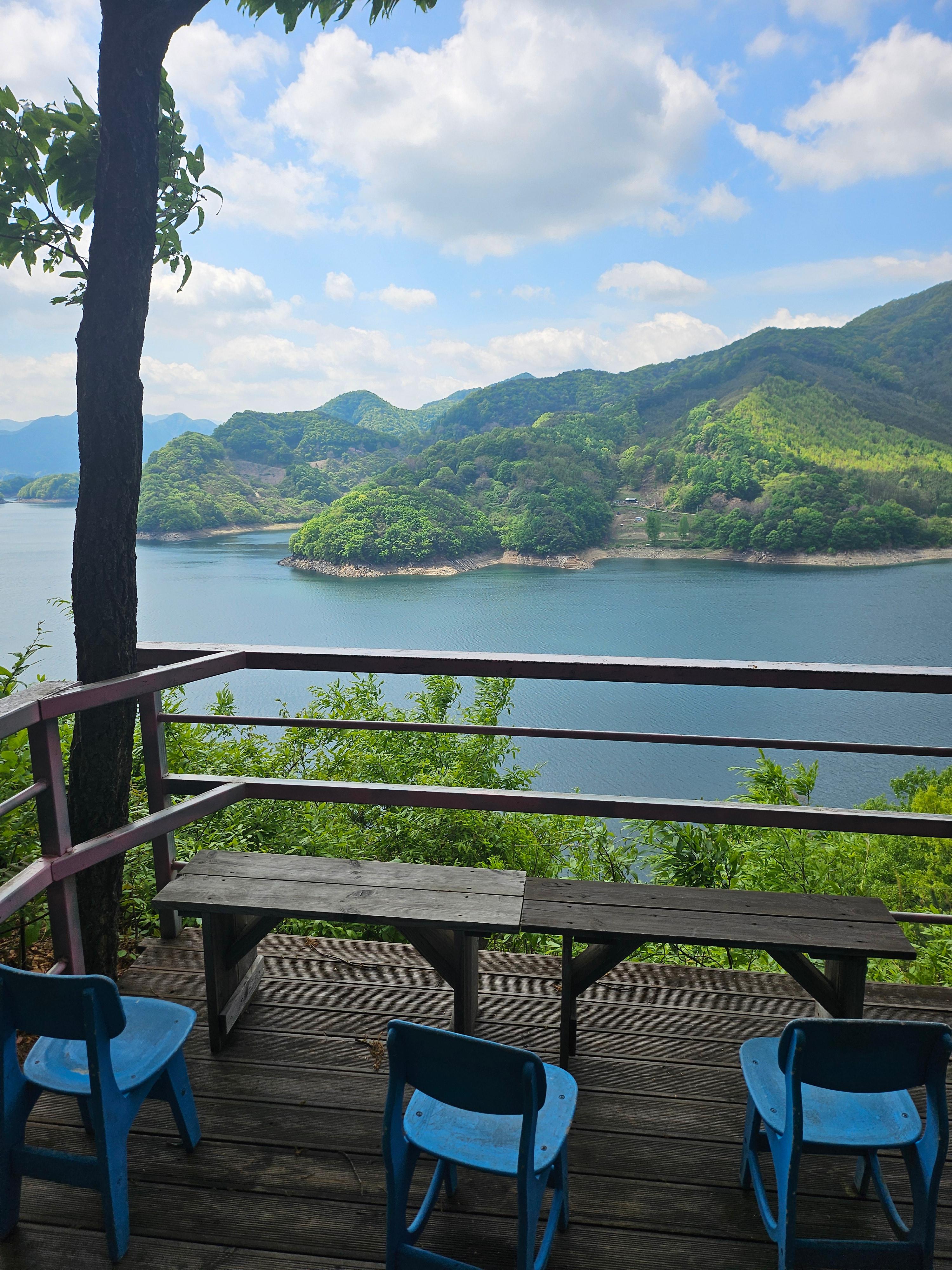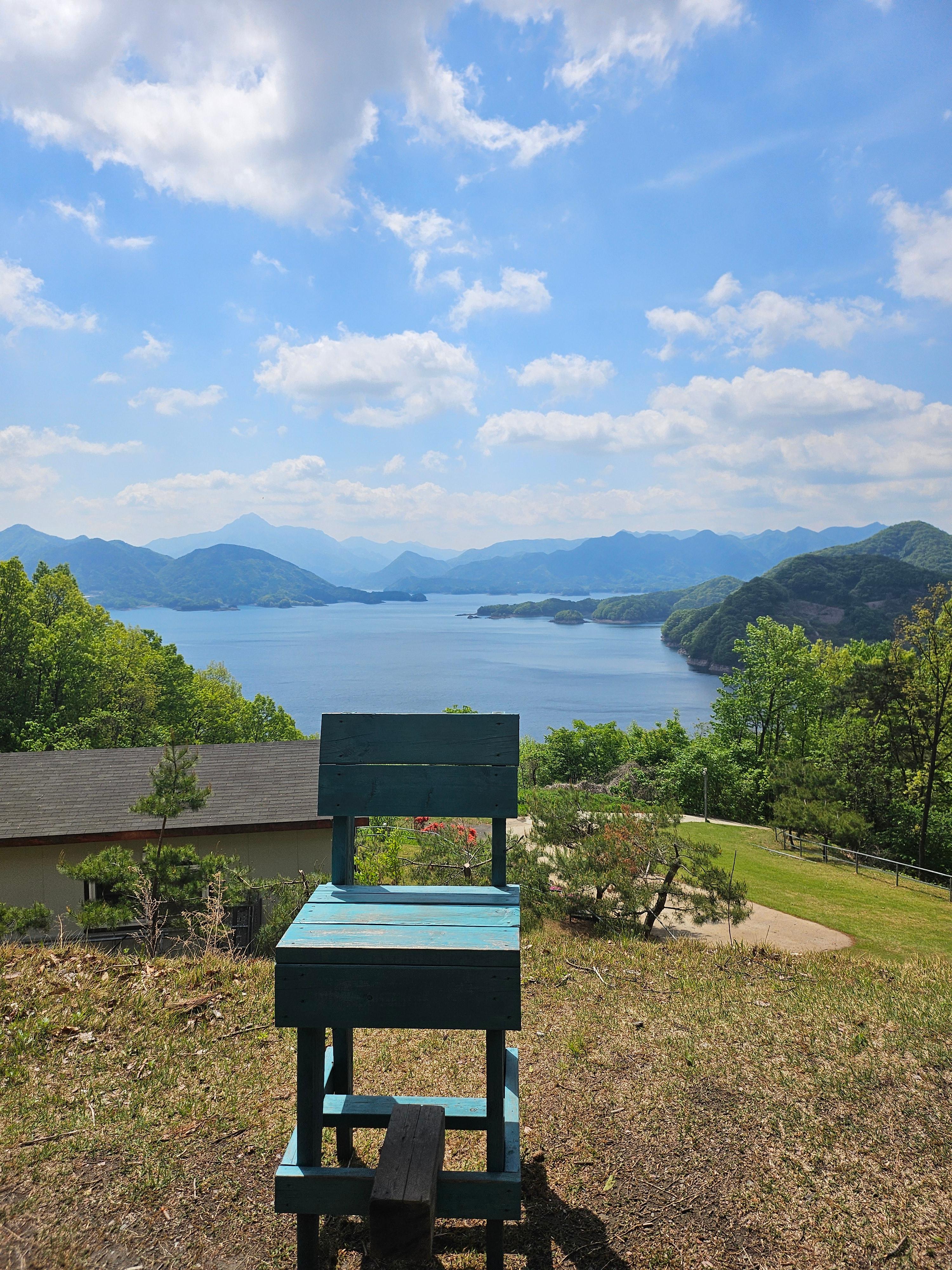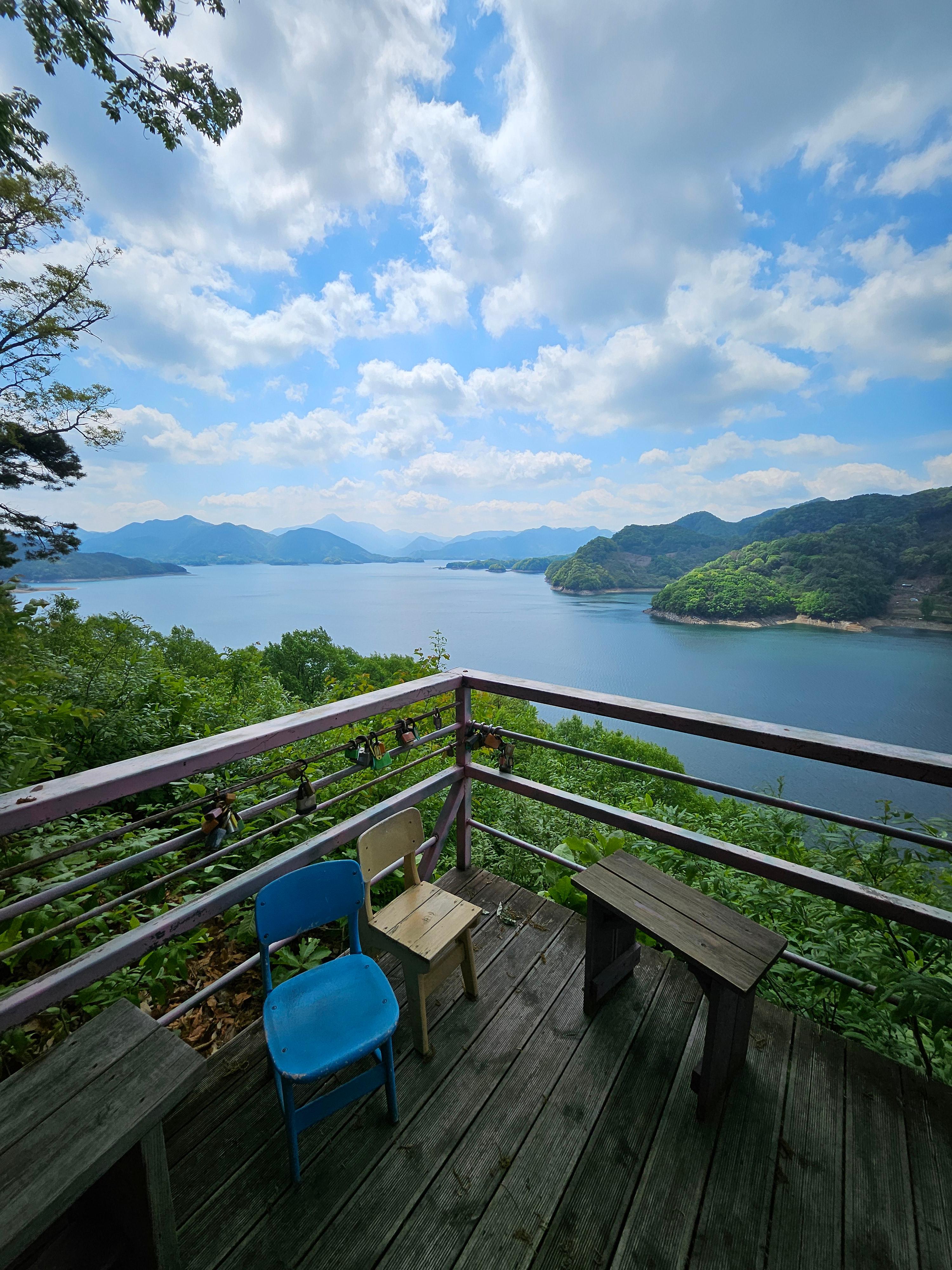 제2전망대의 포토존, 푸른색의 나무의자에서 예쁜 사진 많이 찍었어요.