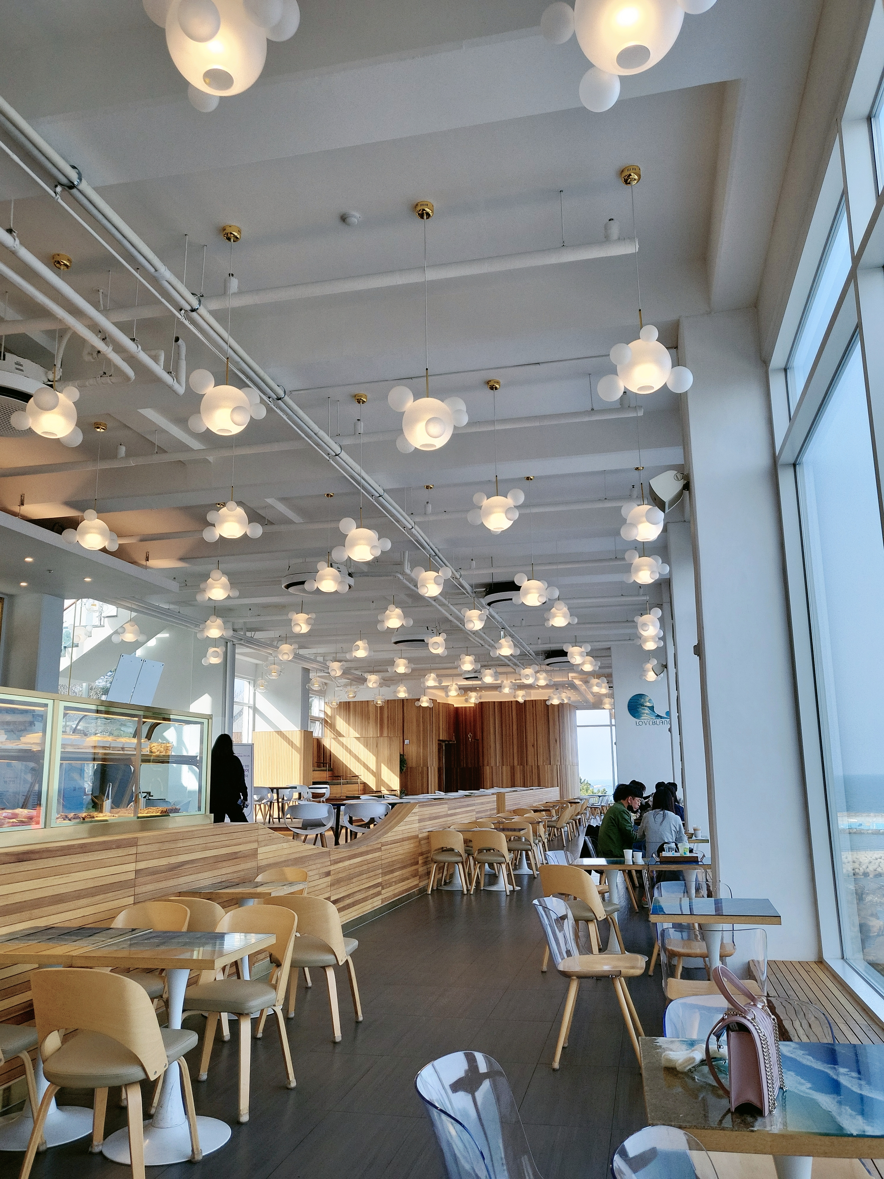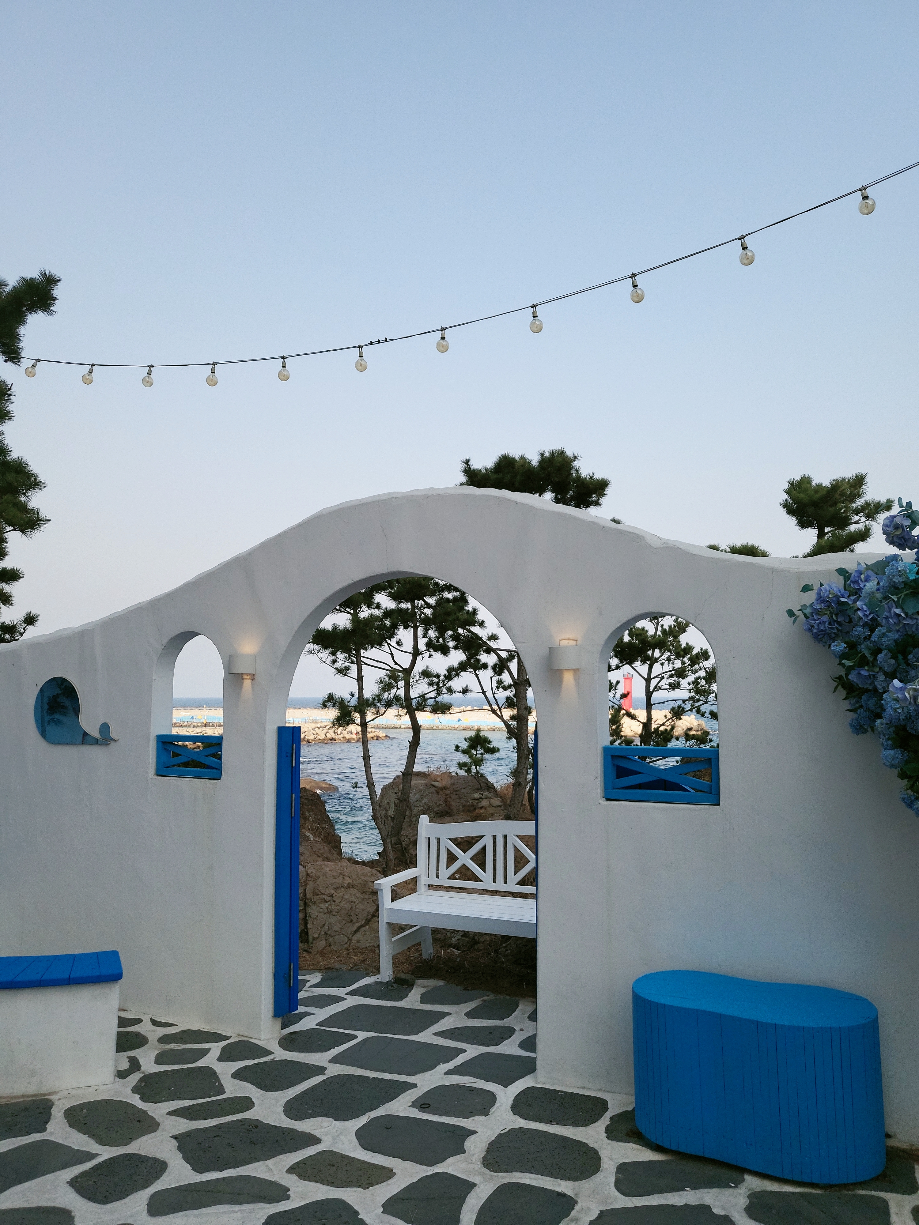 포항의 바닷가에 있는 카페 러블랑을 소개합니다. 동해의 푸른 바다를 한눈에 볼 수 있고요, 베이커리도 독특하고 먹기에 아까울 정도로 아름다워요. 푸른 고래가 대표마크인지 컵에는 푸른 고래가 춤을 추고 있어요. 야외는 미니 산토리니 느낌을 살린 구조물이 많아서 셀카 찍기에 정말 좋네요. 일출명소인 화진해수욕장에 가까이 있답니다. 유명한 7번 국도에 있어요. 행정구역 상으로는 포항시 북구 송라면에 위치하고 있어요. 포항 가실 일이 있거나 7번 국도 드라이브 가실 때 꼭 들려주세요~