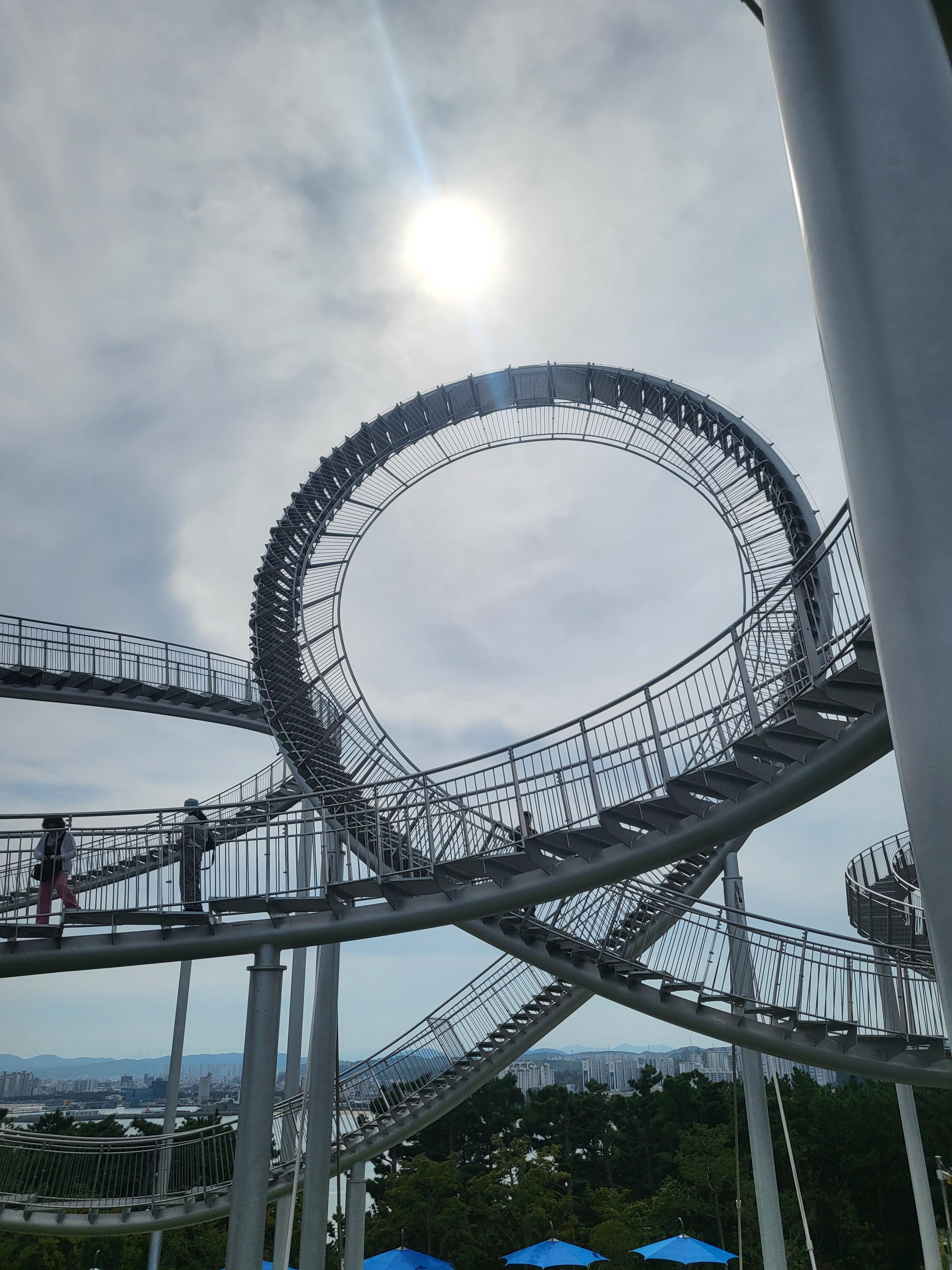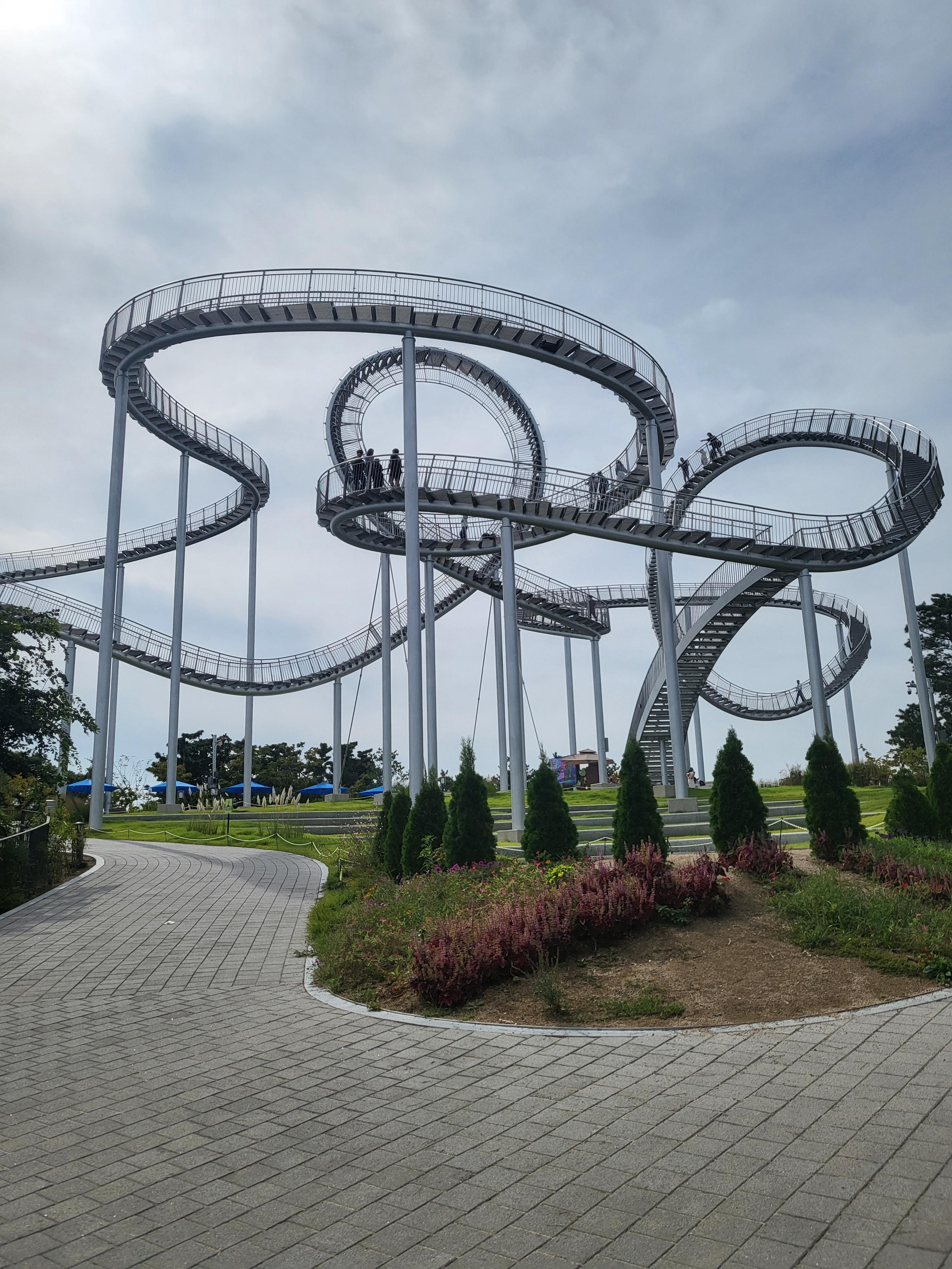 포항에 볼거리가 많다더니...진짜 달라졌네요. 호미곶만 있는 줄 알았던 곳! 가장 인상적인 스카이워크소개합니다. 영일만과 포항제철이 보이는 언덕에 철로 만든 계단입니다. 무료입장이구요. 시원하고 꼭대기로 올라갈수록 전망이 좋아요