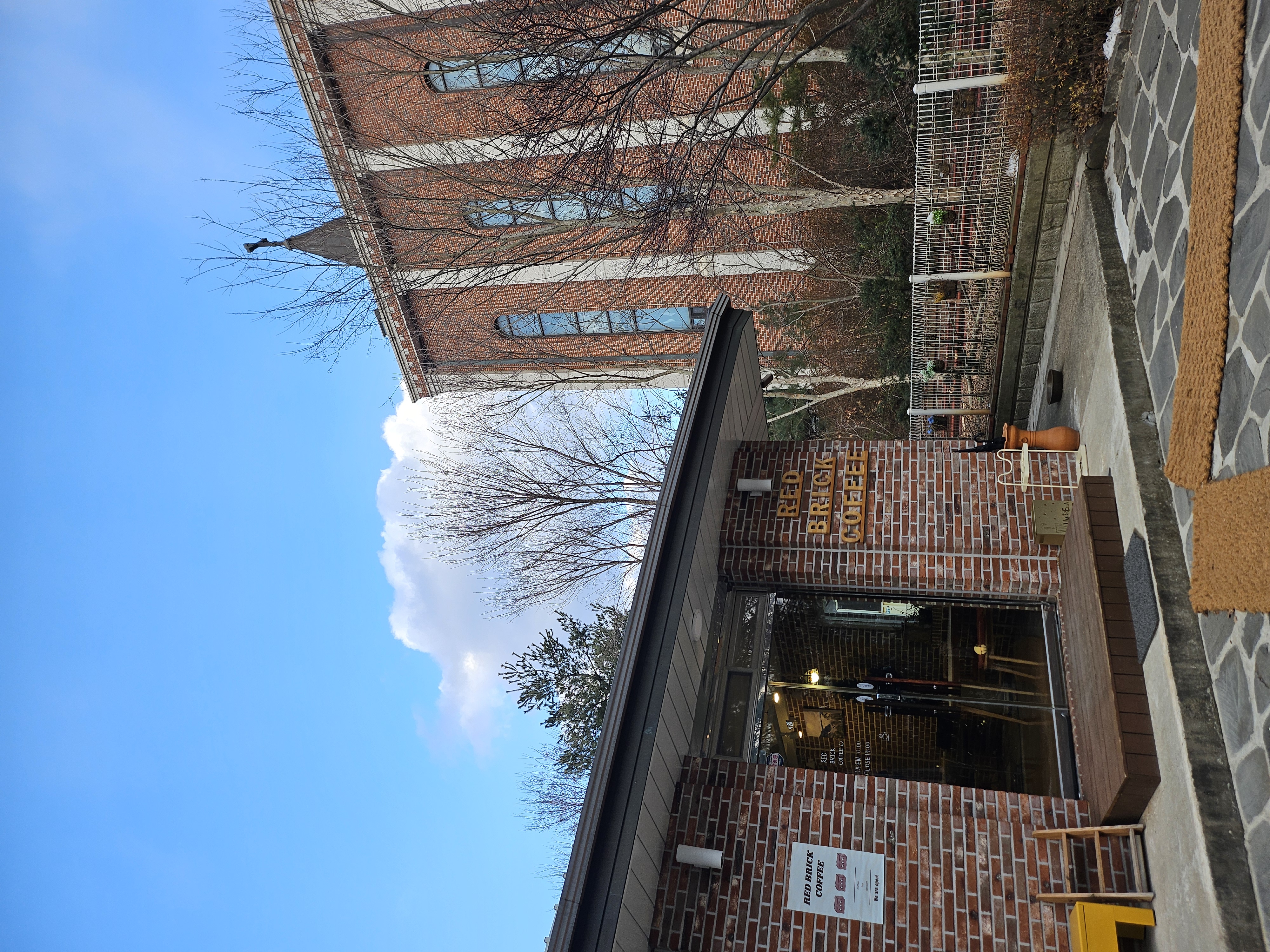 식후에는 바로 옆 레드브릭스커피에 갔어요. 타운하우스 동네에서 외국스타일 예쁜 집들이 많아요. 이곳도 아름다운 정원을 자랑하네요. 바닐라라떼 감별사 우리 어머니...너무 맛있다고 하시네요.