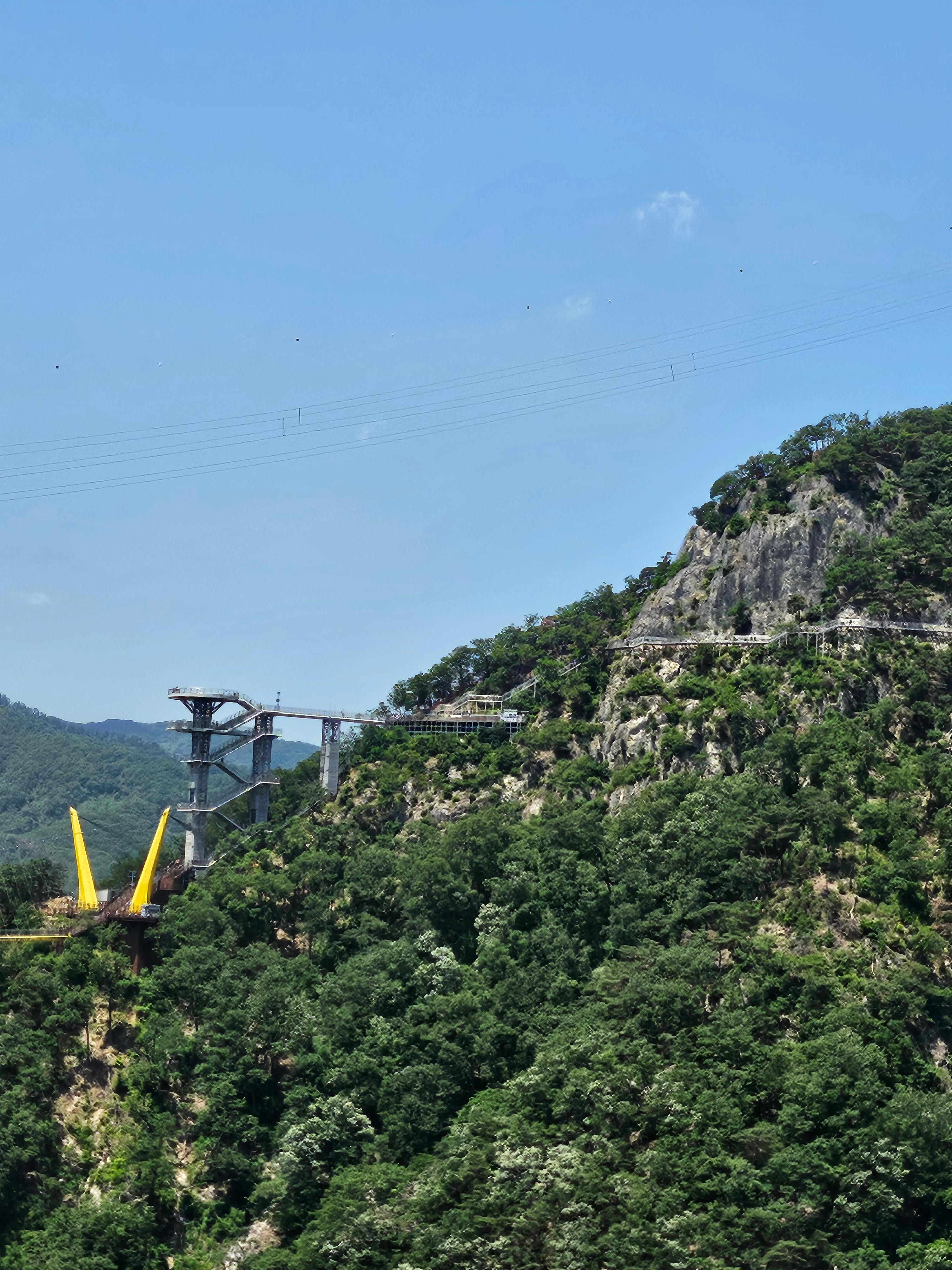 소금산 바로 앞에 케이블카 승장장이 설치되어서 내리면 바로 출렁다리까지 갈 수 있어요. 데크길이 있어서 휠체어도 갈 수 있어요.