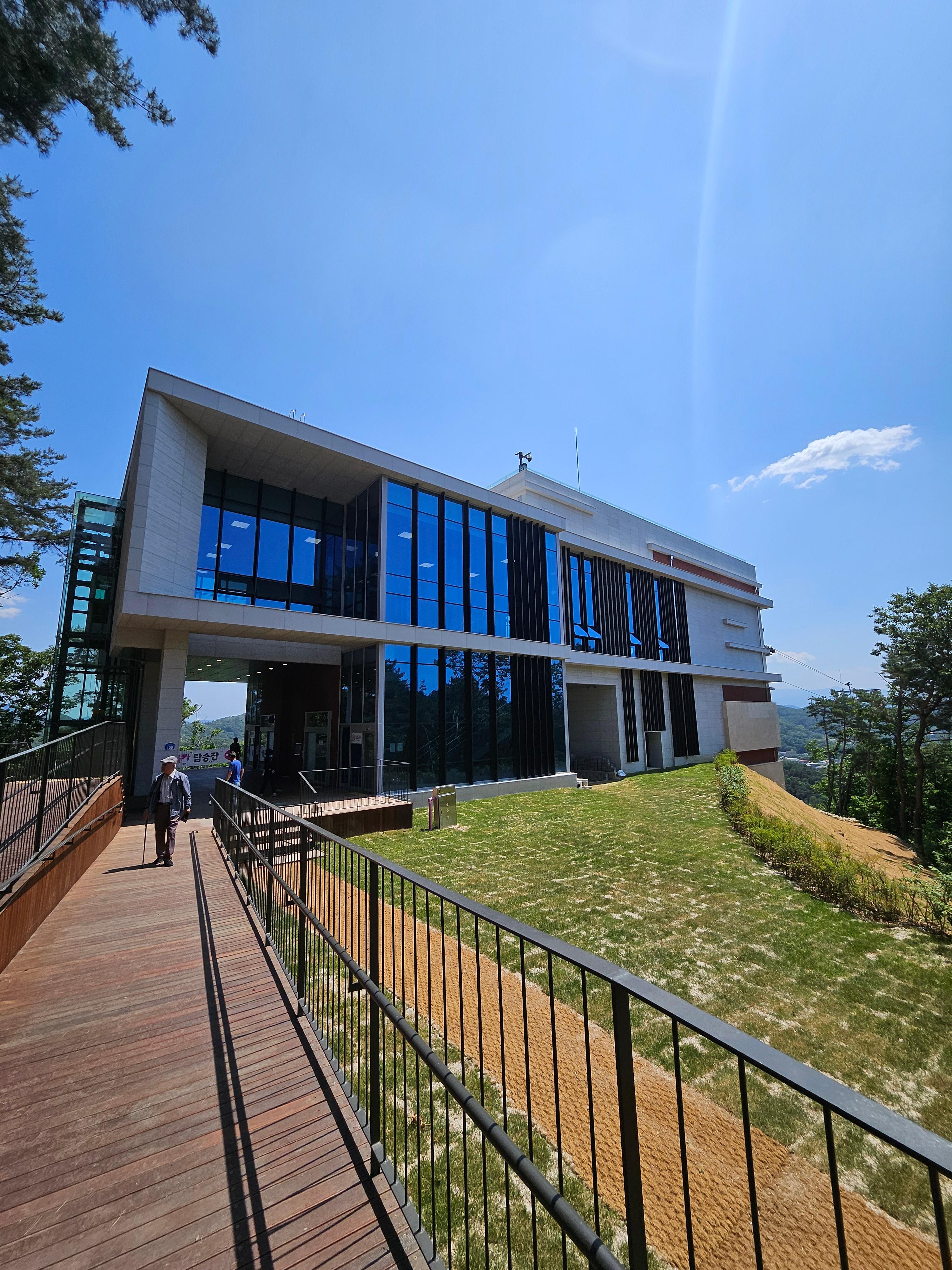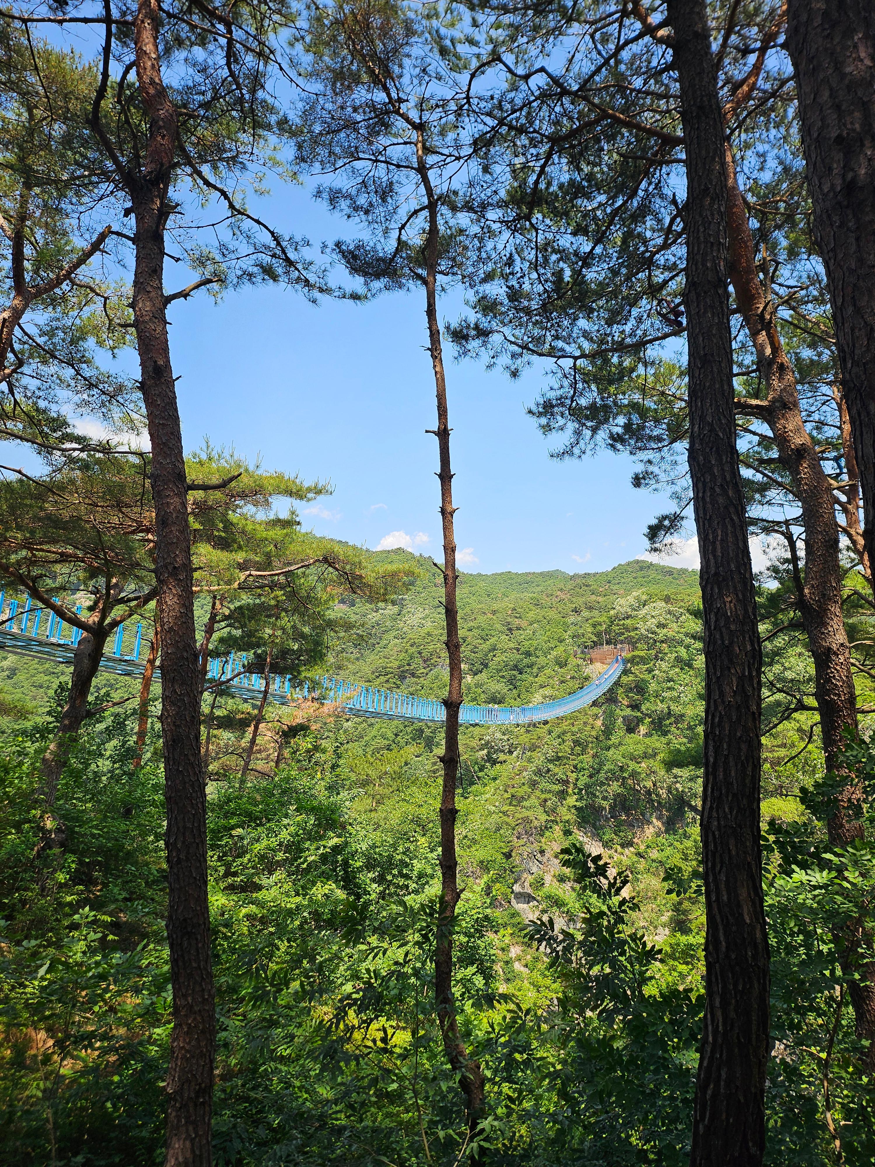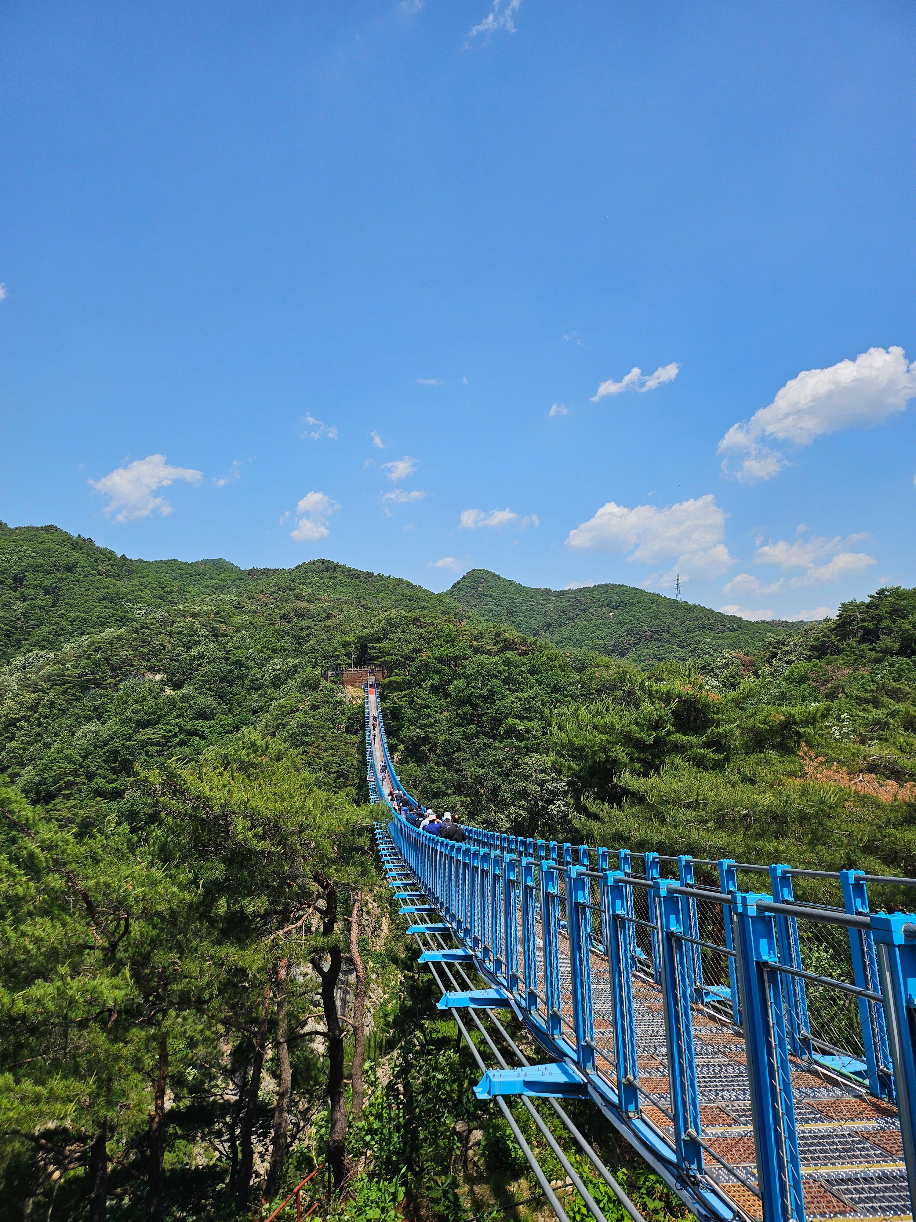 소금산 바로 앞에 케이블카 승장장이 설치되어서 내리면 바로 출렁다리까지 갈 수 있어요. 데크길이 있어서 휠체어도 갈 수 있어요.