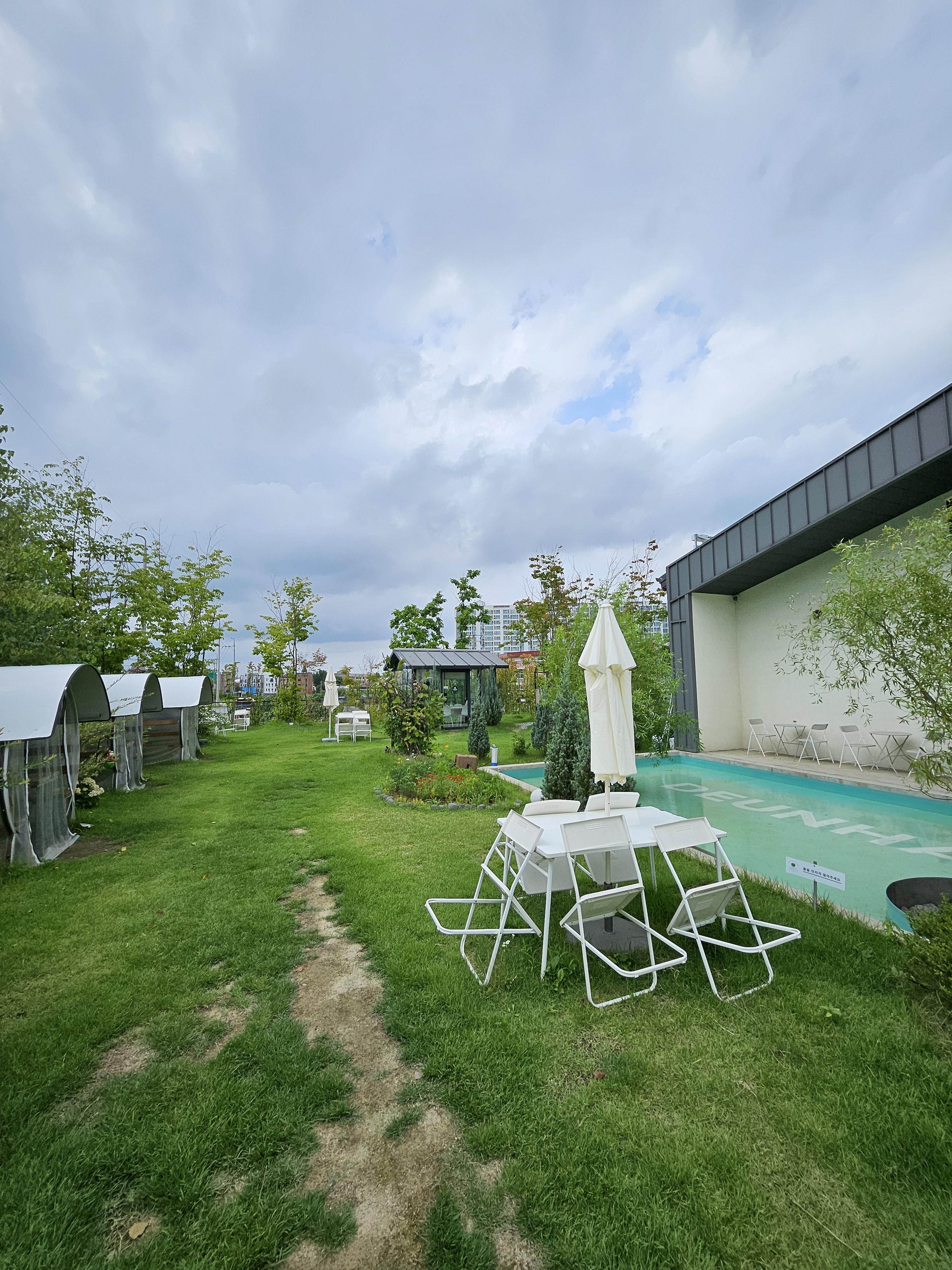아산과 평택의 경계에 있는 카페 소개할게요. 이름 특이하죠. 카페든해입니다. 아산시 둔포에 있고 밭사이에 있어요. 미니 수영장이 있어서, 수영할 순 없지만 사진 예쁘게 나와요~