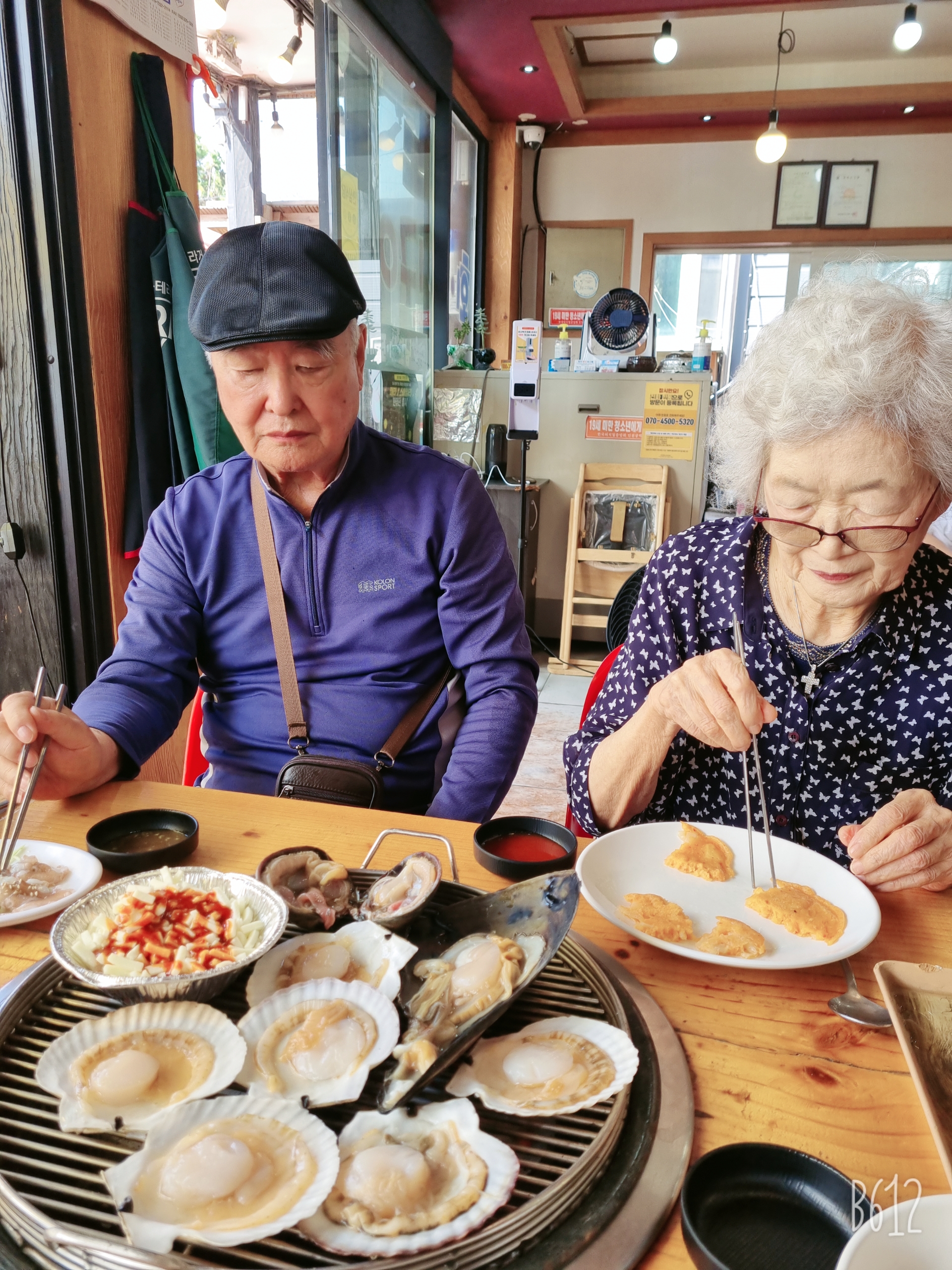 당일치기로 효도하고 싶을 때, 용유도를 추천드립니다. 영종도와 연결되어 있는 용유도는 을왕리가 가장 유명합니다. 을왕리해수욕장을 치고 드라이브를 가면 조개구이집들이 즐비하게 있어요. 조개구이와 카페가 교대로 있다고 보시면 됩니다. 조개구이집앞에는 주차장이 있어서 주차가 편하고, 식사 후에는 솔밭에서 쉬셔도 되구요, 바닷가를 걸으셔도 좋습니다. 조개구이집에서 해물칼국수를 드시면 조금 저렴하게 바닷가의 맛을 느낄 수 있구요, 조개구이를 드시면 가격은 좀 비싸지만 맛있고 고소해요. 식사 후에는 인근의 왕산해수욕장으로 이동했어요. 카페가 많지만 그 중 투썸플레이스로 이동했어요. 큰 길에 있고 주차장도 넉넉해서 좋습니다. 바로 바닷가 앞에 있지는 않지만 여유있는 넉넉함이 좋습니다. 서해라 낙조가 좋으니 저녁 때에 가셔도 좋아요~