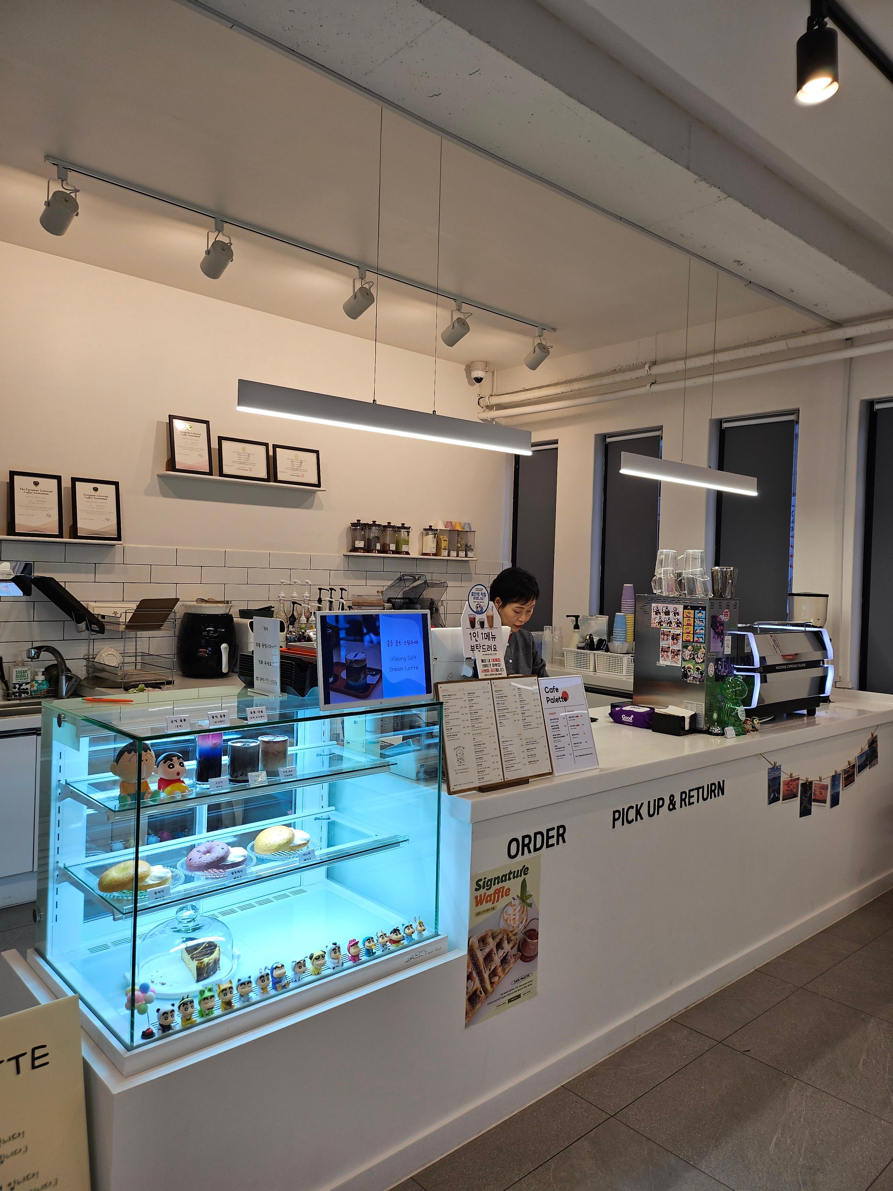카페주인님이 미술을 전공하시는 분 같아요. 미술교육도 하시는 것 같고요. 인테리어도 세련되고 넓고 편안해요. 바다가 보이는 오션뷰이기도 합니다. 기안 84님과 지예은 님의 친필싸인도 있었고요. 빔으로 계속 나오는 영상이 기안장 영상이더군요. 촬영지가 울릉도라고 알려져 있는데... 중심가에서 멀리 떨어진 현포리에서 촬영한듯합니다. 시그니처음료도 울릉도의 푸른 바다를 연상시키는 아름다운 음료였어요. 맛도 달콤하고 부드럽네요. 새로운 카페를 찾아가는 기쁨이 가장 큰 저로서는 최고의 선물이 카페였답니다. 내돈내산... 광고 아닙니다~ 울릉도 2일 차의 기록은 다음편에 소개할게요.
