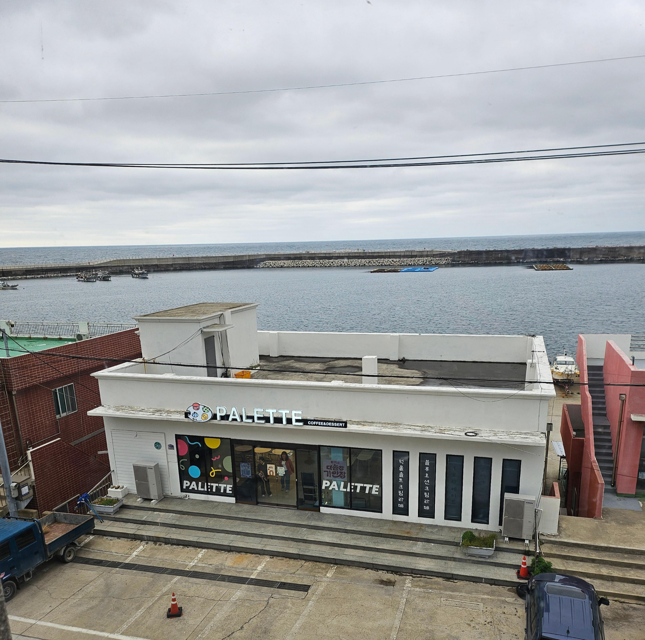 숙소에서 카페가 내려다 보여요.너무 예쁜 카페가 있어서 기쁘고 놀랐어요~