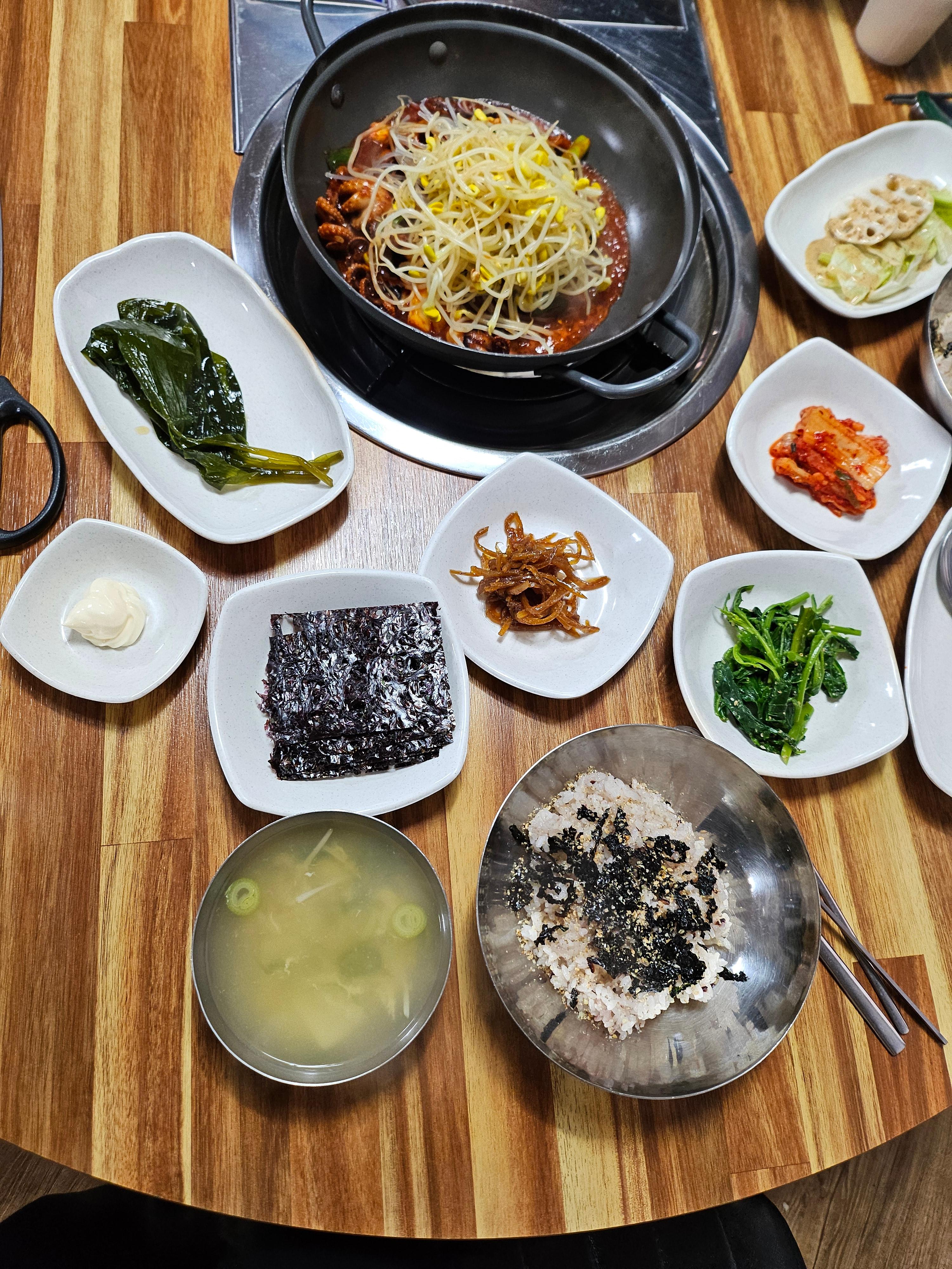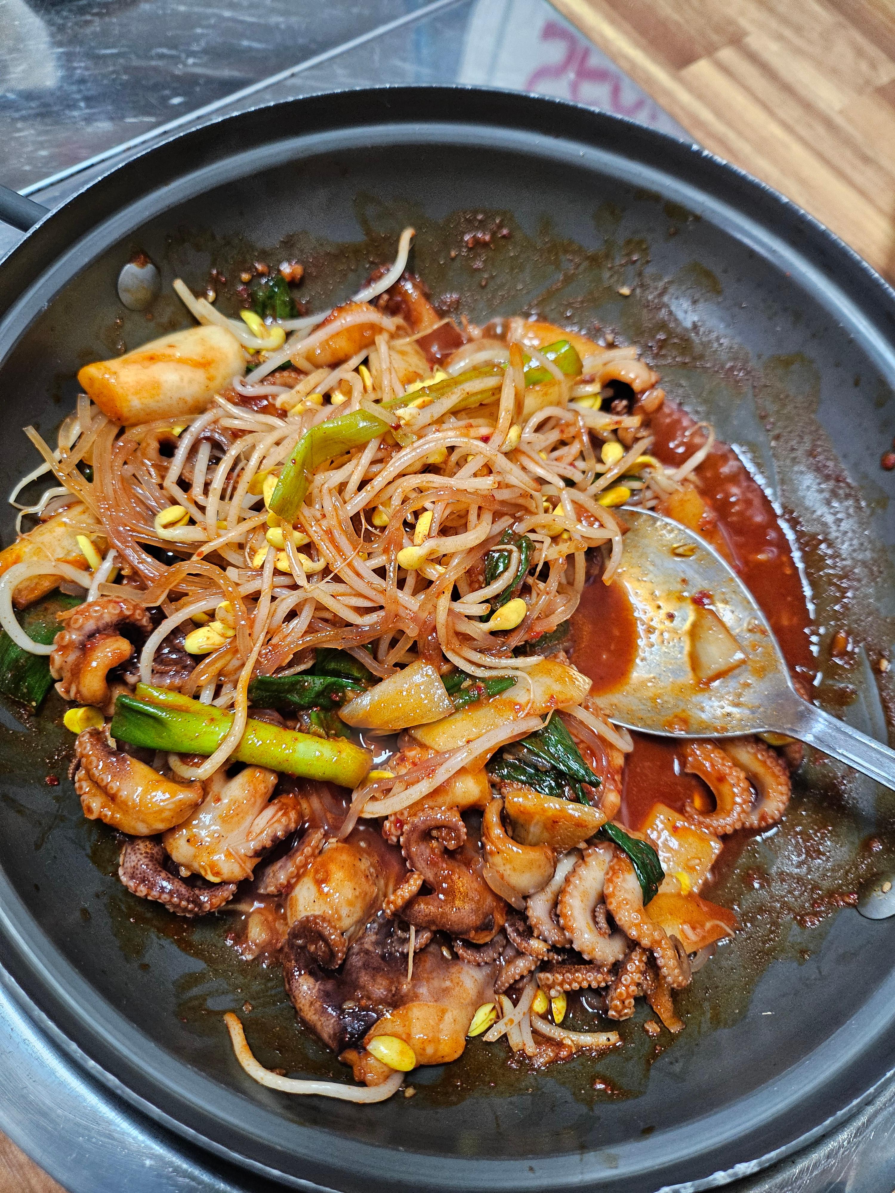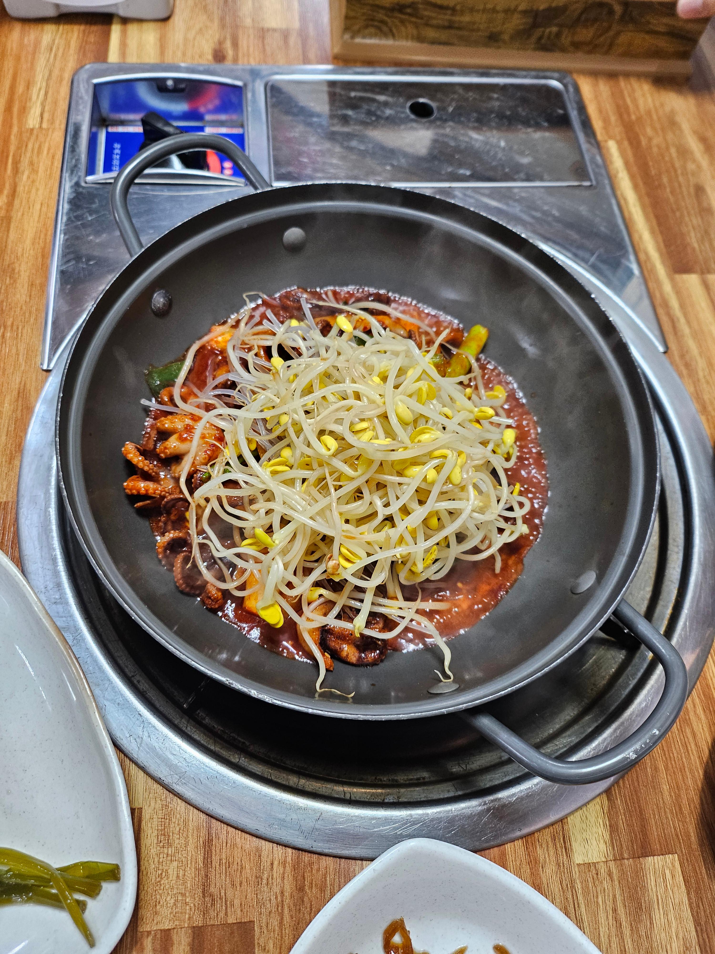 펜션 바로 옆 골목의 청솔식당에서 오징어불고기 먹었는데 맛있고 친절하셨어요.
