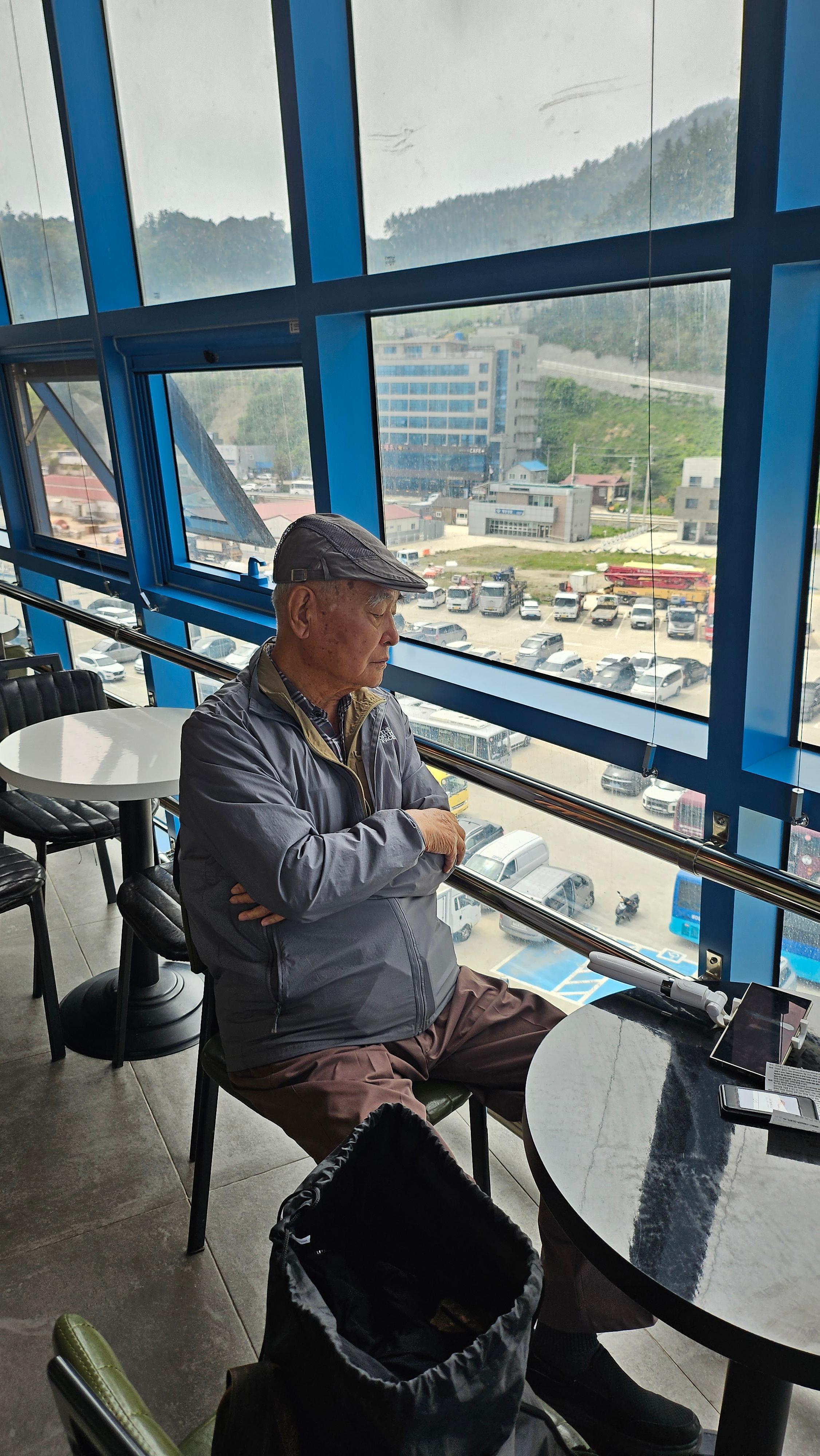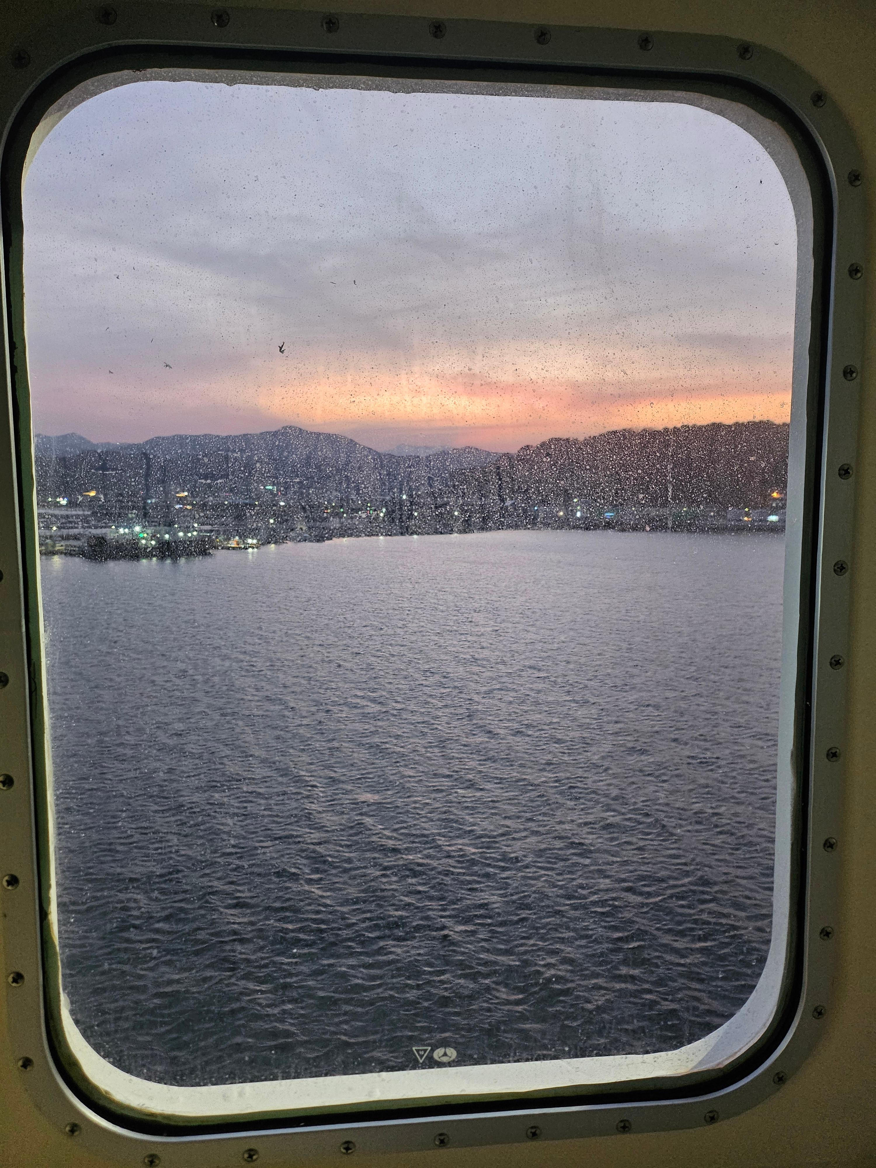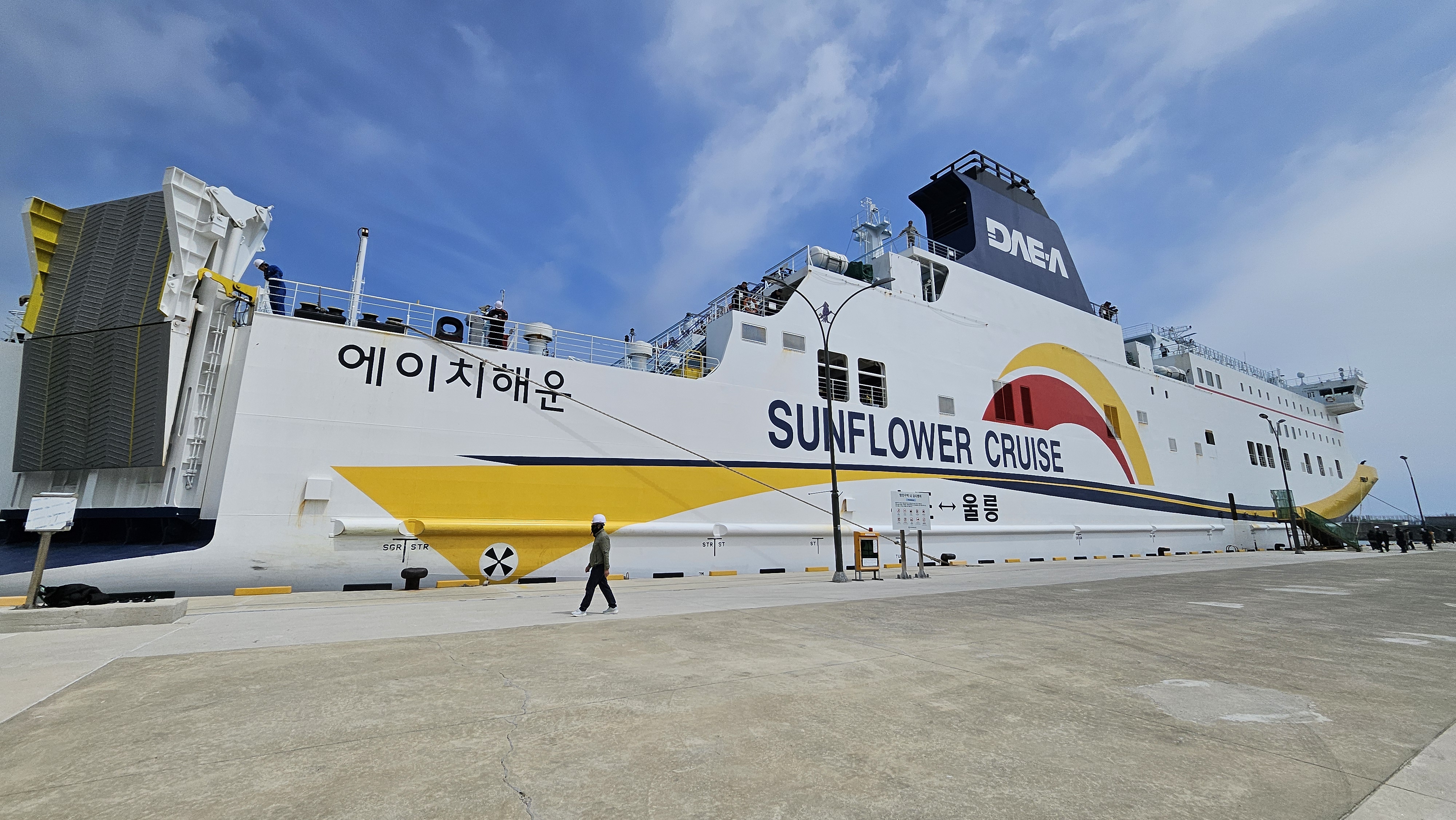 차를 싣고 가는 승객들은 일찍 도착해서 차를 지정된 구역에 세워야합니다. 차량등록증도 필요하고요. 대기시간이 길어요. 출발은 오후 3시인데 차를 예약한 사람들은 12시에 맡기고 기다렸어요. 4층 카페에서 기다립니다. 타고 갈 배와 내차의 선적과정이 잘 보여요.