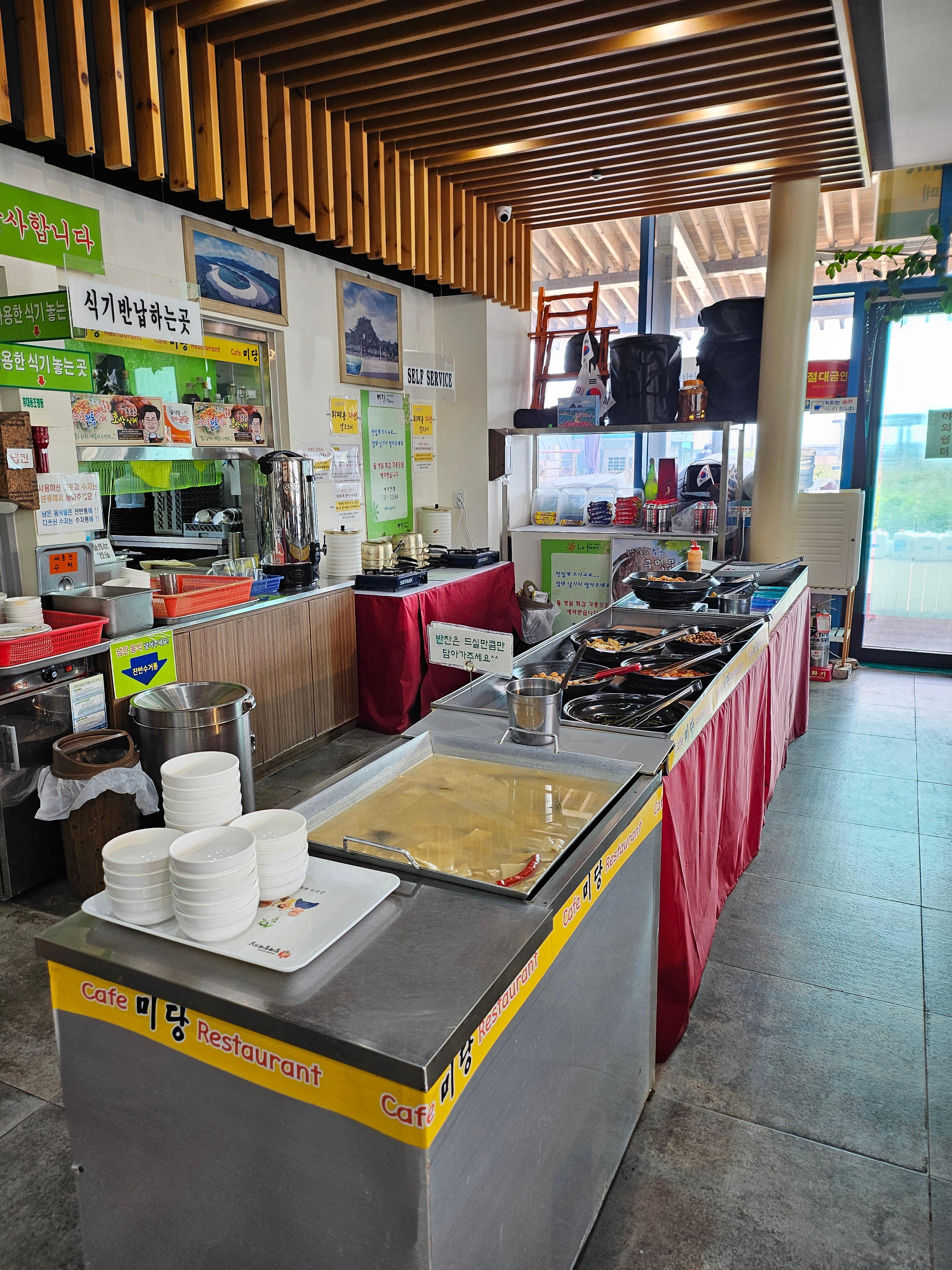 여객터미널 바로 옆 건물의 미당레스토랑입니다. 간단한 한식뷔페입니다. 맛있게 먹고 승선을 기다려요.