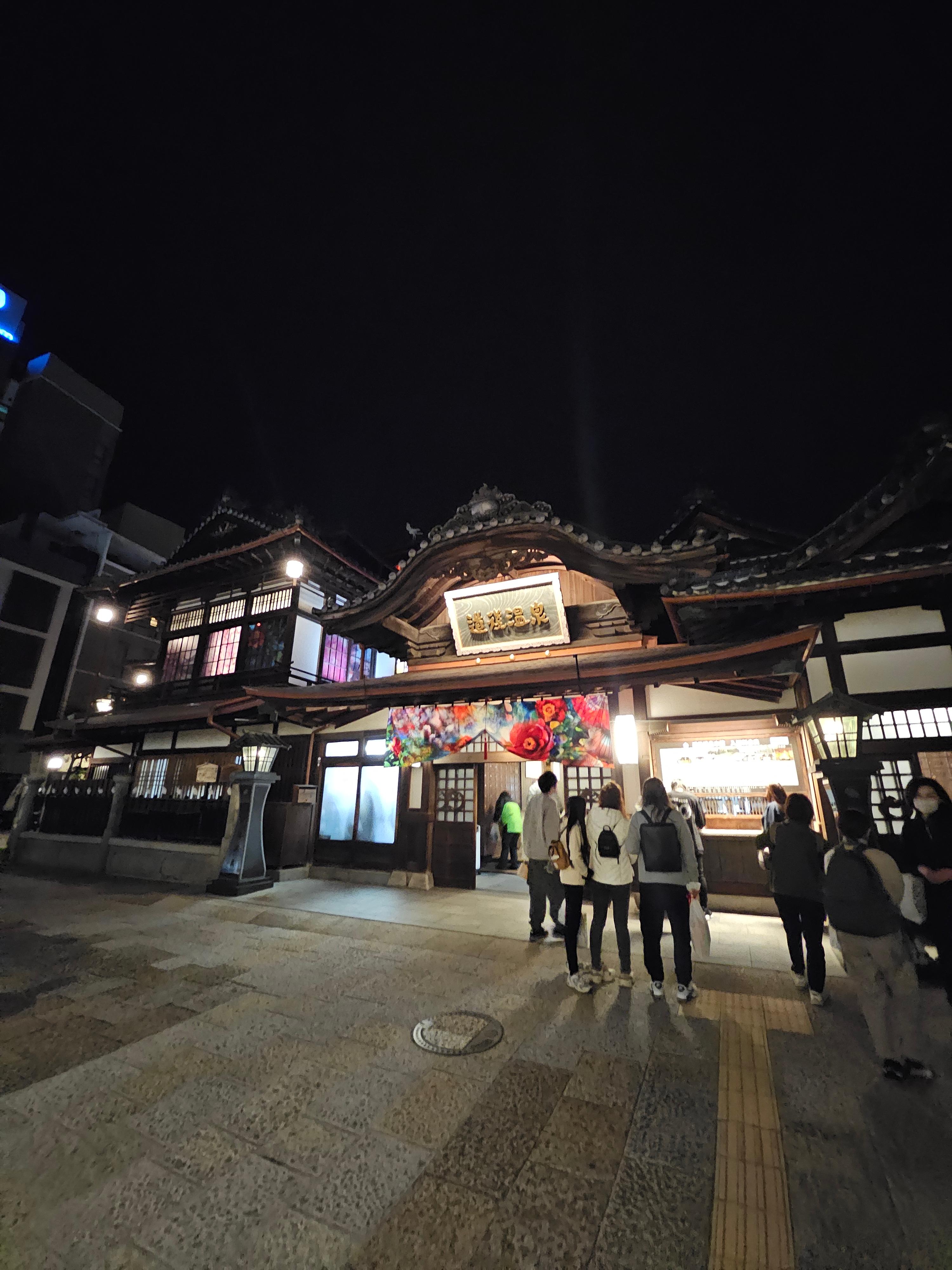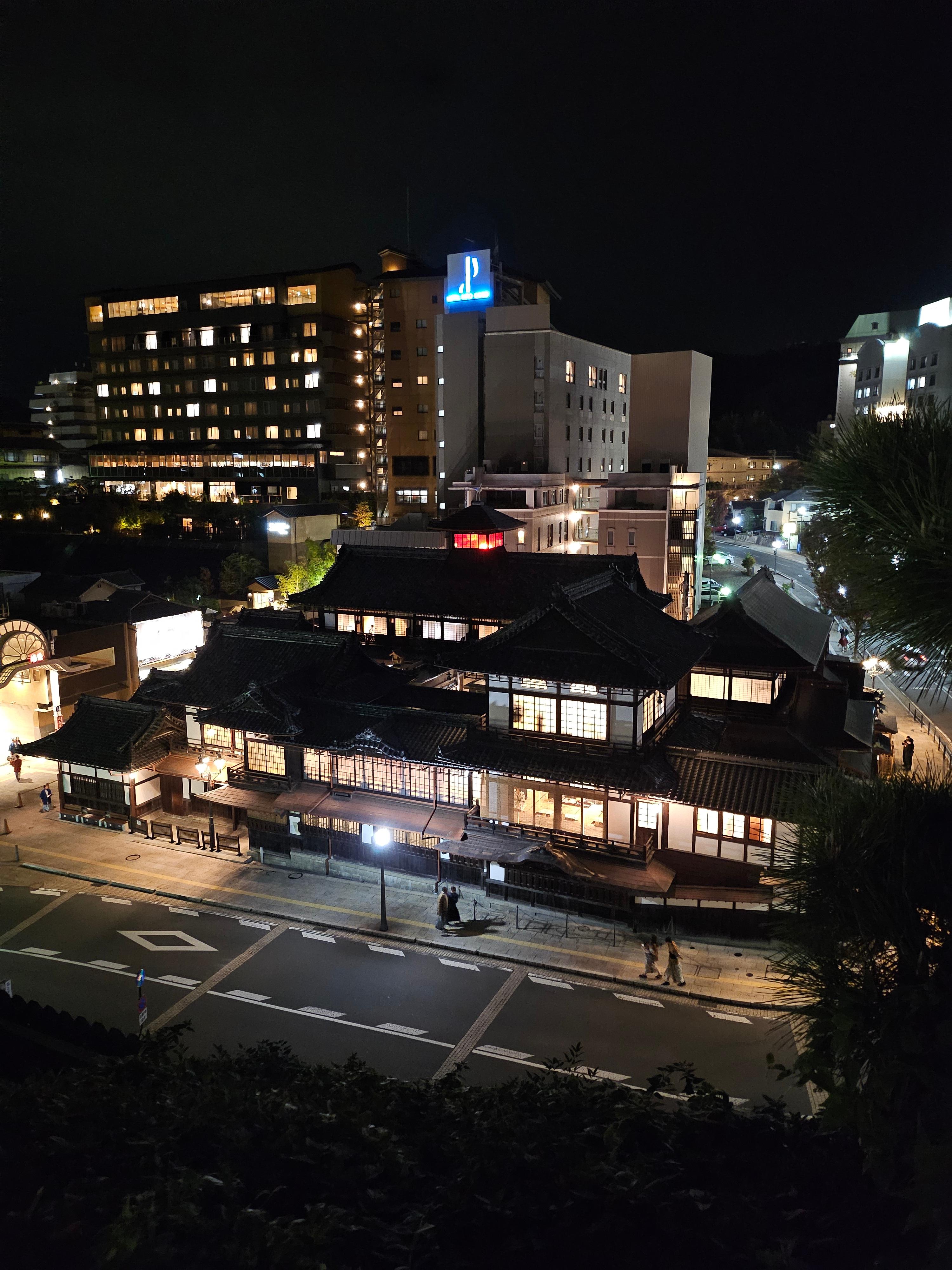 가이세키정식요리를 잘 먹고 객실로 올라왔어요. 탁자는 구석으로 잘 옮겨져 있고 요 세트 3세트가 잘 펼쳐져 있었어요. 우리나라의 우렁각시랄까? 조용히 나타나 정리해 주시는 호텔직원... 감사합니다. 아버지는 주무시고 저와 아들은 아버지의 미션을 수행하러 야행을 나왔답니다. 조용한 온천마을인 도고온천은 아름다운 야경으로 유명합니다. 도고온천의 측면에서 사진을 찍었어요. 구글지도에 도고온천산책로(족욕탕)로 검색하시면 되고요. 도고온천 본관에서 위로 올라가는 언덕이 바로 보여서 찾기에 어렵지 않아요. 저녁 8시 반인데 대부분의 가게가 닫아서 아쉬웠어요. 이자카야는 영업을 하는데, 저와 아들은 알코올 분해효소가 없는 유전인자를 지녀 아쉽게도 맥주는 마시지 못했답니다.